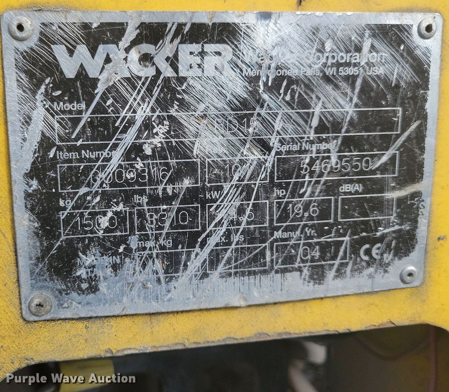 Purple Wave is selling a used Double Drum Roller Compactor in Iowa. This item is a 2004 Wacker RD15 double drum vibratory roller with the following: Hours: 400 on meter, Serial: 5469550