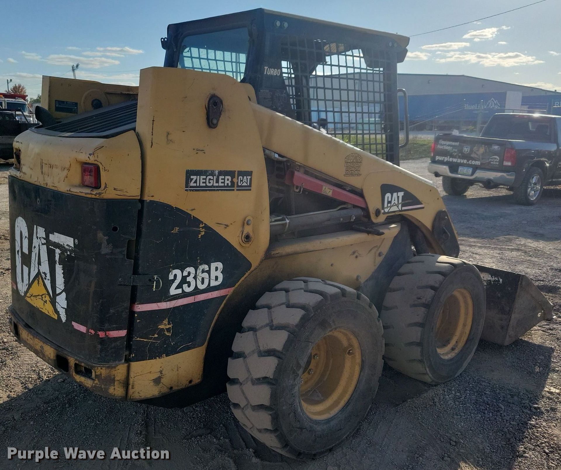 Purple Wave is selling a used Skid Steer Loader in Iowa. This item is a 2004 Caterpillar 236B skid steer loader with the following: Hours: 5,423 on meter, Serial: CAT0236BPHEN00516