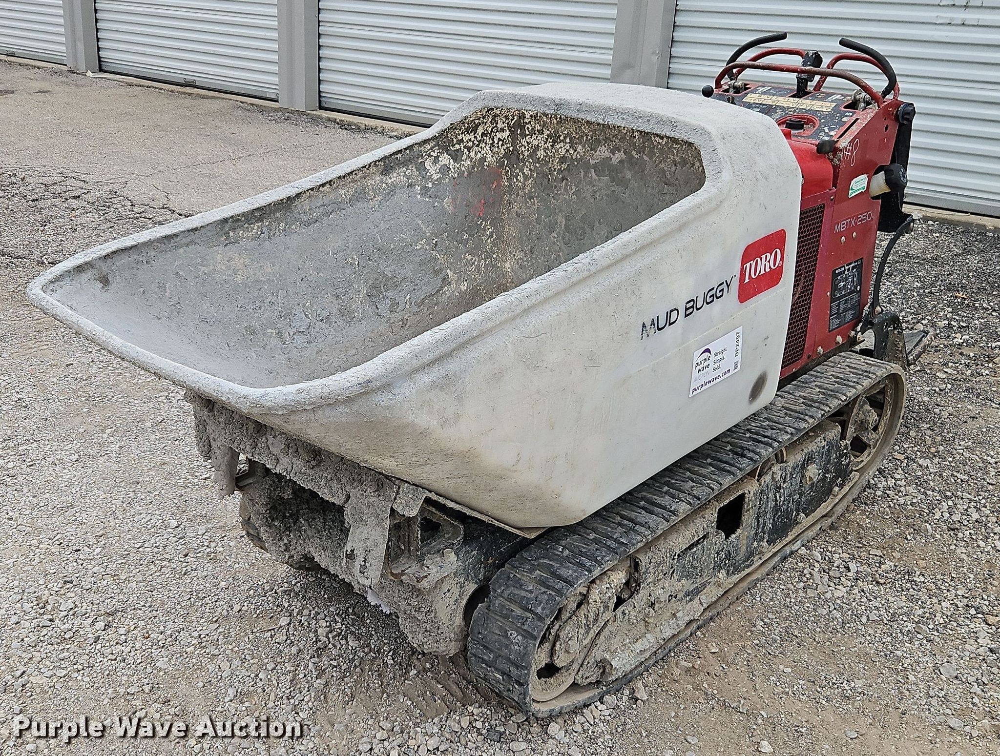 Purple Wave is selling a used Concrete Dispenser in Kansas. This item is a Toro MBTX-250 power buggy with the following: Hours: 395 on meter, Serial: 401283472