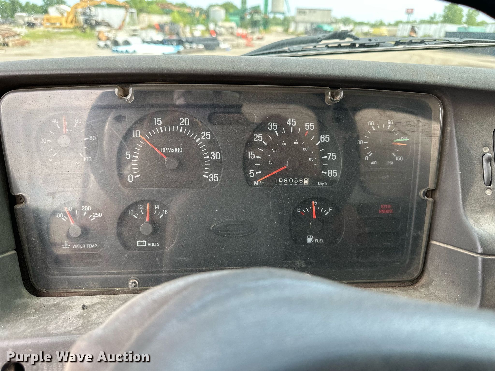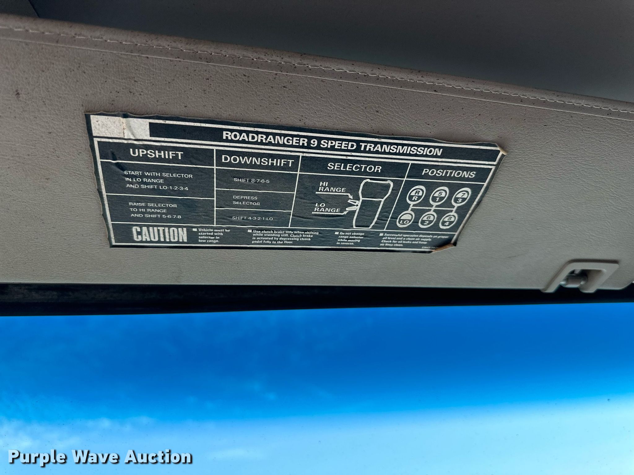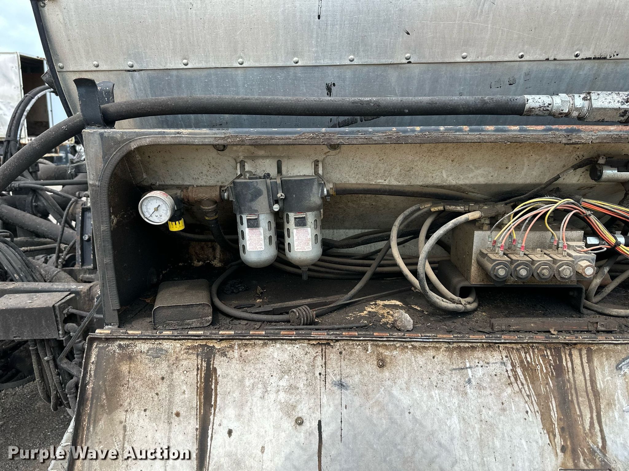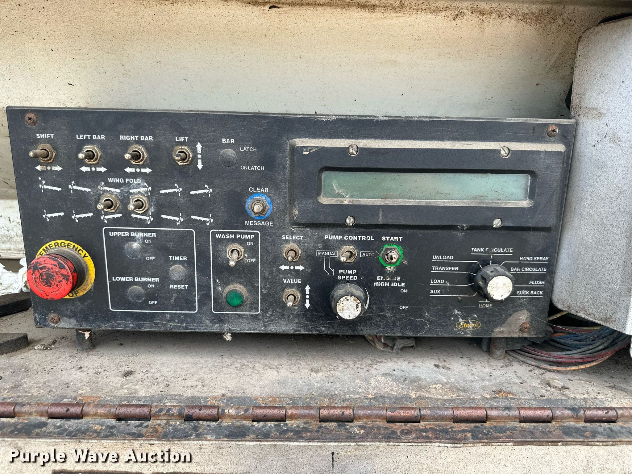 2002 Sterling L-Line oil distributor truck. Miles: 109,056 on odometer, VIN: 2FZAATBV42AK60228, Unit #: 2004. Engine Cummins ISB, Displacement: 6.7L, Cylinders: 6, Fuel type: Diesel. Transmission Eaton Fuller Roadranger, Manual, Speed: 9. Chassis Axles: Single, Suspension: Spring, Brakes: Air, PTO. Interior AC, Heat, Cruise control. Features Bed / tank Etnyre , Capacity: 2,250 gallons, 12' L x 96" W, Heat rating: 500 degrees, In-cab controls, Spray wand, Spray boom Width: 14', Folding, Side shift, Nozzles: 56.. Tires Size: 11R22.5. Sunflower Paving Inc./RD Johnson Excavating. 4123 Northeast Seward Avenue. Topeka, KS 66616