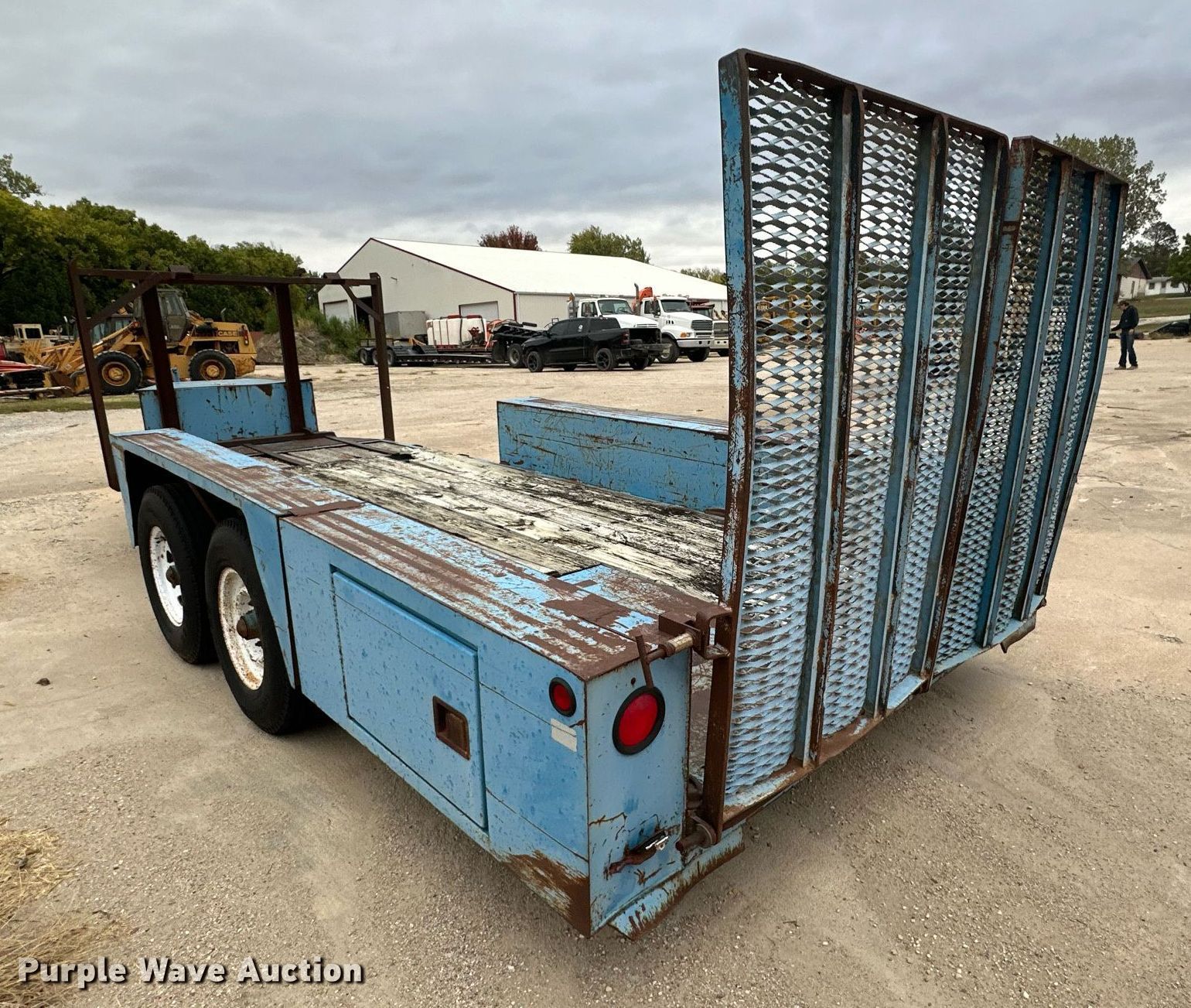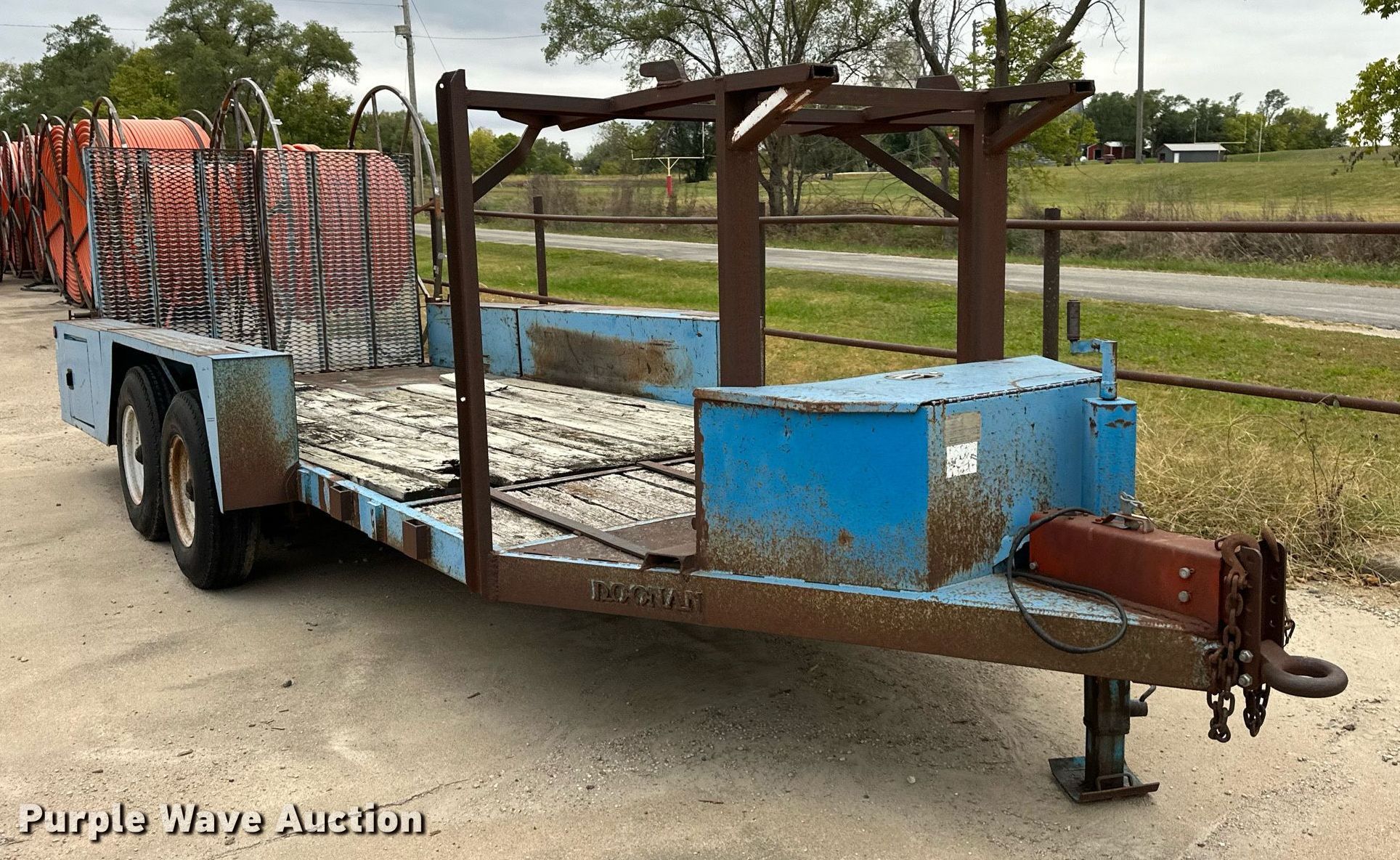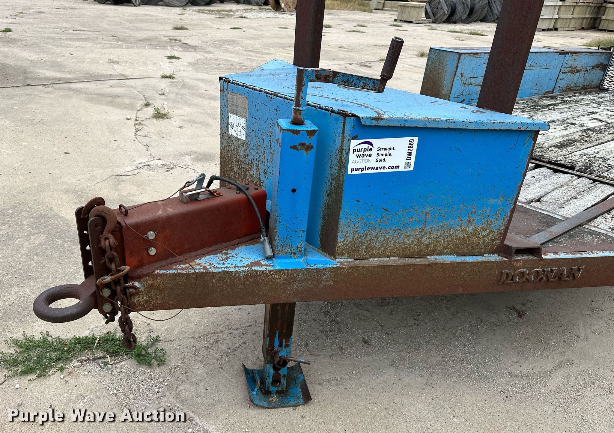1992 Doonan equipment trailer. VIN: 1DC0S1601MG000061. Dimensions Overall: 22' L x 96" W, Deck: 18' L x 75" W, Ramps: Manual Length: 54". Features Deck type: Wood. Chassis Hitch: Pintle, Landing gear: Single, Suspension: Spring, Brakes: Hydraulic, Axles: Tandem, GVWR: 14,000 lbs, GAWR: 11,600 lbs. Tires Steel wheels, Size: 7.50R16LT. Kansas title. Bob Hull Inc.. Frankfort, KS 66427
