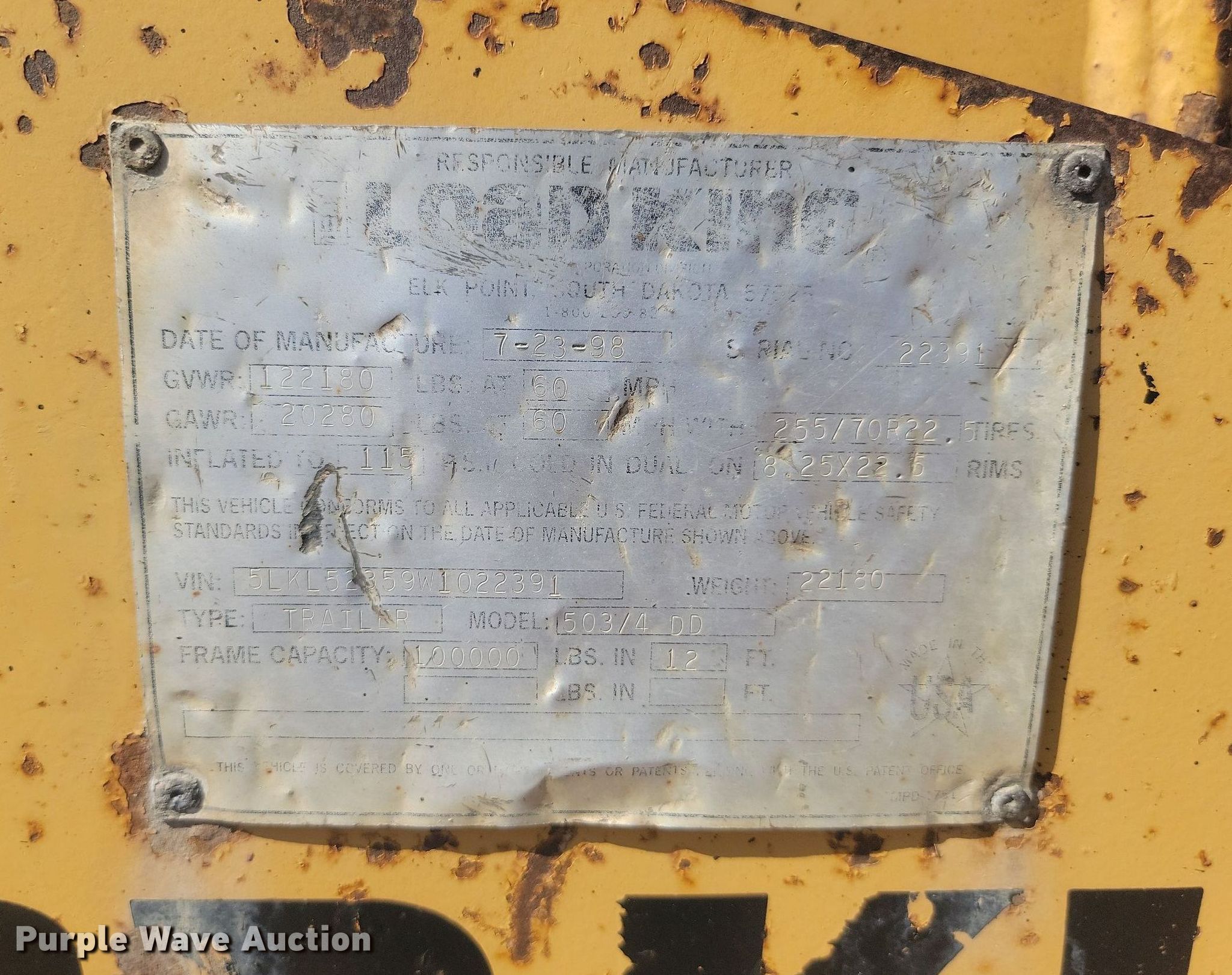 Purple Wave is selling a used Equip. Trailer in Iowa. This item is a 1998 Load King 503/4DD lowboy equipment trailer with the following: VIN: 5LKL52359W1022391