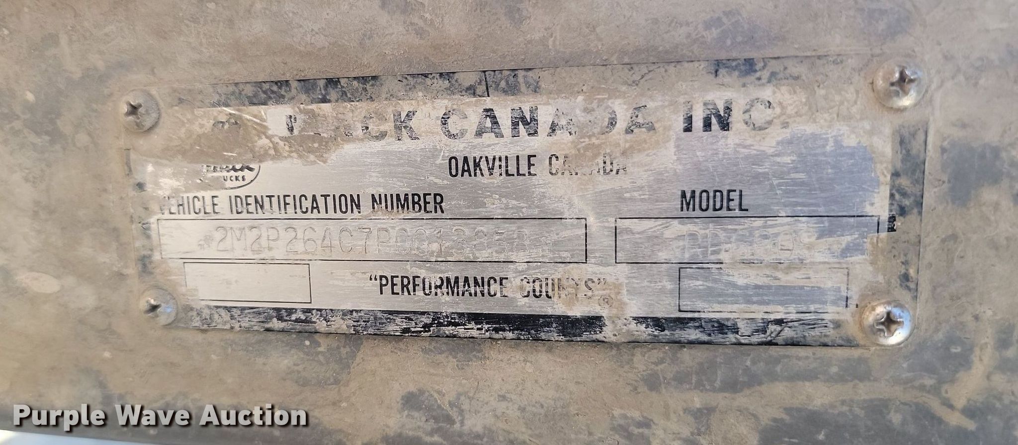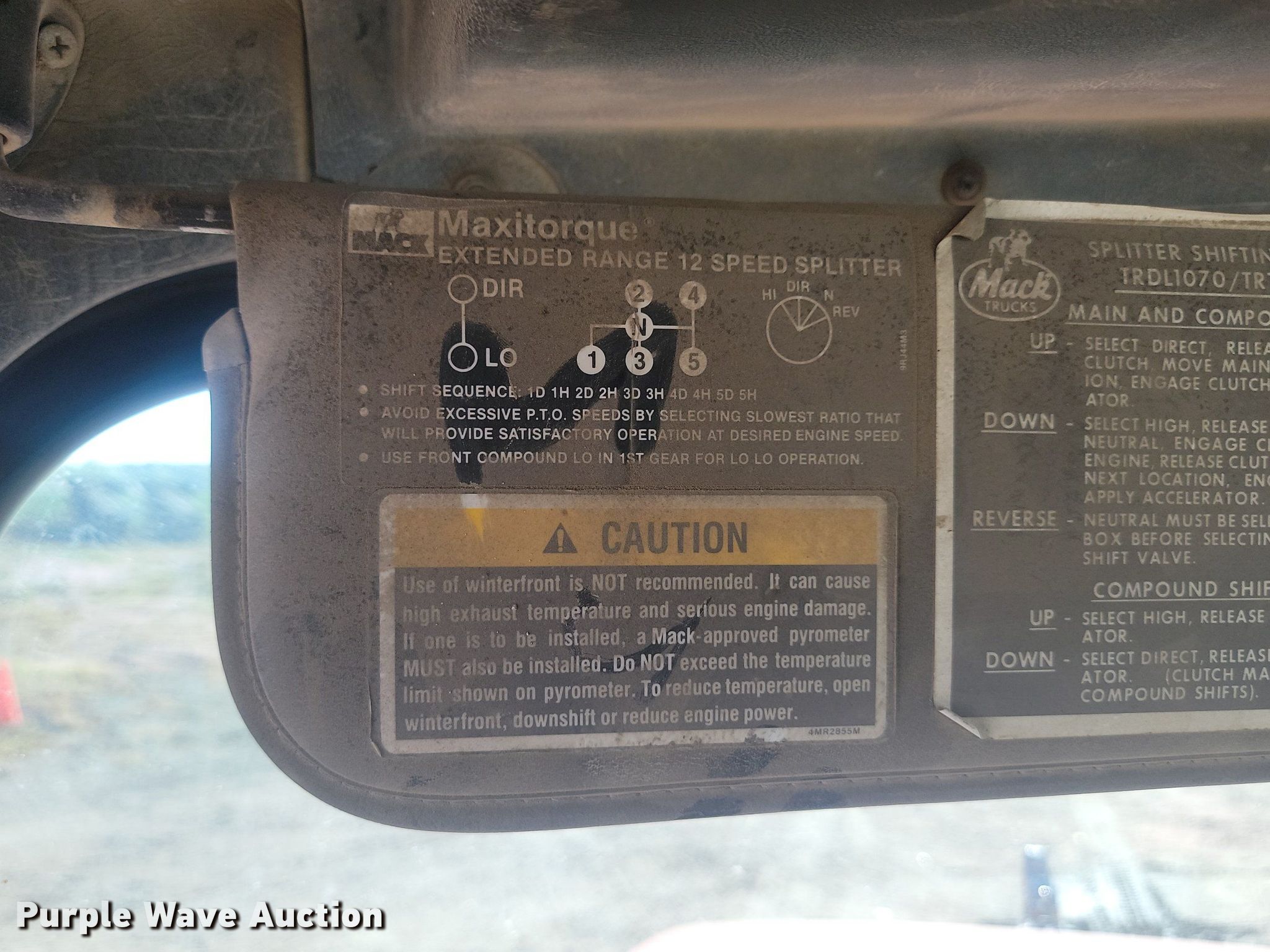 1993 Mack RD690S water truck. Miles: 229 on odometer, Hours: 5,251 on meter, VIN: 2M2P264C7PC013858. Engine Displacement: 12.0L, Cylinders: 6, Fuel type: Diesel. Transmission Maxitorque, Manual, Speed: 10. Chassis Axles: Tandem, Tag axle, Suspension: Spring over walking beam, Brakes: Air, PTO. Interior Heat. Features Bed / tank Capacity: 4,000 gallons, 22' L x 96" W, Spray bar: Front, Rear, Side discharge, Top fill, Rear drain: 5". Tires Front: 385/65R22.5, Rear: 11R22.5, Lift axle: 10R17.5. Notes Driver door handle issues. Iowa title. Mileage has not been verified. Exempt will be written in the odometer disclosure on the title. Knife River Corporation (Corporate Office Location). 2220 Hawkeye Drive. Sioux City, IA 51105