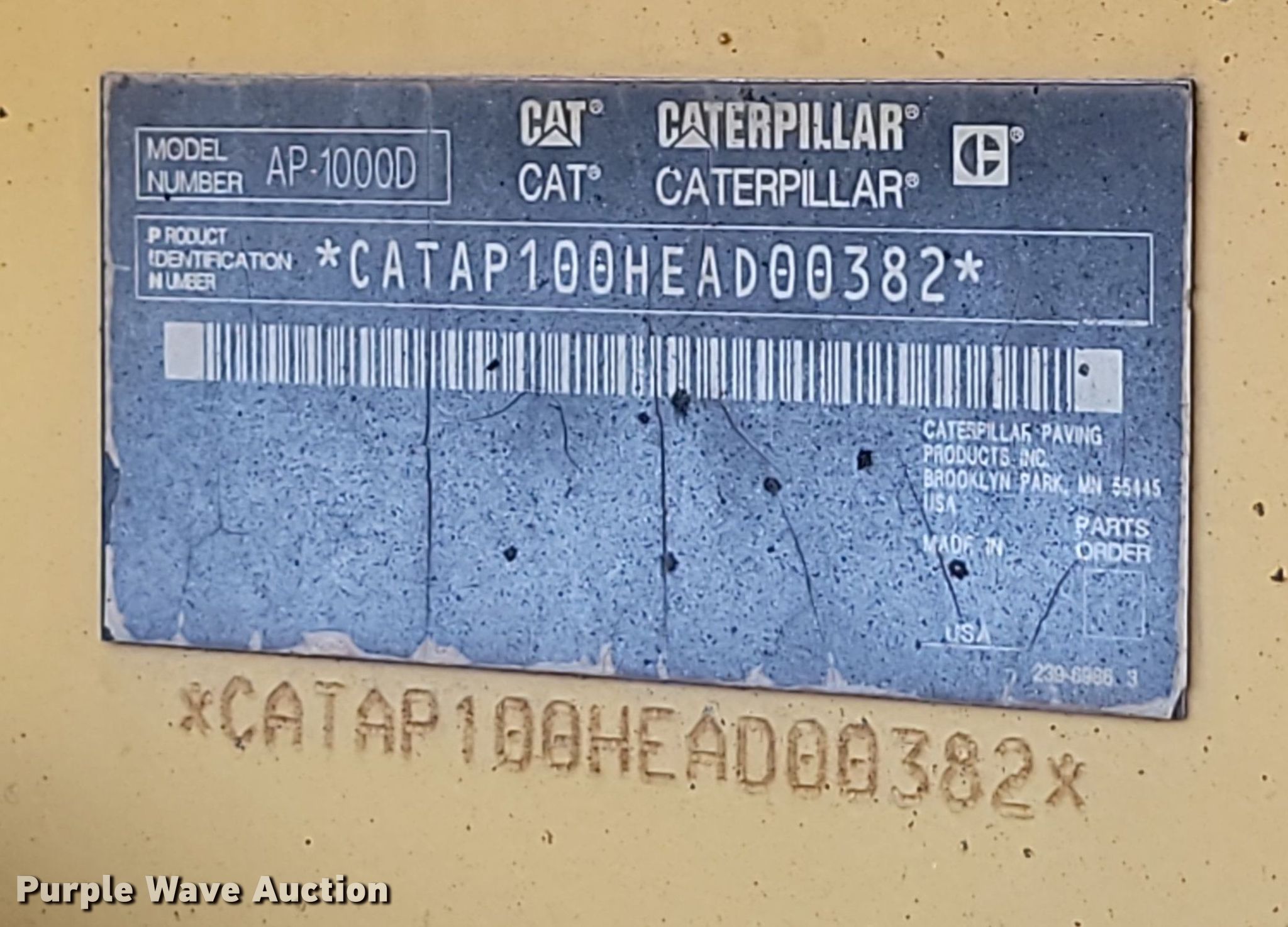 Purple Wave is selling a used Paver or Screed in Iowa. This item is a 2010 Caterpillar AP1000D paver with the following: Hours: Unknown, Serial: CATAP100HEAD00382