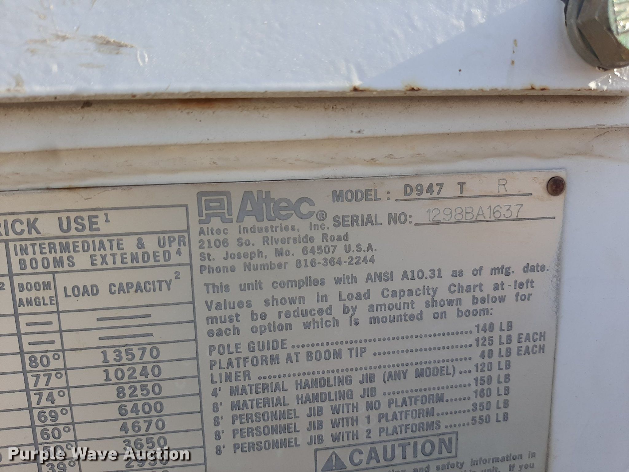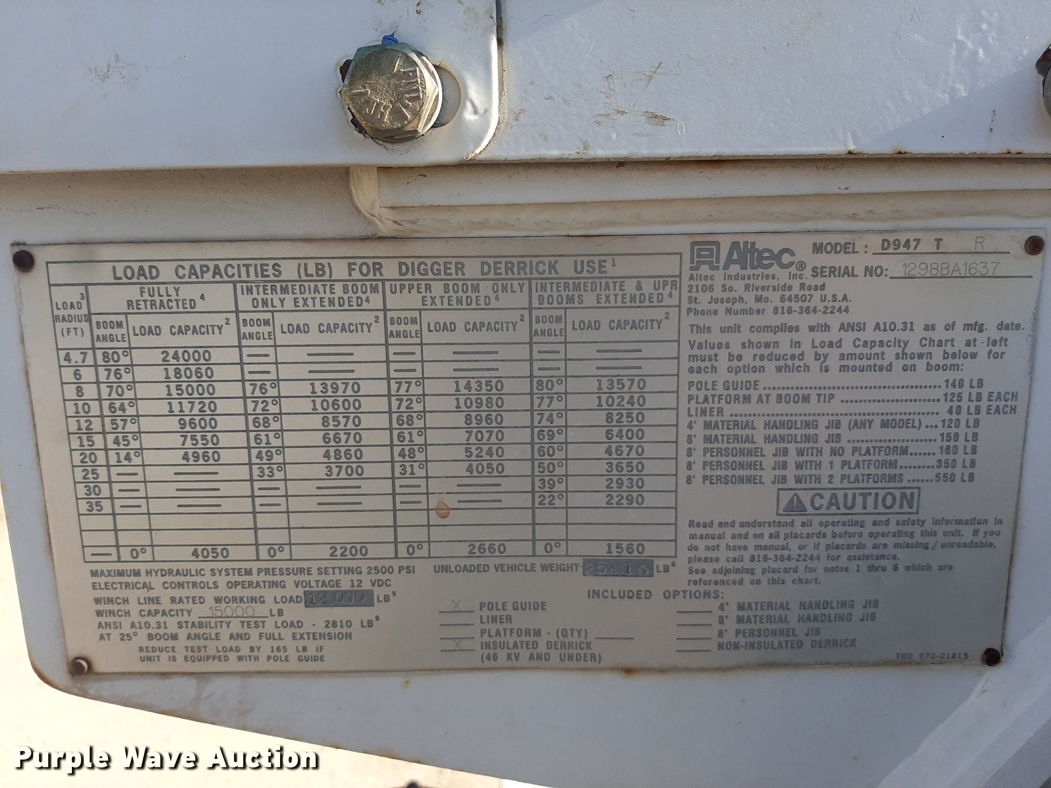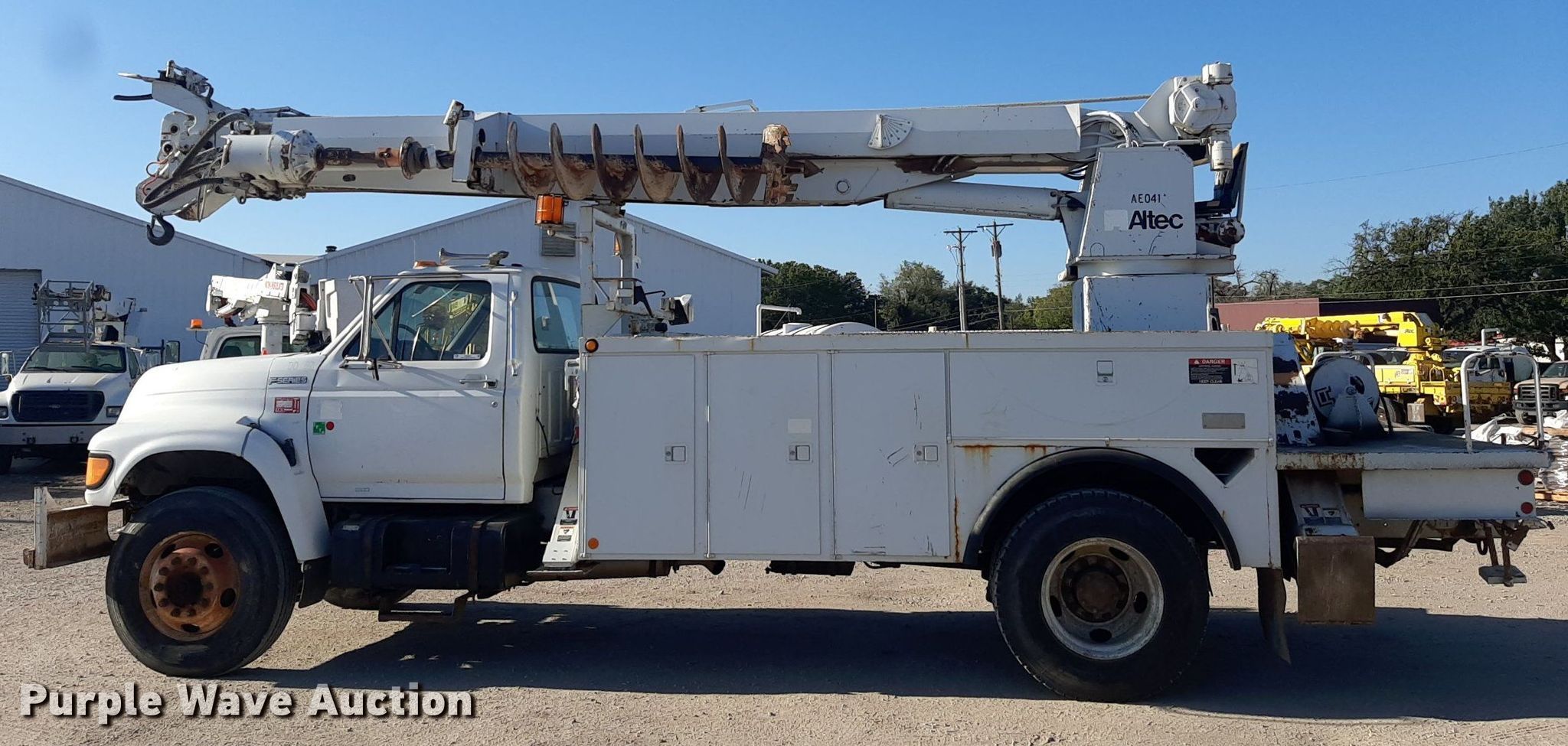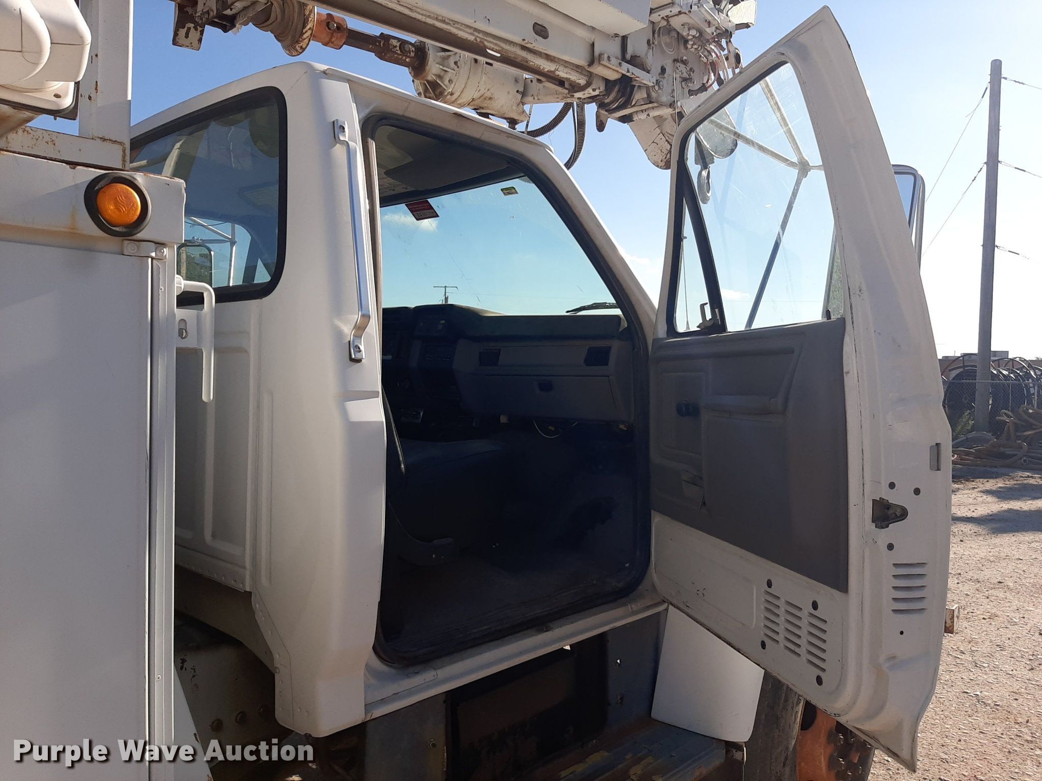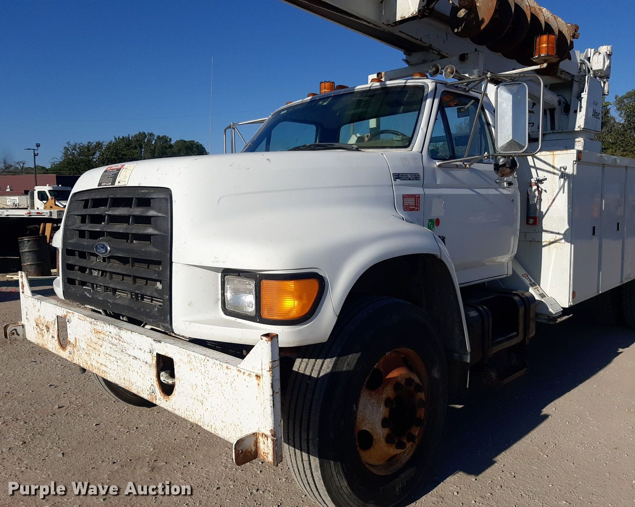 1999 Ford F800 digger derrick truck. Miles: 41,220 on odometer, VIN: 3FEXF8014XMA12218. Engine Cummins ISB, Displacement: 5.9L, Cylinders: 6, Fuel type: Diesel. Transmission Manual, Speed: 6. Chassis Axles: Single, Suspension: Spring, Brakes: Air. Interior AC, Heat. Features Bed Altec, 15' 9" L x 93" W, Boom Altec D947T, Serial: 1298BA1637, Maximum lift capacity: 24,000 lbs, Maximum lift height: 35', Boom type: Telescopic, Boom controls, Pole guide, Auger Diameter: 20".. Tires Size: 11R22.5. View repairs. Kansas title. Title distribution may be delayed up to 14 days from verification of funds. Phillips Southern Electric. 600 E Gilbert St. Wichita, KS 67211