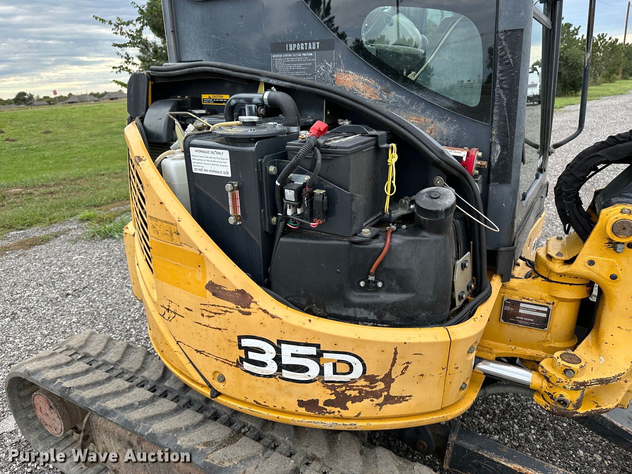 Purple Wave is selling a used Mini Excavator in Oklahoma. This item is a 2014 John Deere 35D mini excavator with the following: Hours: 5,109 on meter, Serial: 1035DXJCG271296