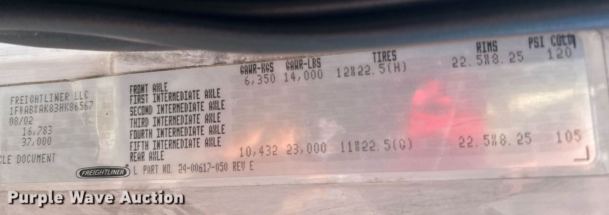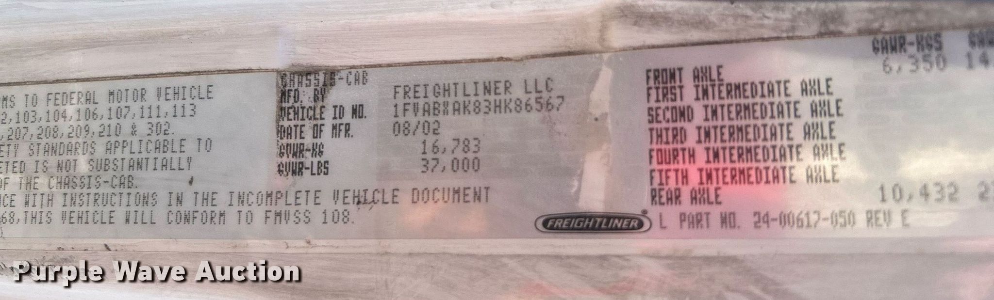 Purple Wave is selling a used Bucket Truck in Oklahoma. This item is a 2003 Freightliner FL80 bucket truck with the following: Miles: 176,366 on odometer, Hours: 18,625 on meter, VIN: 1FVABXAK83HK86567