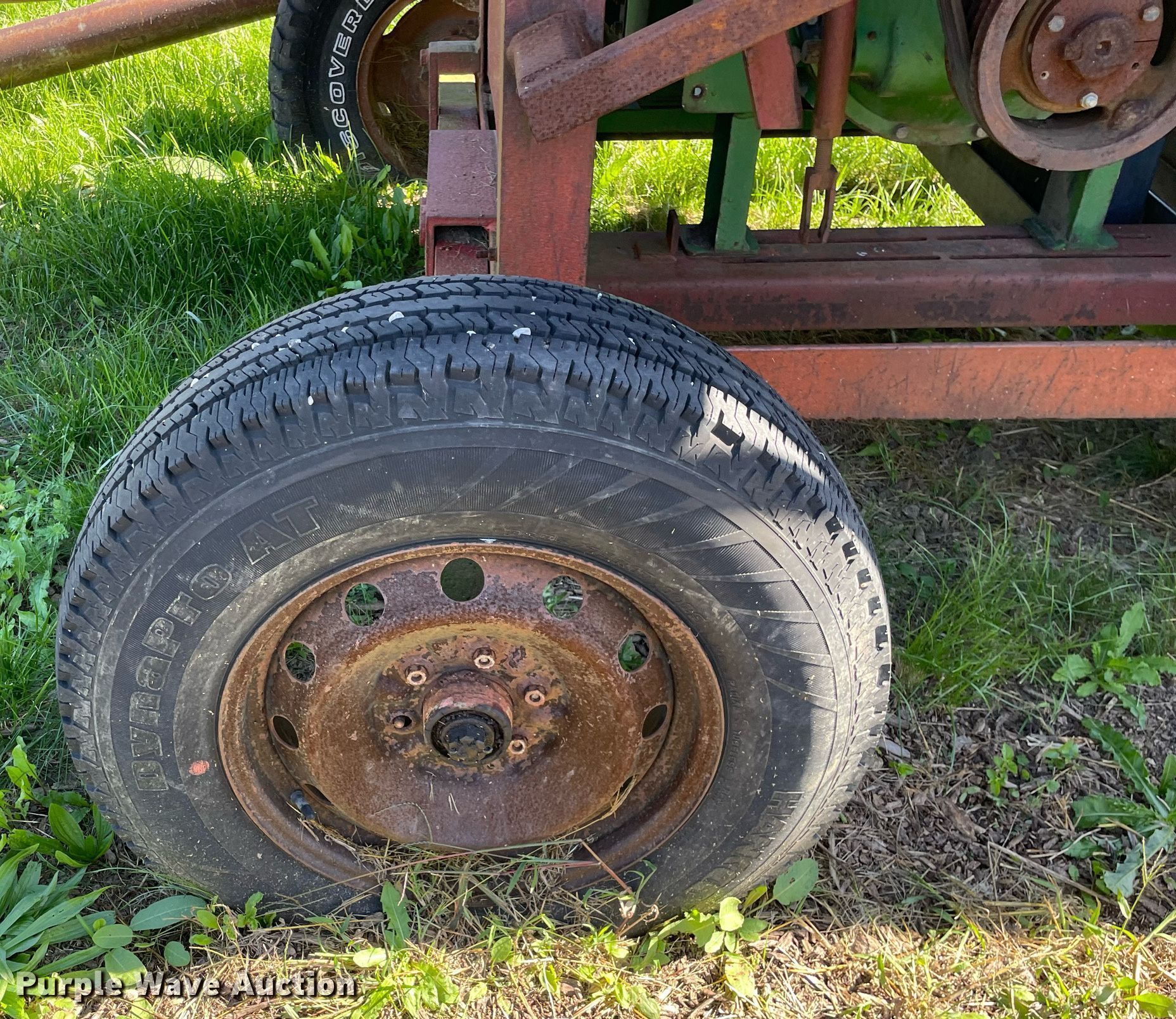 Royer topsoil shredder. Hours: 12,183 on meter, Serial: 1360-62-118. Engine John Deere , Cylinders: 4, Fuel type: Diesel. Chassis Axles: Tandem. Features Input hopper Length: 8', Width: 5', Discharge: 14' L x 24" W. Tires Size: 235/75R17. Notes Flat tires , Non-operational unit. Central Sod Farms Inc.. 25605 West 111th Street. Plainfield, IL 60585
