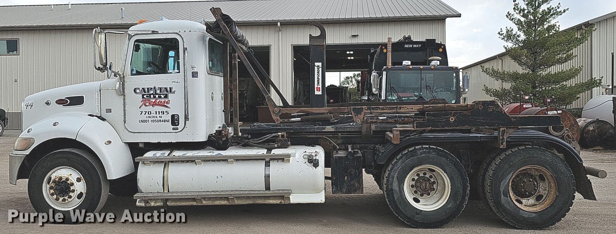 Purple Wave is selling a used Rollback or Tow Truck in Nebraska. This item is a 2014 Peterbilt 382 hook lift truck with the following: Miles: 344,909 on odometer, Hours: 17,379 on meter, VIN: 1NP9D29X5ED218225, Unit #: 44
