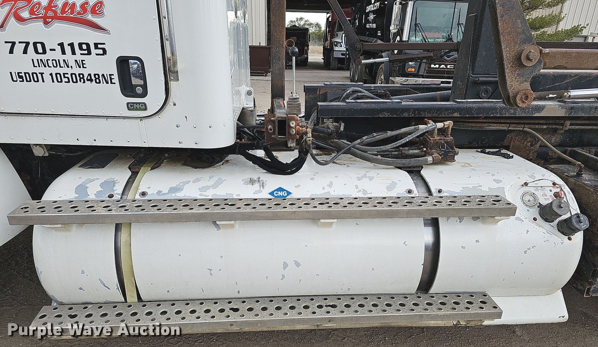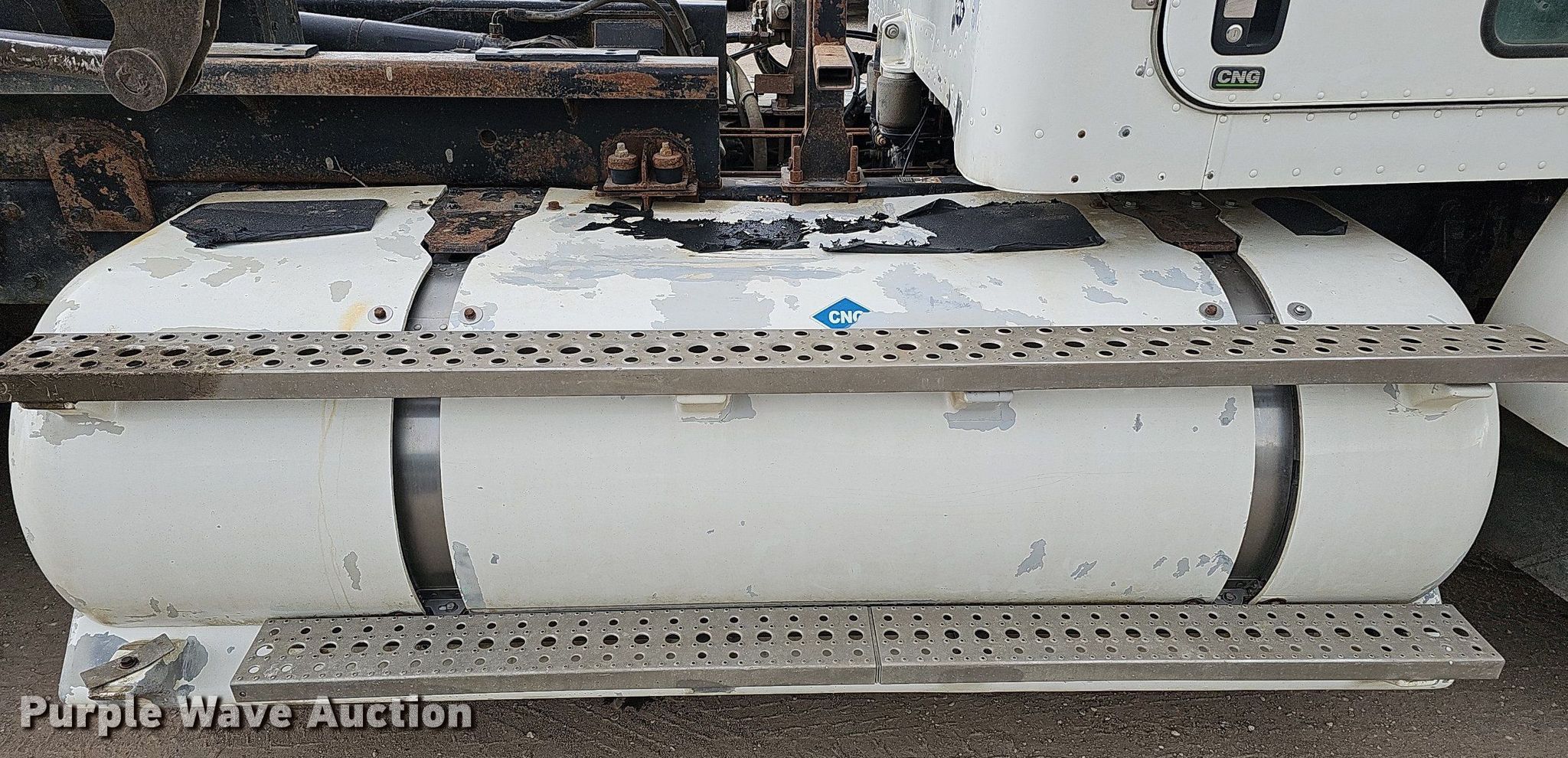 2014 Peterbilt 382 hook lift truck. Miles: 344,909 on odometer, Hours: 17,379 on meter, VIN: 1NP9D29X5ED218225, Unit #: 44. Engine Cummins ISL-G 320, Serial: 73500235, Displacement: 8.9L, Cylinders: 6, HP: 320, CNG (2) tanks. Transmission Allison, Automated manual. Chassis Axles: Tandem, Suspension: Air, Brakes: Air, PTO, GVWR: 52,000 lbs, Wheelbase: 216". Interior AC, Heat, Heated mirrors, Power windows, Power locks, Cruise control, Auxiliary controls. Features Hook lift bed SwapLoader SL-330, Serial: WAO537, 15', Roll tarp, Ram: Double. Tires Size: 11R22.5. Notes Dash warning indicator: Check engine, ABS, Windshield chipped or cracked. Nebraska title. Title distribution may be delayed up to 14 days from verification of funds. Capital City Refuse. 6950 North 84th Street. Lincoln, NE 68507