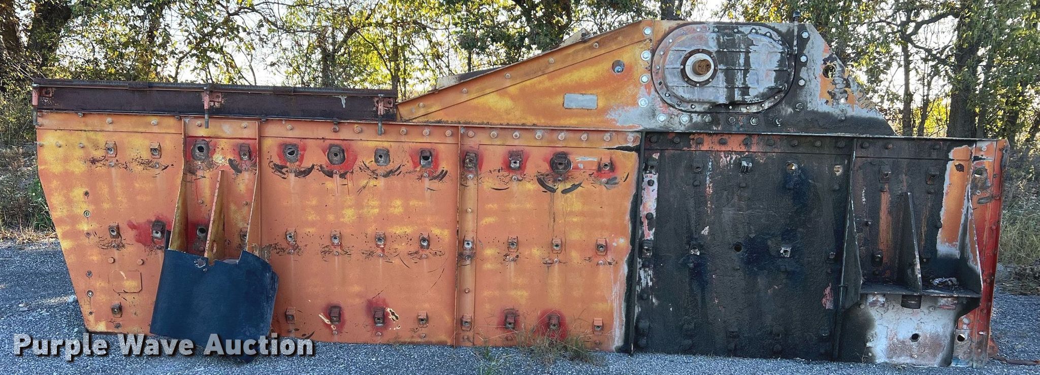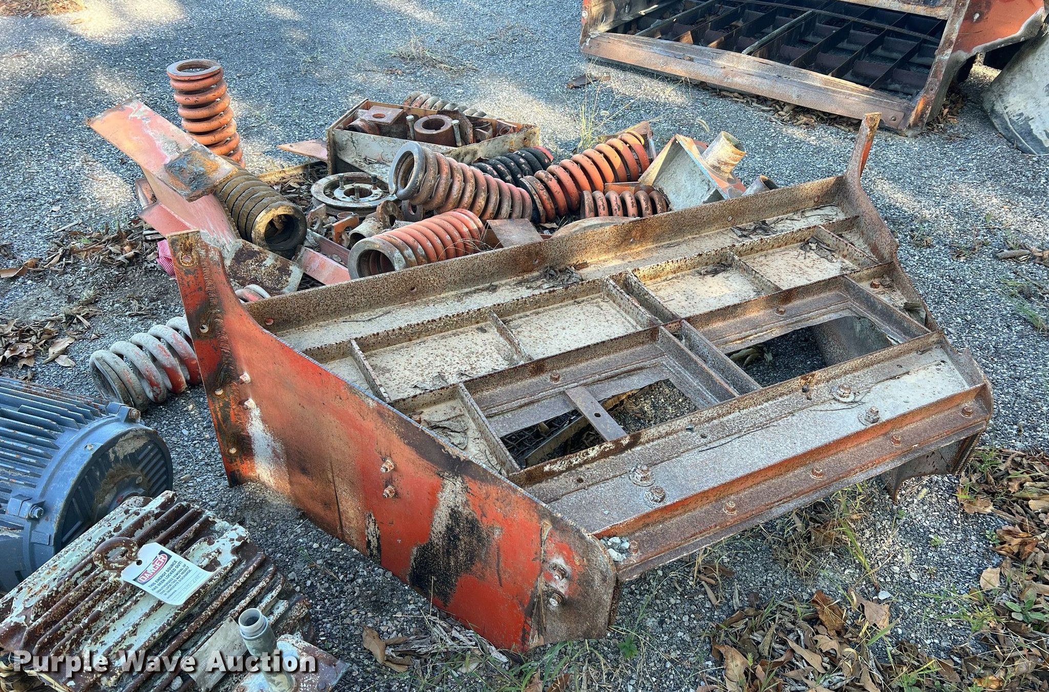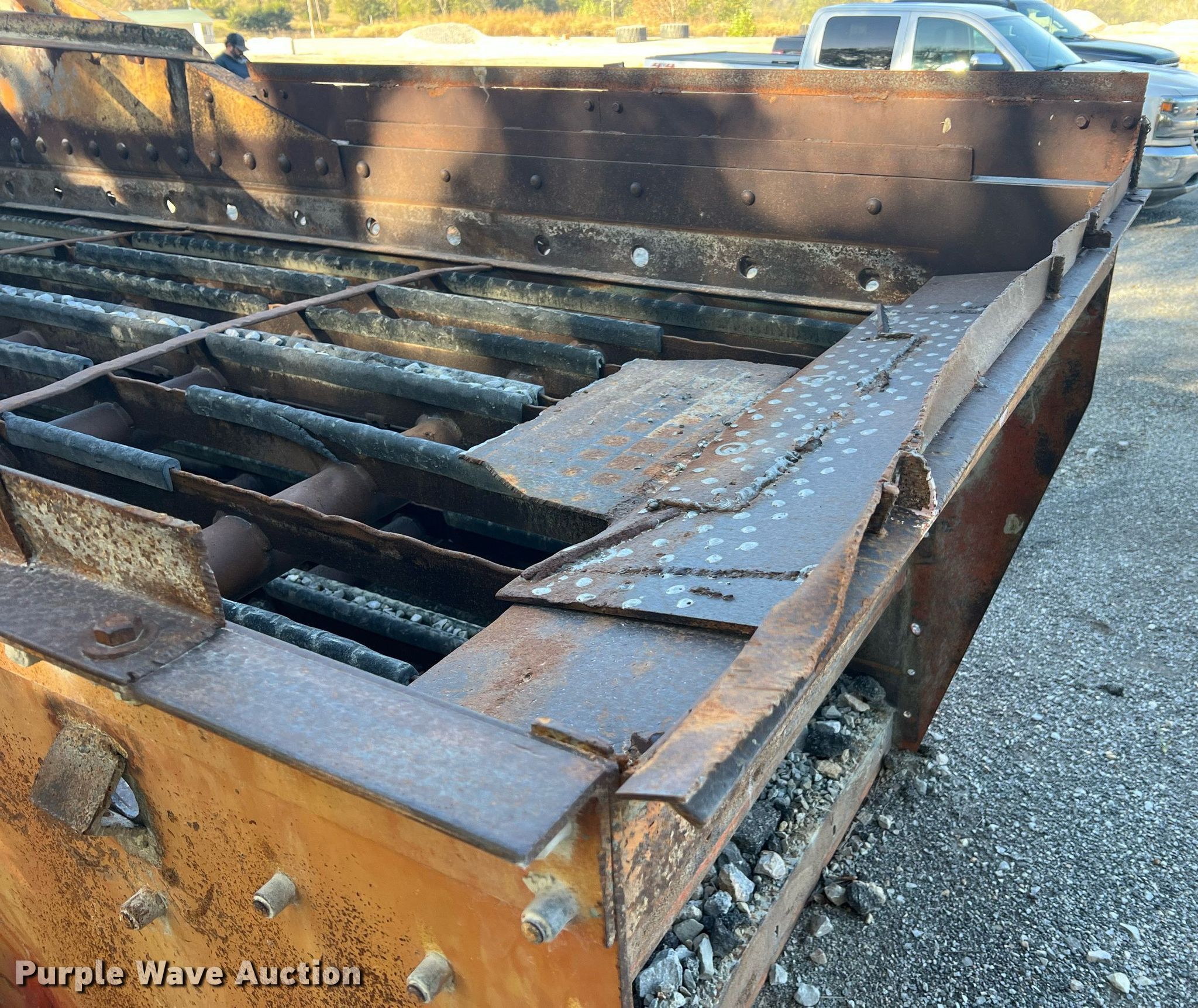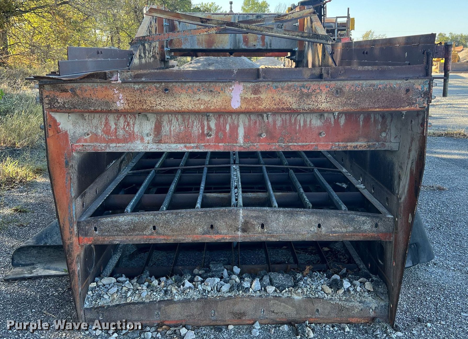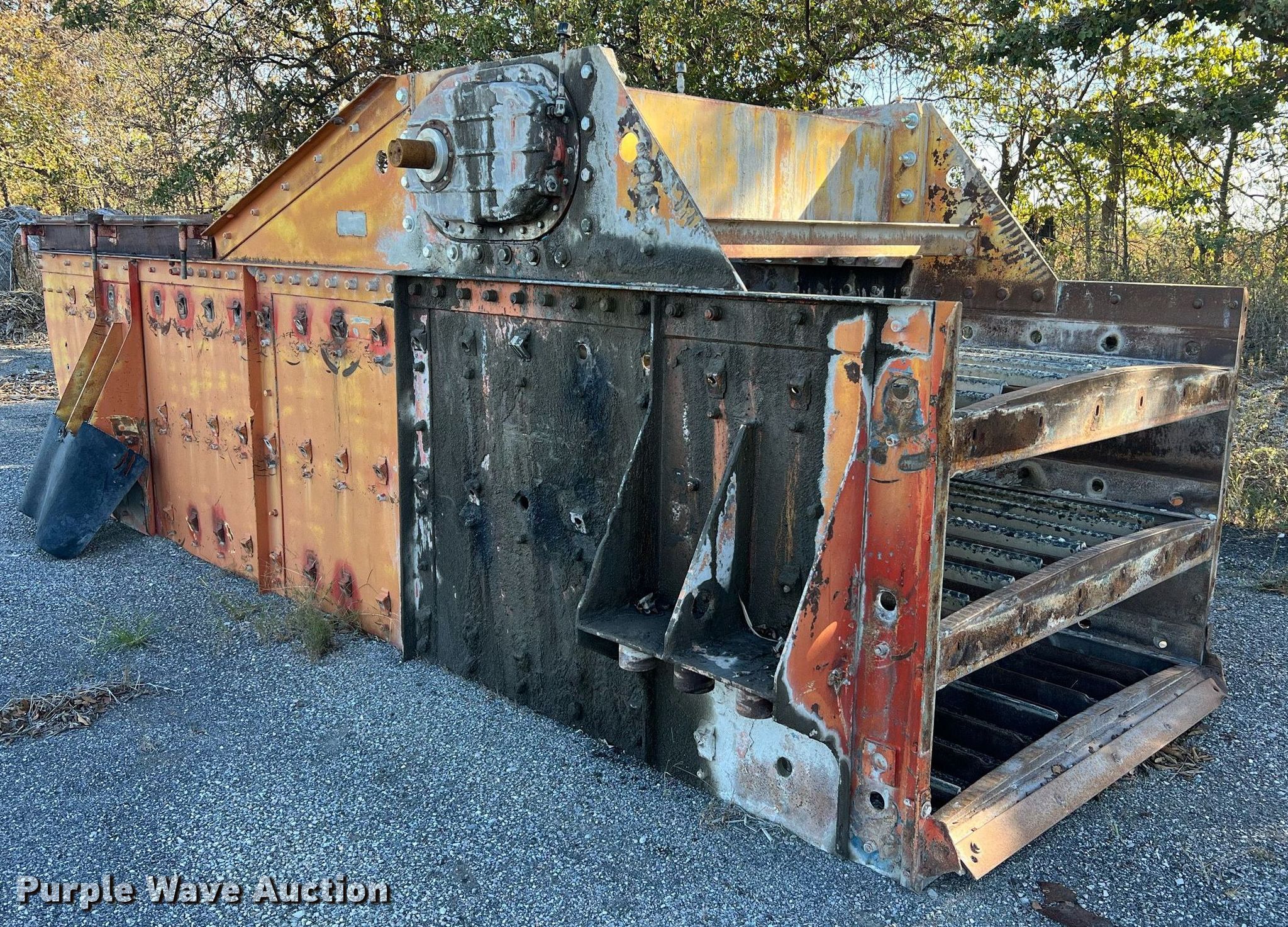 Simplicity screen. Serial: 3620-HS140D-1572. Features Screen deck Length: 20', Width: 6', Decks: Triple, Discharge chute, (10) springs, (2) drive pulleys. Notes Motors missing. Higgins Asphalt Paving Co.. 2347 BB Highway. Otterville, MO 65348