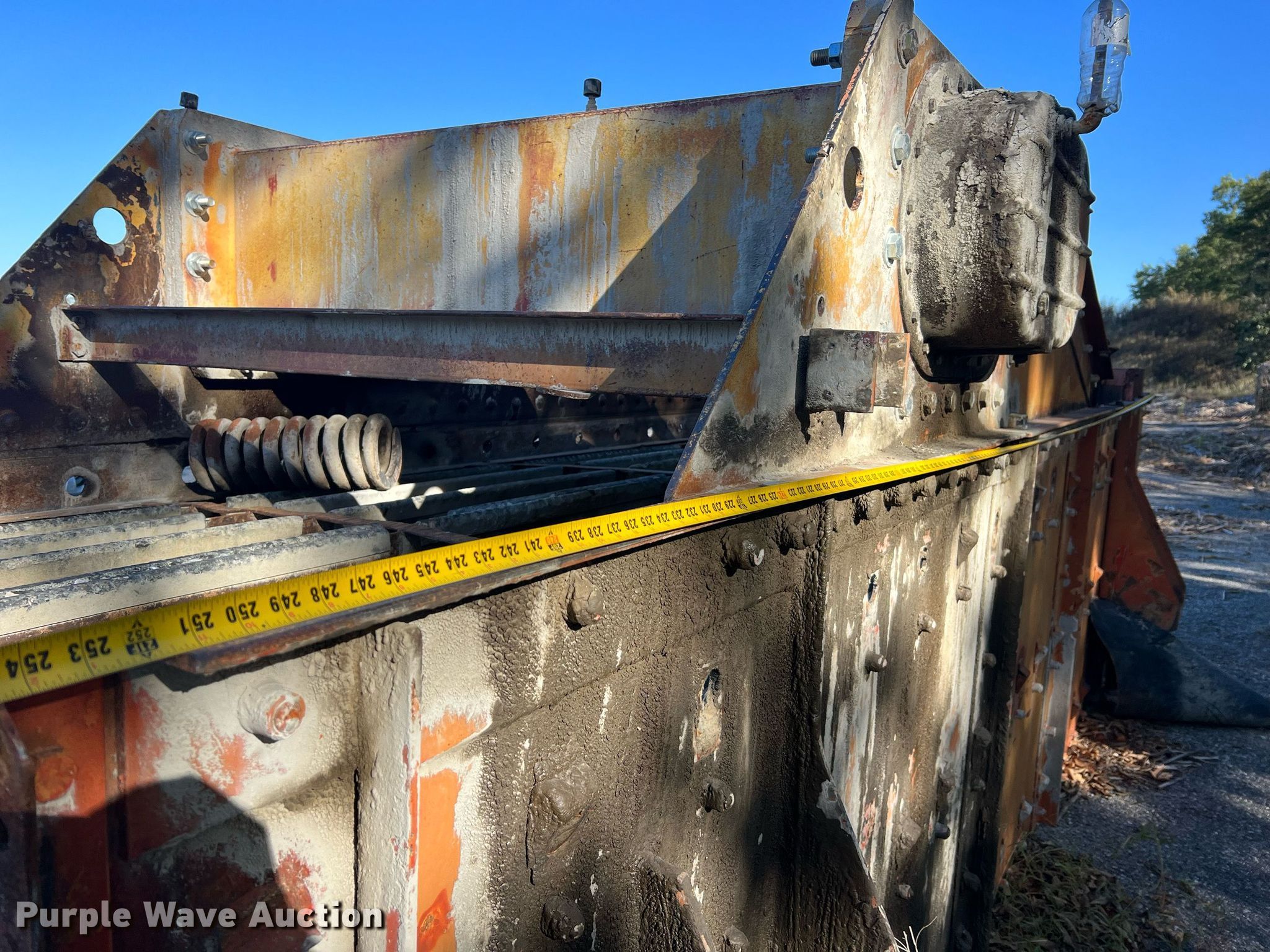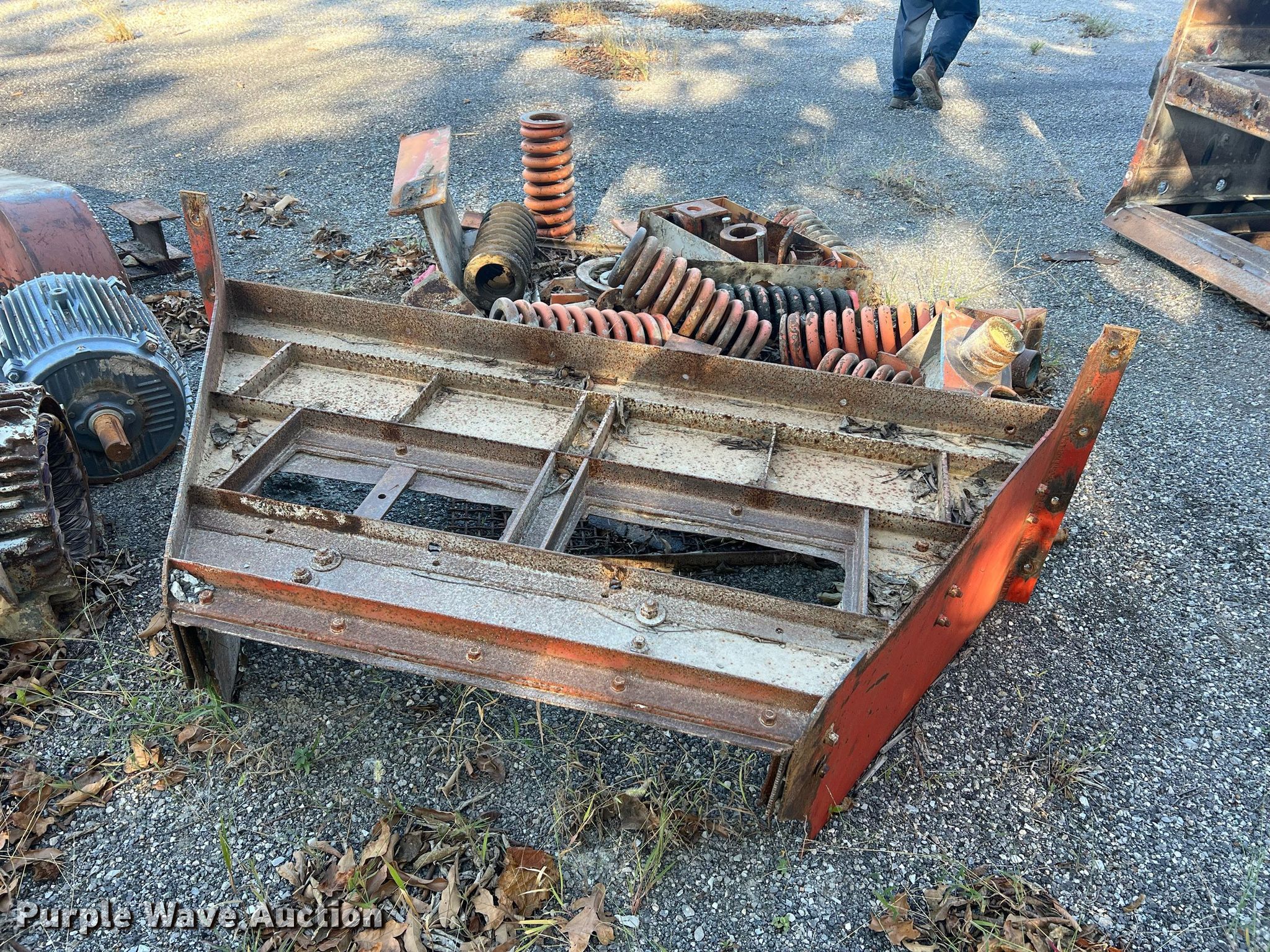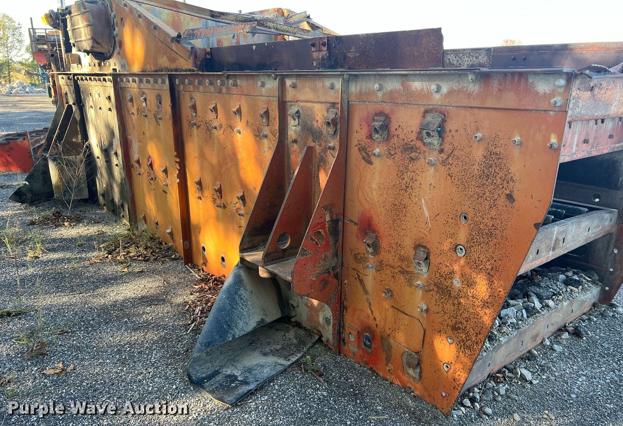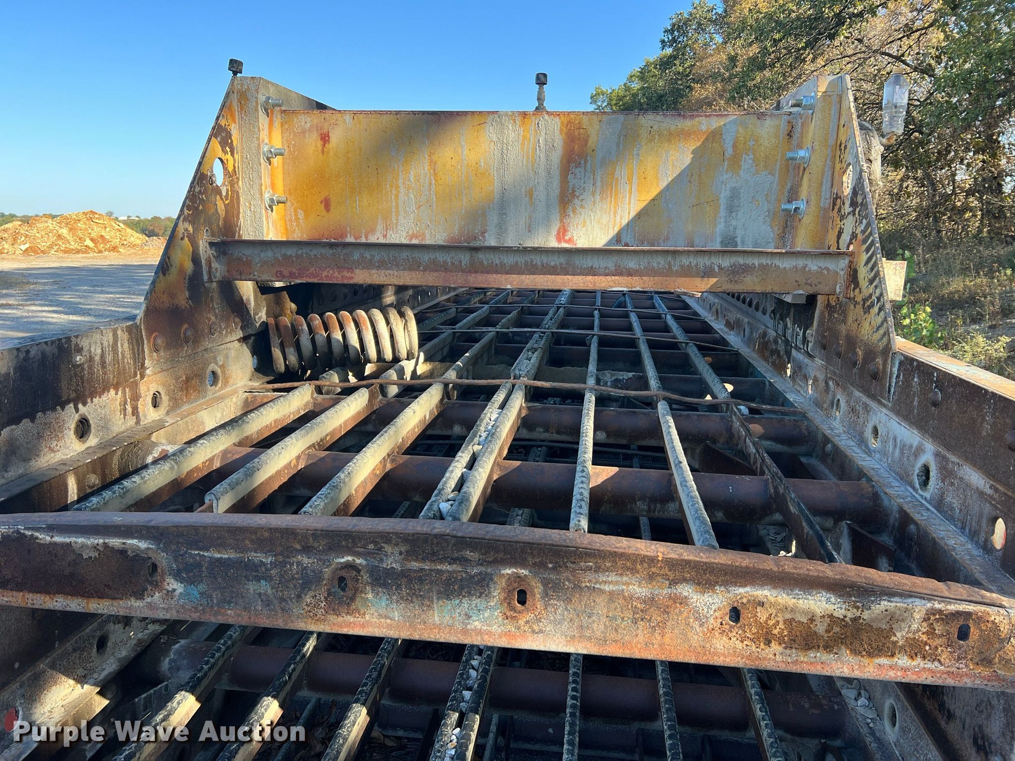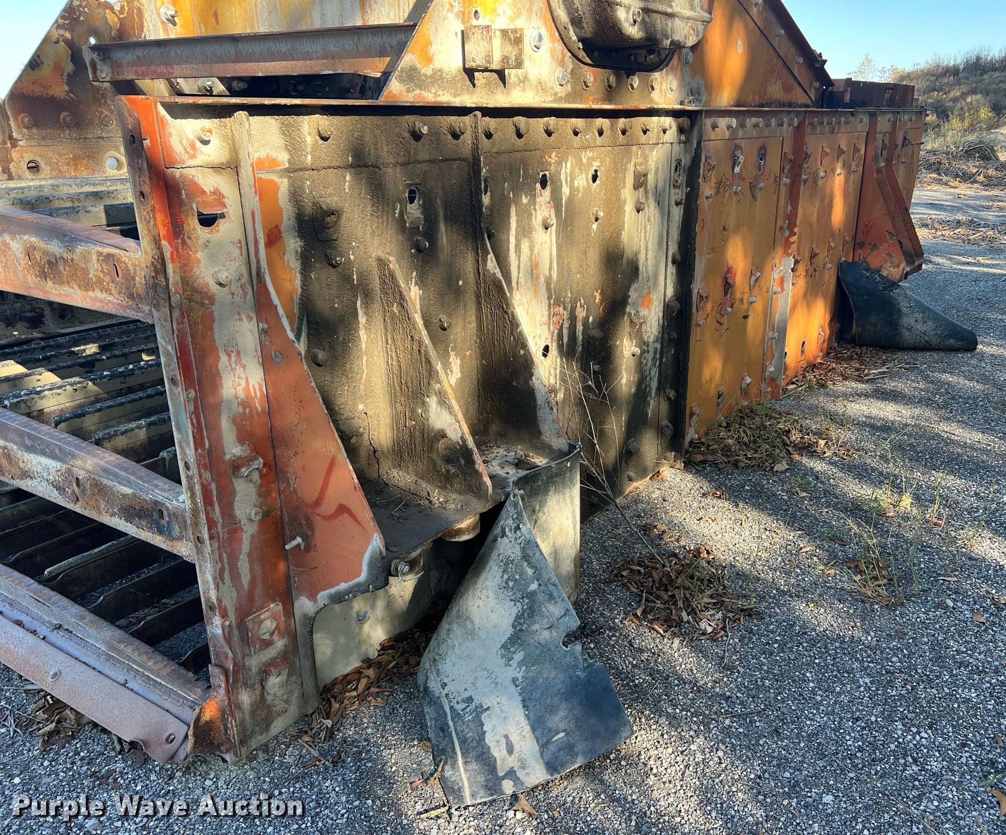 Simplicity screen. Serial: 3620-HS140D-1572. Features Screen deck Length: 20', Width: 6', Decks: Triple, Discharge chute, (10) springs, (2) drive pulleys. Notes Motors missing. Higgins Asphalt Paving Co.. 2347 BB Highway. Otterville, MO 65348