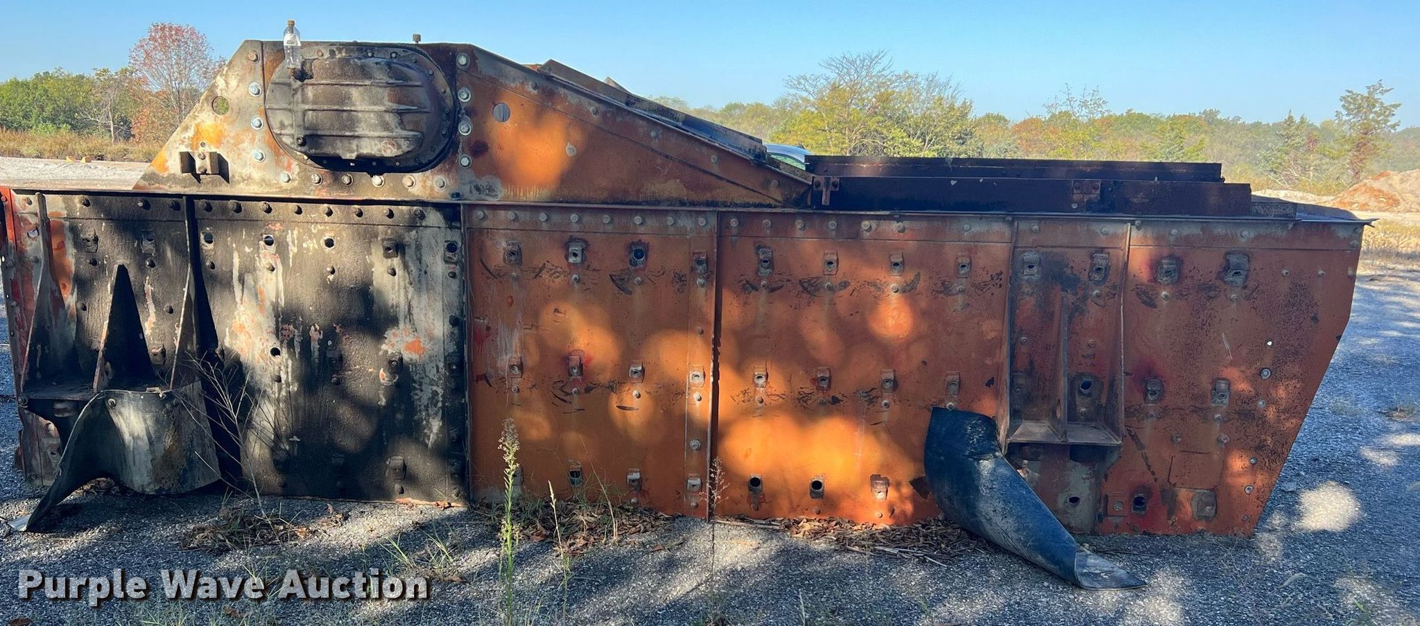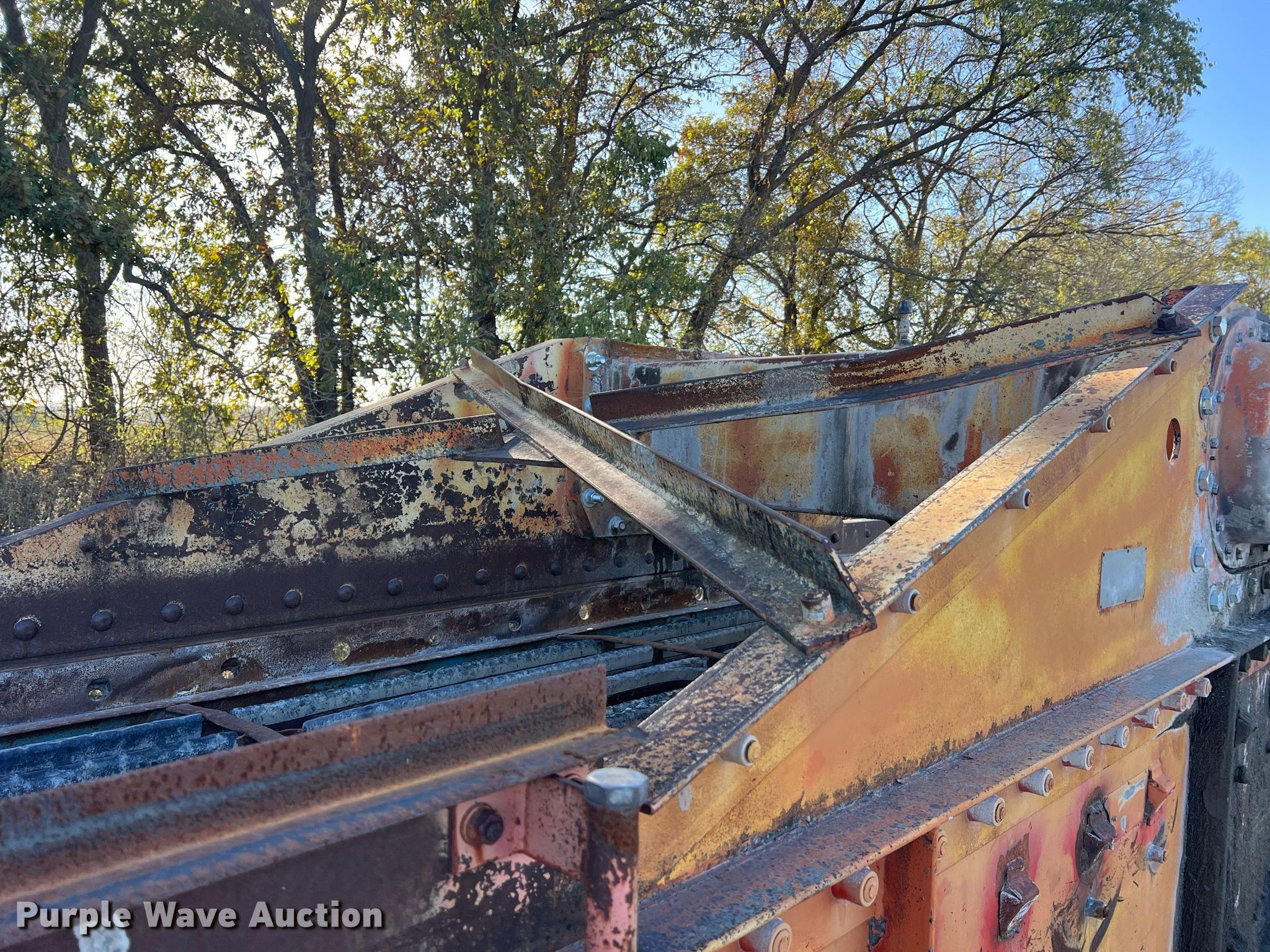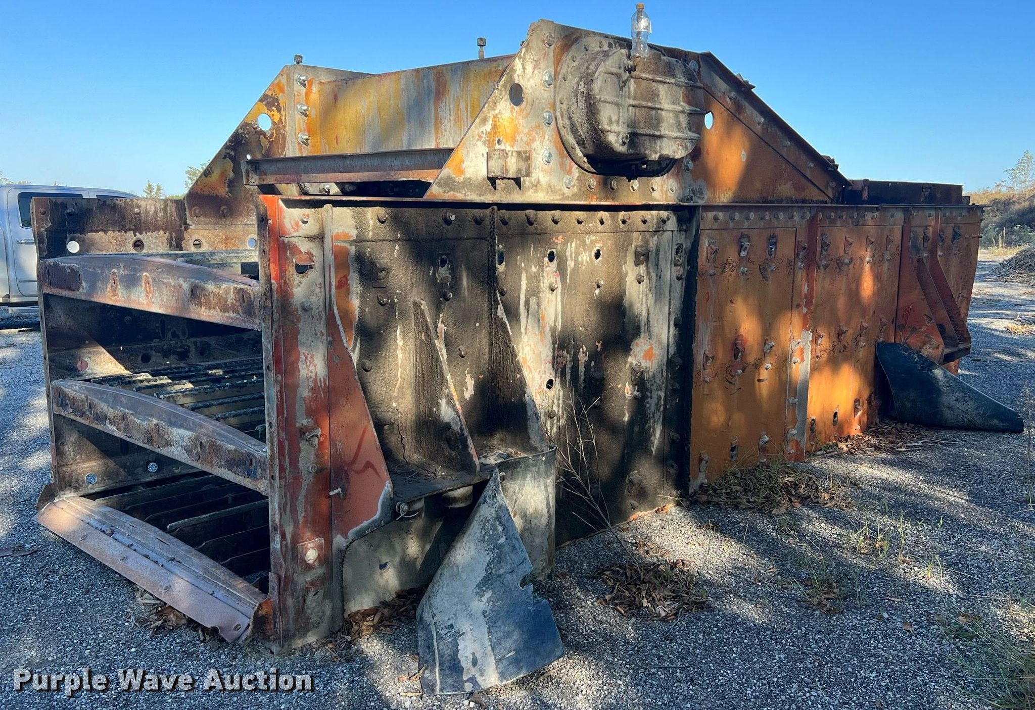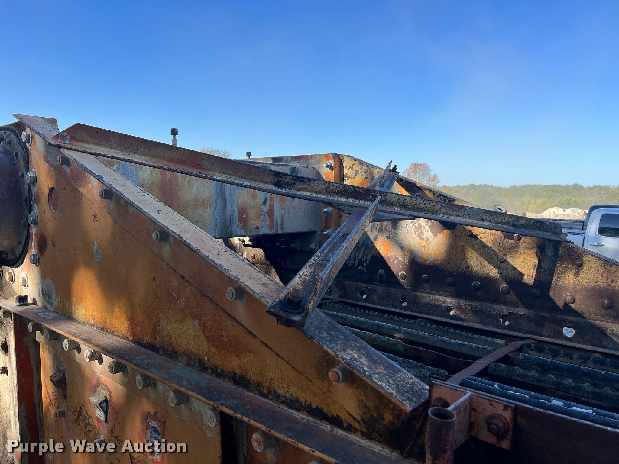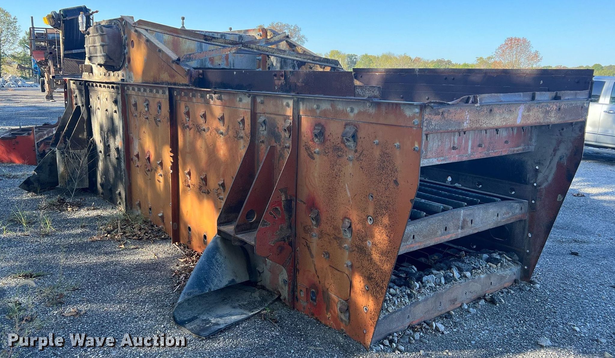 Simplicity screen. Serial: 3620-HS140D-1572. Features Screen deck Length: 20', Width: 6', Decks: Triple, Discharge chute, (10) springs, (2) drive pulleys. Notes Motors missing. Higgins Asphalt Paving Co.. 2347 BB Highway. Otterville, MO 65348