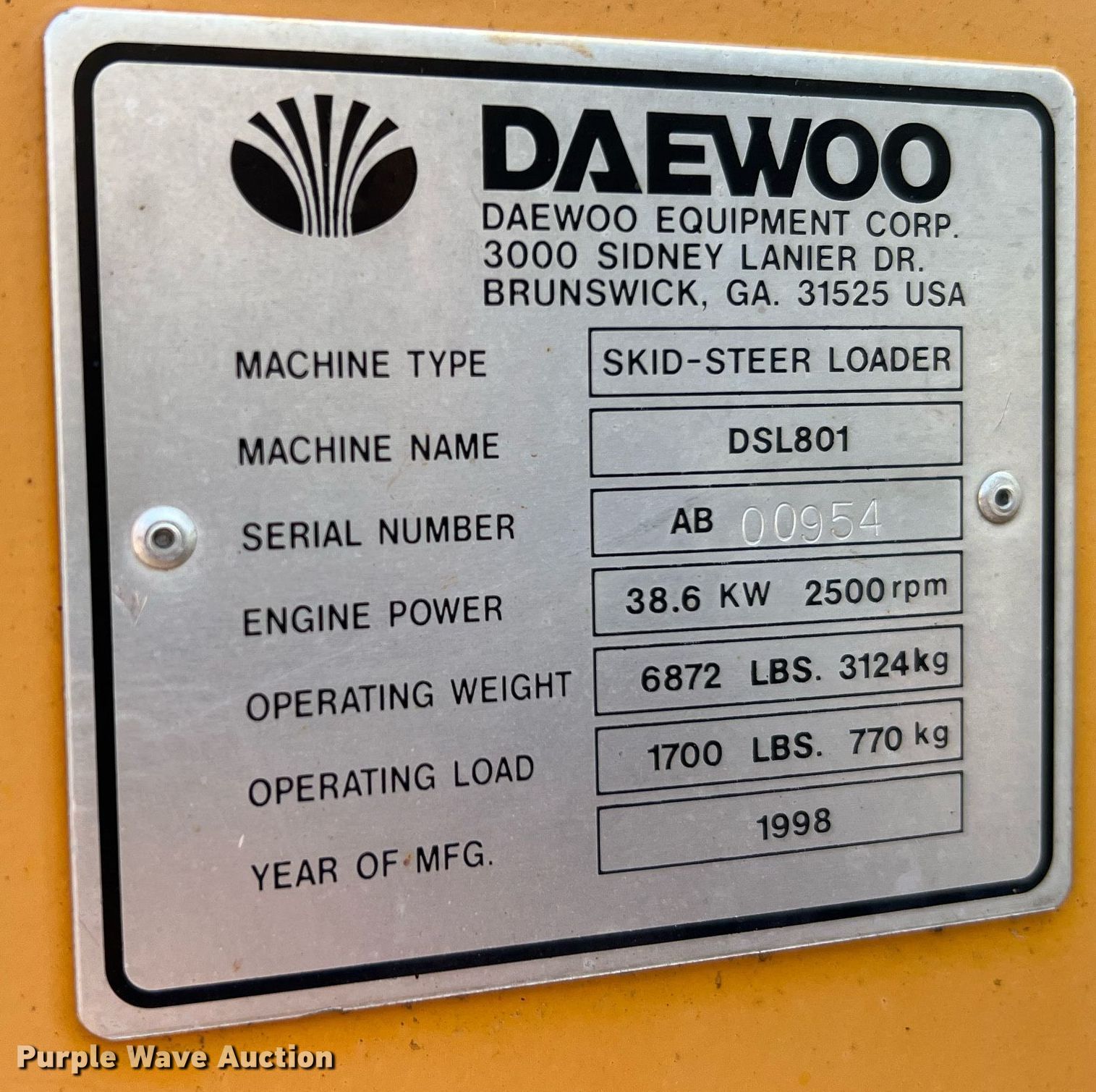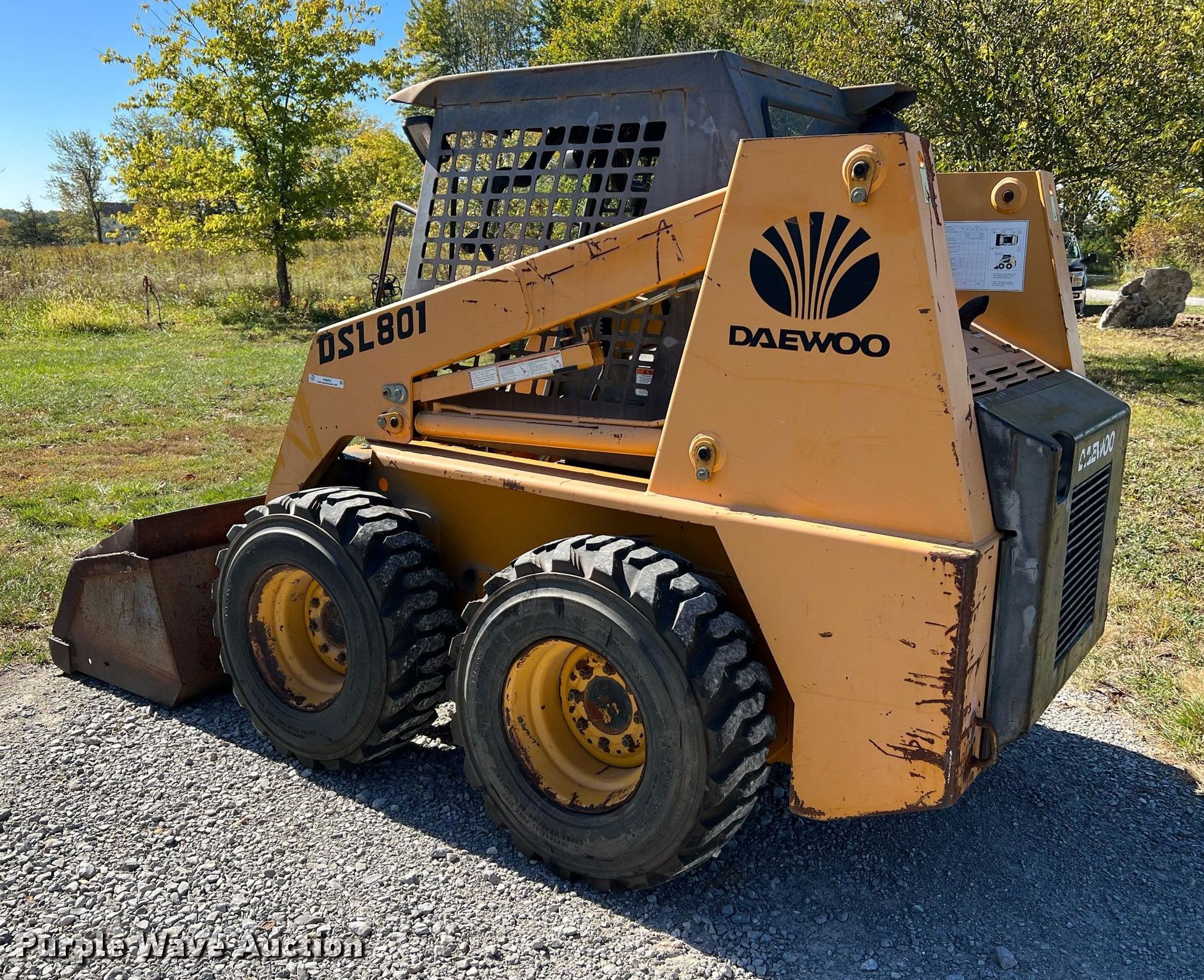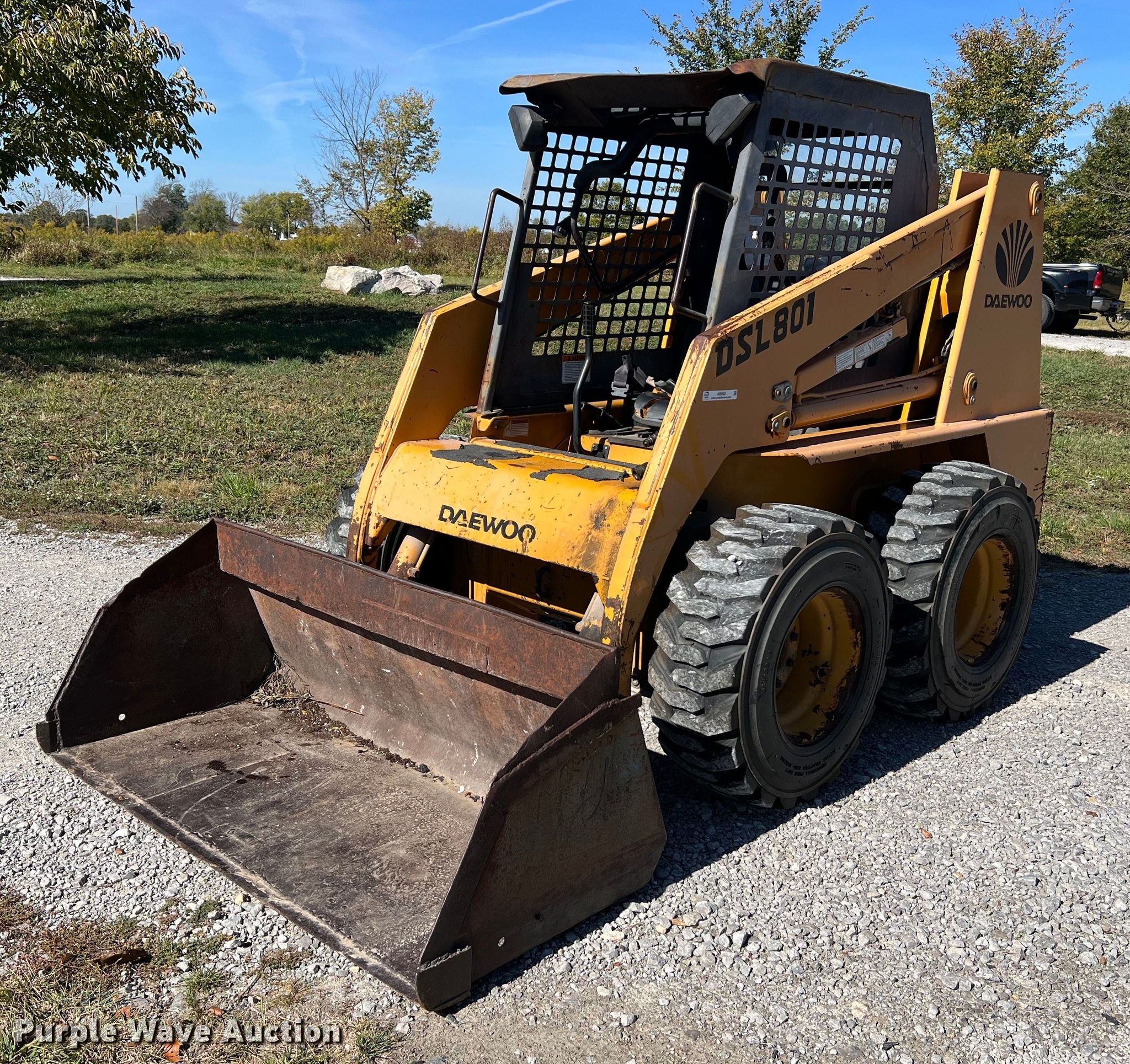 Purple Wave is selling a used Skid Steer Loader in Missouri. This item is a 1998 Daewoo DSL801 skid steer loader with the following: Hours: 2,773 on meter, Serial: AB00954