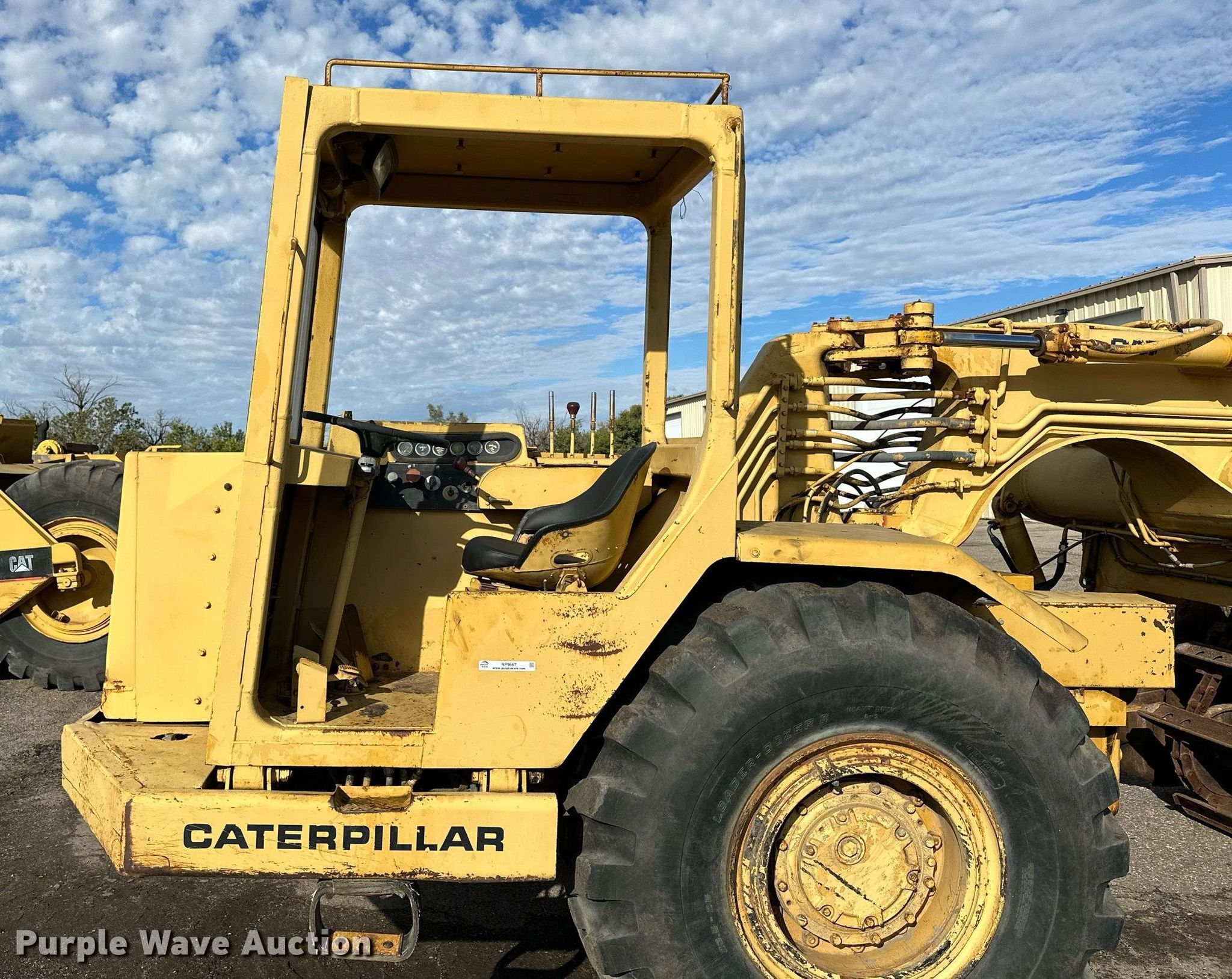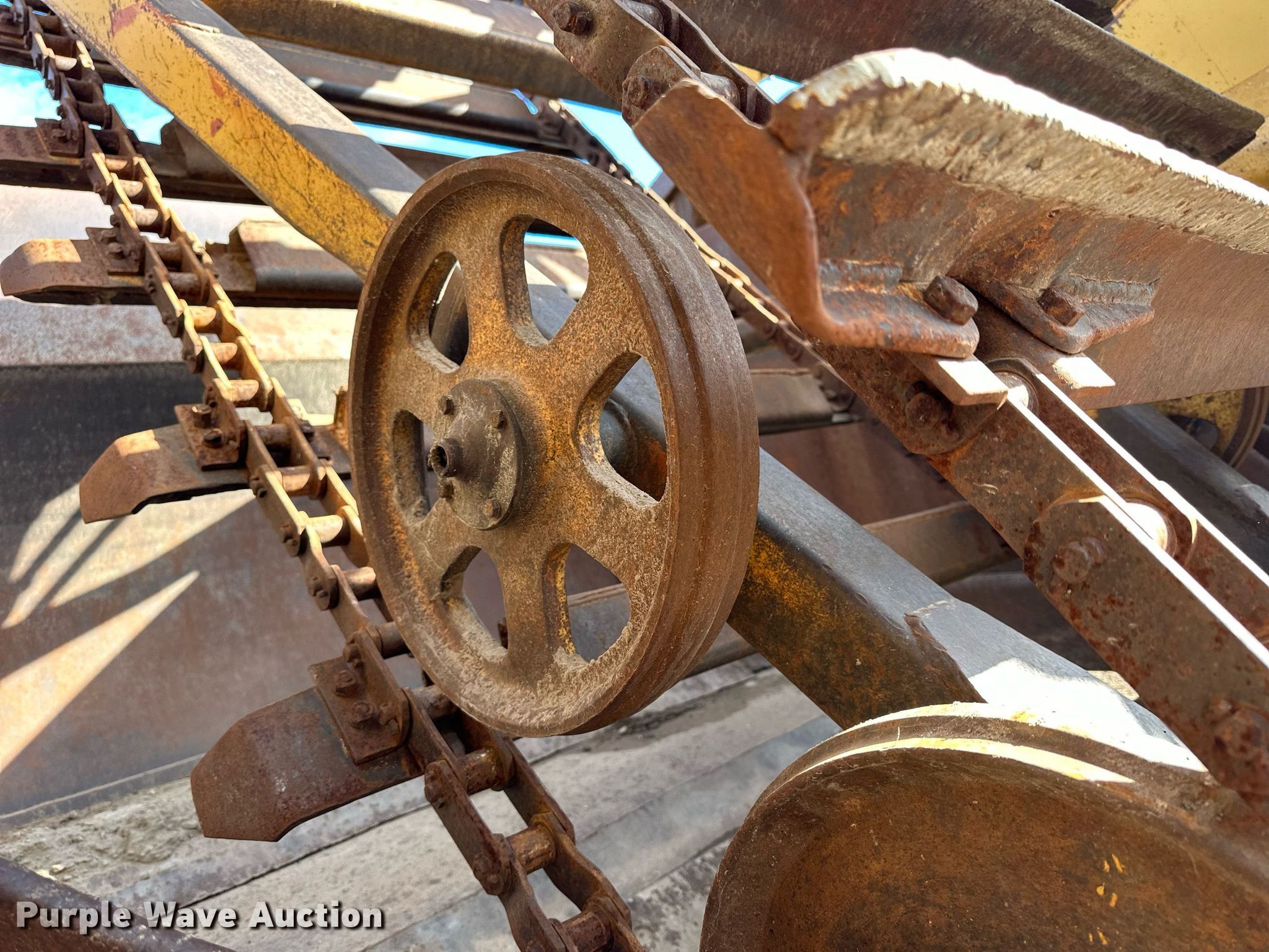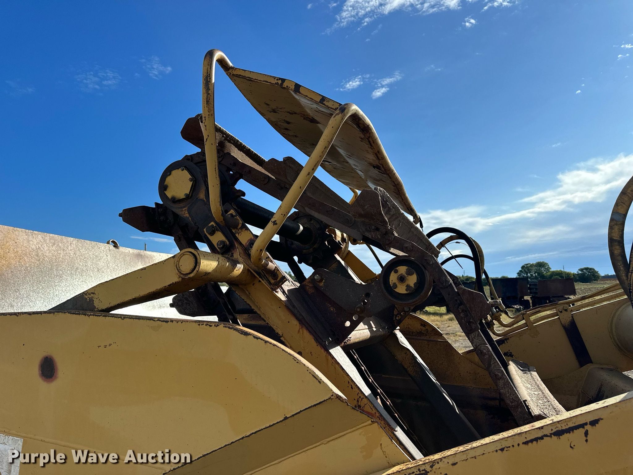 1978 Caterpillar 613B elevating scraper. Hours: 7,728 on meter, Serial: 38W5064. Engine Caterpillar 3208, Cylinders: 8, Fuel type: Diesel. Transmission Powershift, 4F - 1R. Chassis Brakes: Air. Operators station OROPS. Features Reversible cutting edge, Elevator reverse, Hydraulic lift, Scraper controls: Lever controls No. of controls: 4, Rear push block. Tires Size: 23.5-25. Venture Corp. 214 U.S. 281. Great Bend, KS 67530