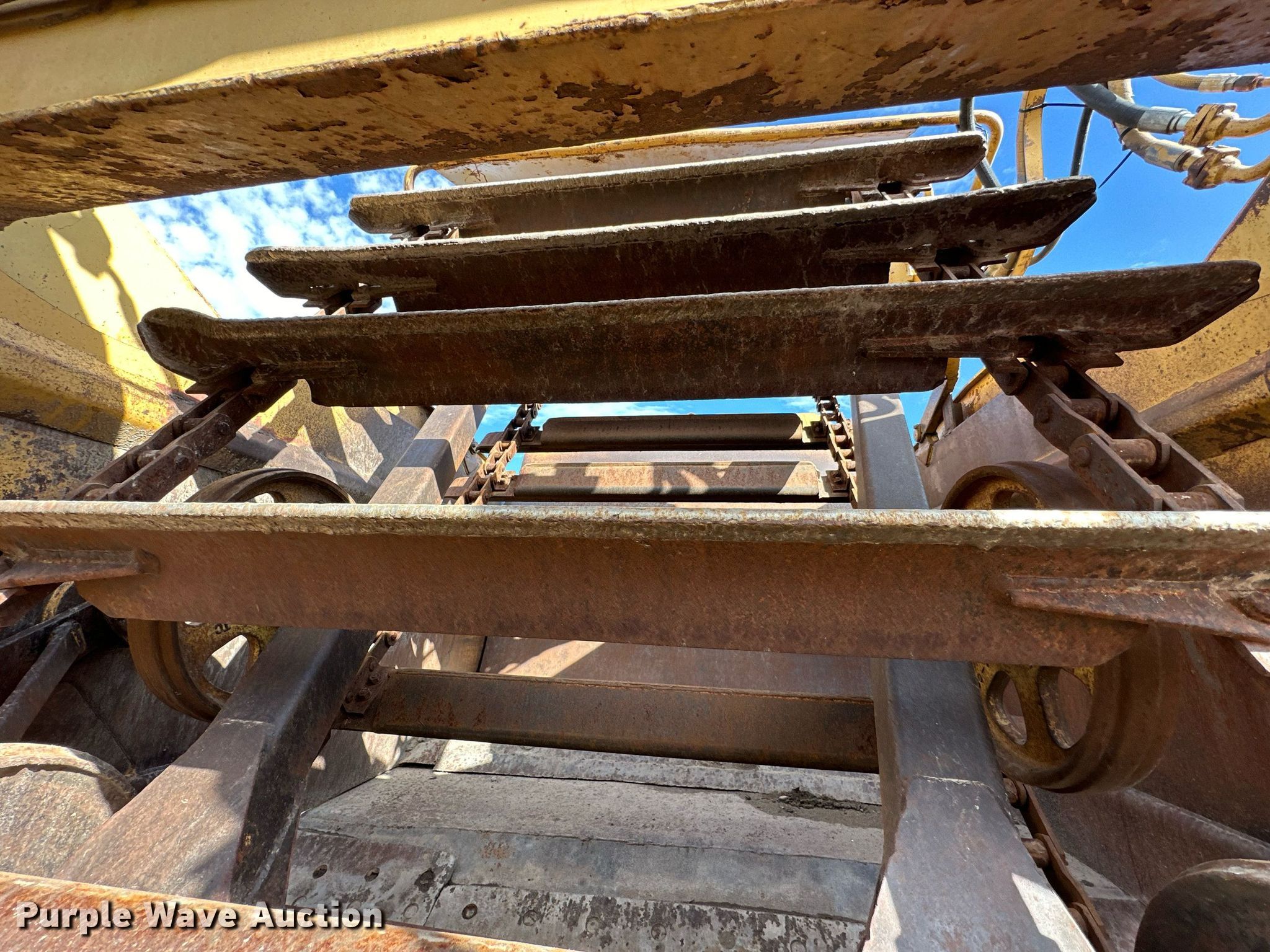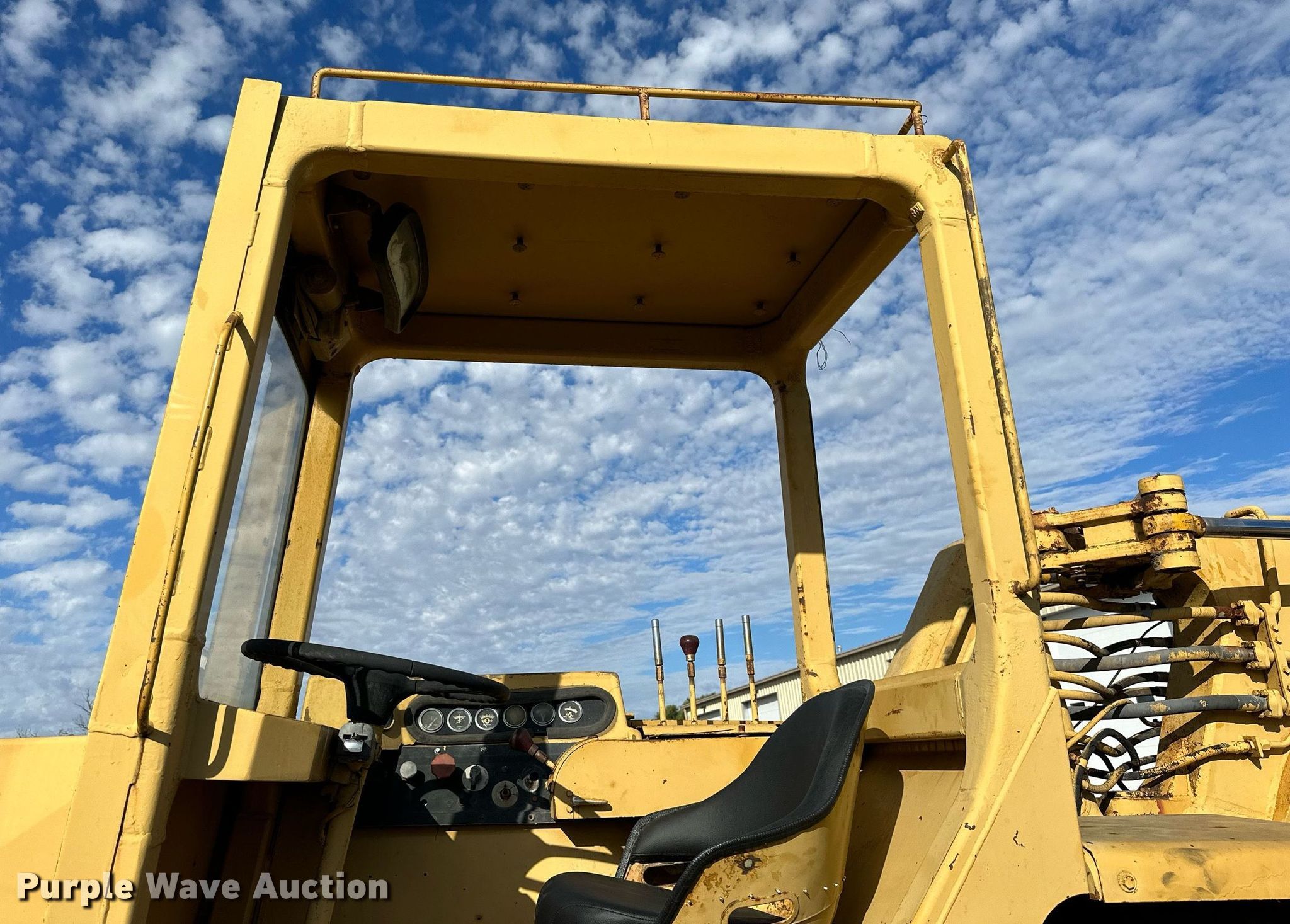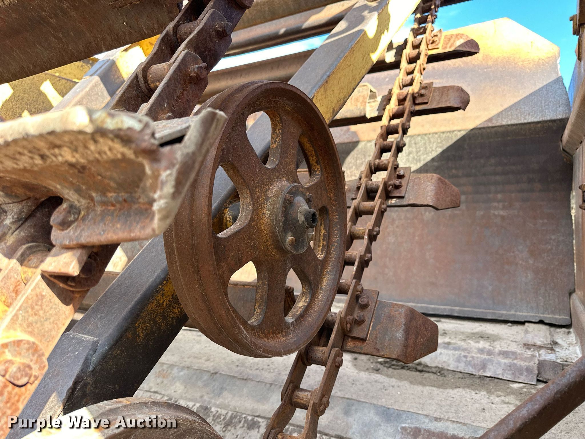1978 Caterpillar 613B elevating scraper. Hours: 7,728 on meter, Serial: 38W5064. Engine Caterpillar 3208, Cylinders: 8, Fuel type: Diesel. Transmission Powershift, 4F - 1R. Chassis Brakes: Air. Operators station OROPS. Features Reversible cutting edge, Elevator reverse, Hydraulic lift, Scraper controls: Lever controls No. of controls: 4, Rear push block. Tires Size: 23.5-25. Venture Corp. 214 U.S. 281. Great Bend, KS 67530