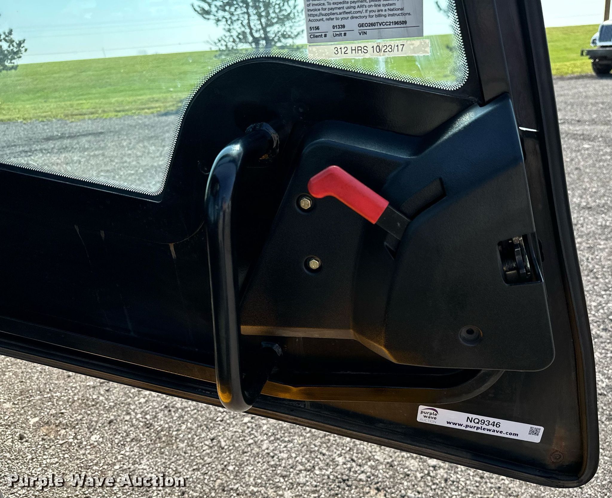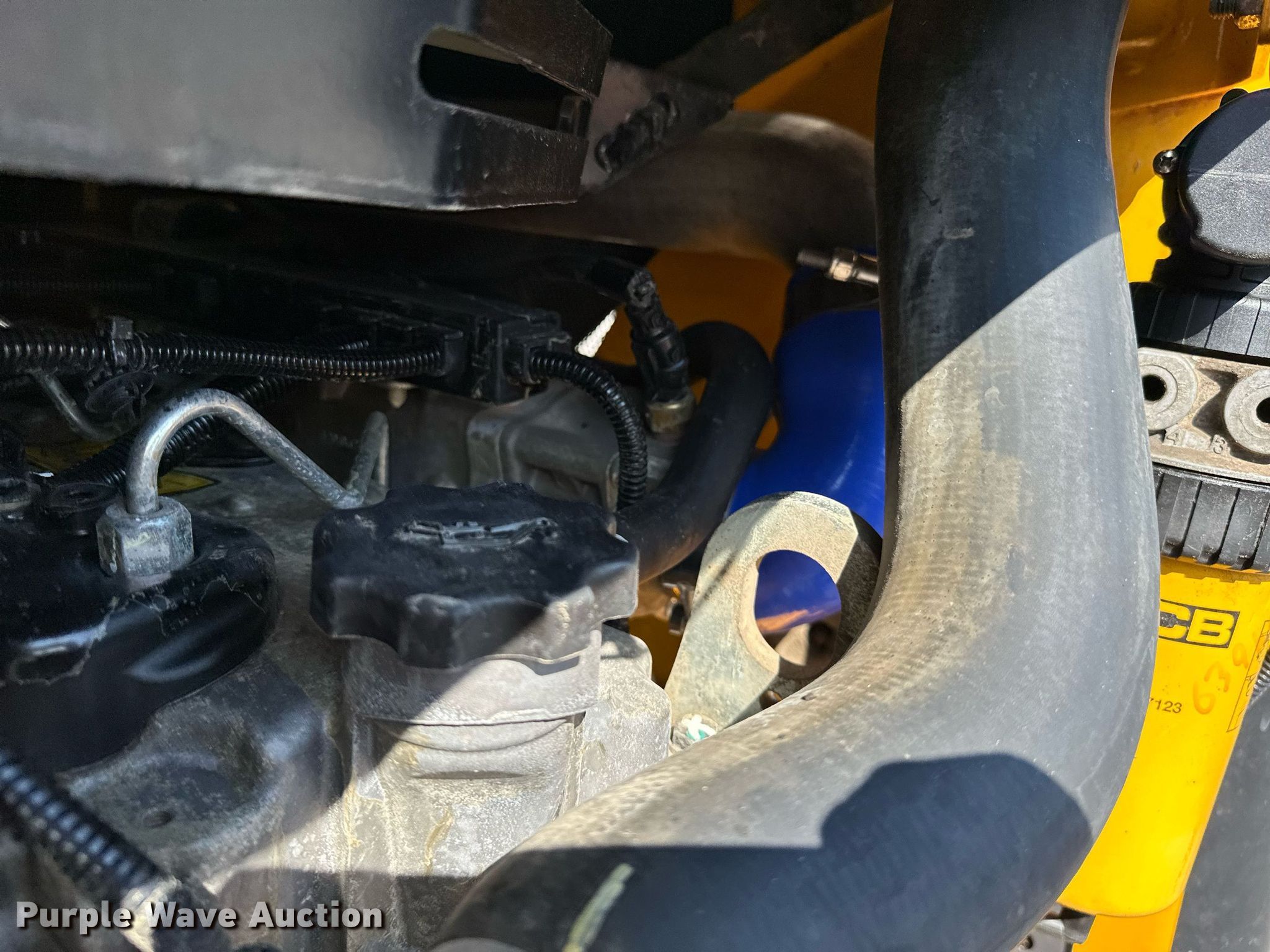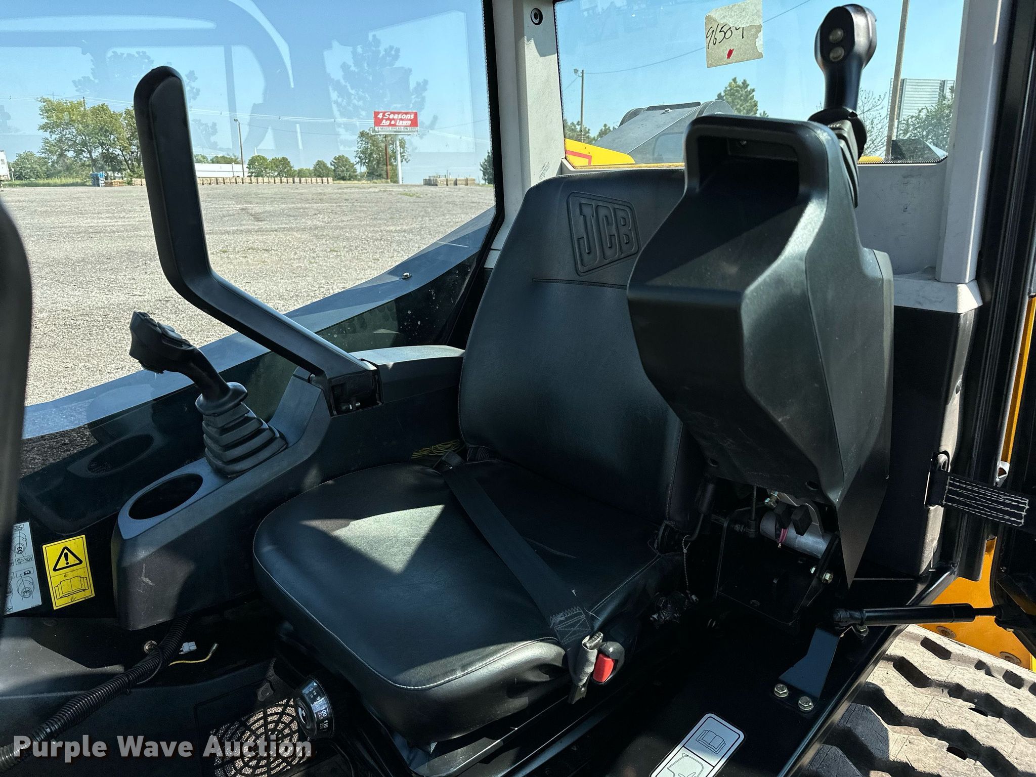 2012 JCB 260T Eco tracked skid steer loader. Hours: 498 on meter, Serial: GE0260TVCC2196509. Engine Serial: SL320/40635U2791313, Cylinders: 4, Fuel type: Diesel. Transmission Hydrostatic, Two speed travel. Operators station EROPS, AC, Heat, Bucket control: Hand, Pattern changer. Features Auxiliary hydraulics, Auxiliary electrical outlet, Quick coupler: Manual. Tracks Width: 17". 15107 North 137th East Avenue. Collinsville, OK 74021