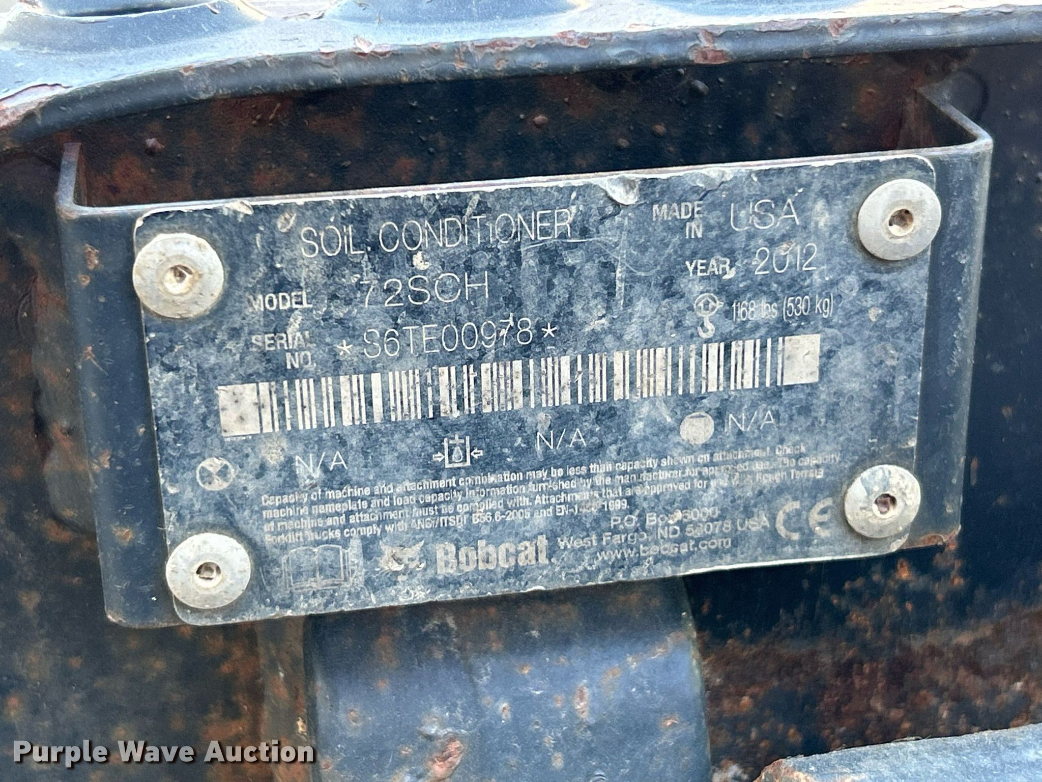 Purple Wave is selling a used Skid Steer Attach. in Illinois. This item is a 2012 Bobcat 72SCH skid steer soil conditioner with the following: Serial: S6TE00978, Width: 72"