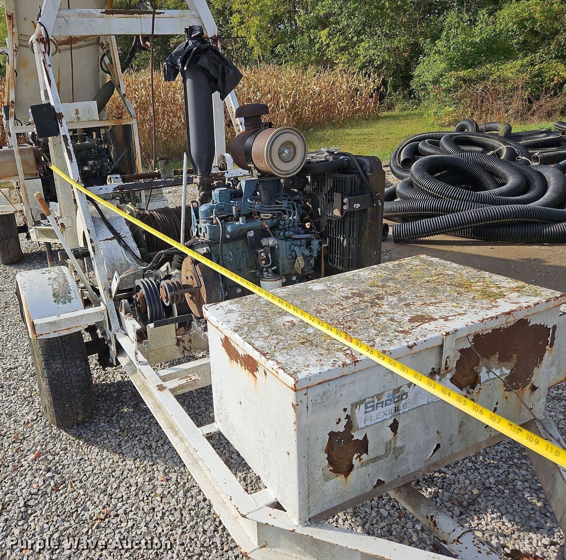 (2) Sreco Flexible pull-in bucket machines. 2007 Sreco Flexible 39HP-PI. VIN: 4H5LB11187L072232. Dimensions Overall: 8' 7" L x 3' W x 7" W. Engine Kubota, Cylinders: 4. Chassis Hitch: Pintle, Ball hitch: 2", Landing gear: Single, Suspension: Spring. Tires Steel wheels, Size: 225/75R15. 2002 SRECO Flexible 39HP-HTL/D VIN: 4H5LB08102L022191. Dimensions Overall: 8' 7" L x 3' W x 7" W. Engine Kubota V1903E , Displacement: 1.9L , Cylinders: 4, Fuel type: Diesel. Chassis Hitch: Pintle, Ball hitch: 2", Landing gear: Single, Suspension: Spring. Tires Steel wheels, Size: 225/75/R15. Notes Non-operational unit. This is worksite support equipment and will not come with a title. Transfer of ownership documentation will be a bill of sale. Midwest Vac Products. 7627 Richter Road. Mascoutah, IL 62258
