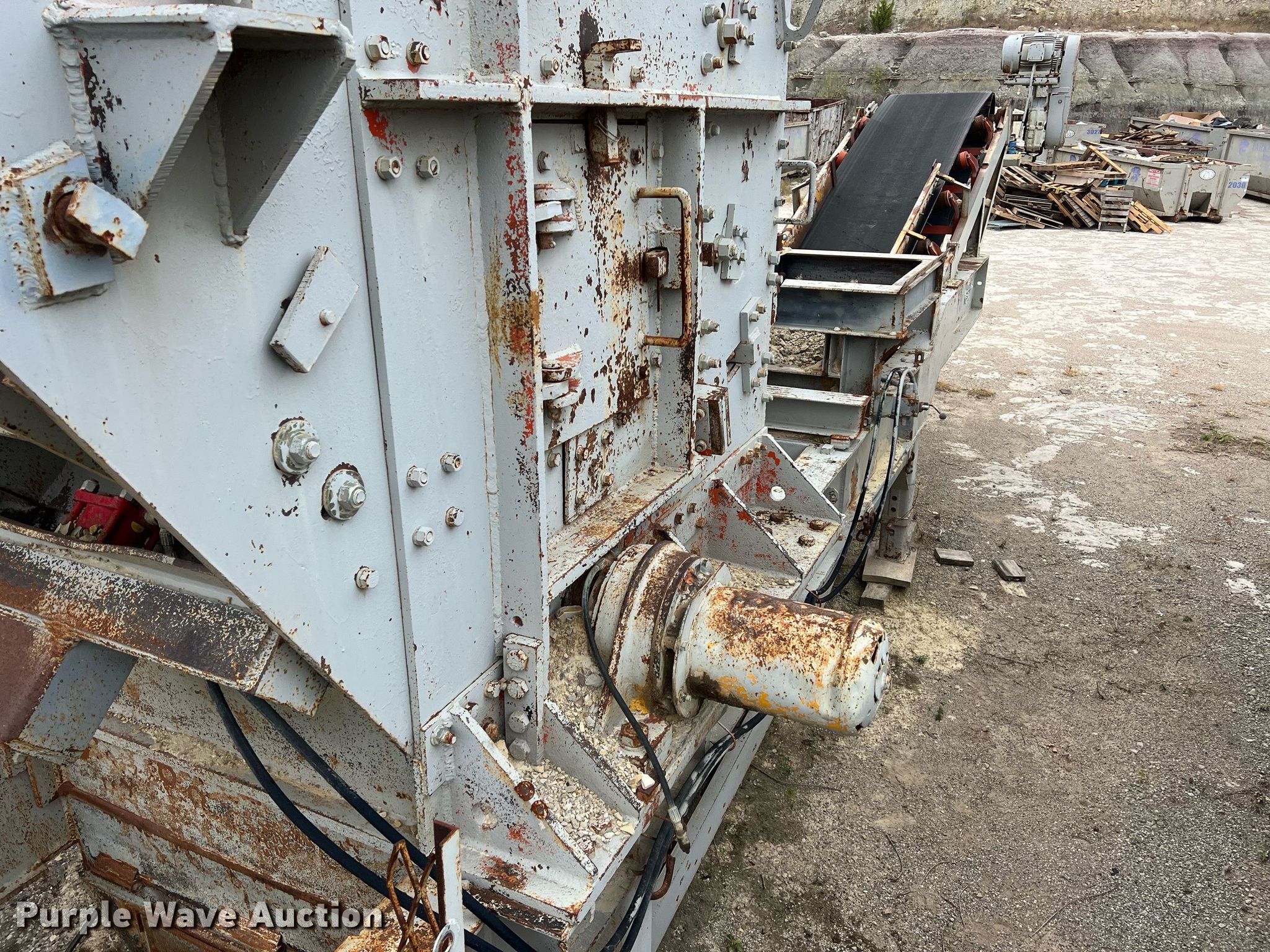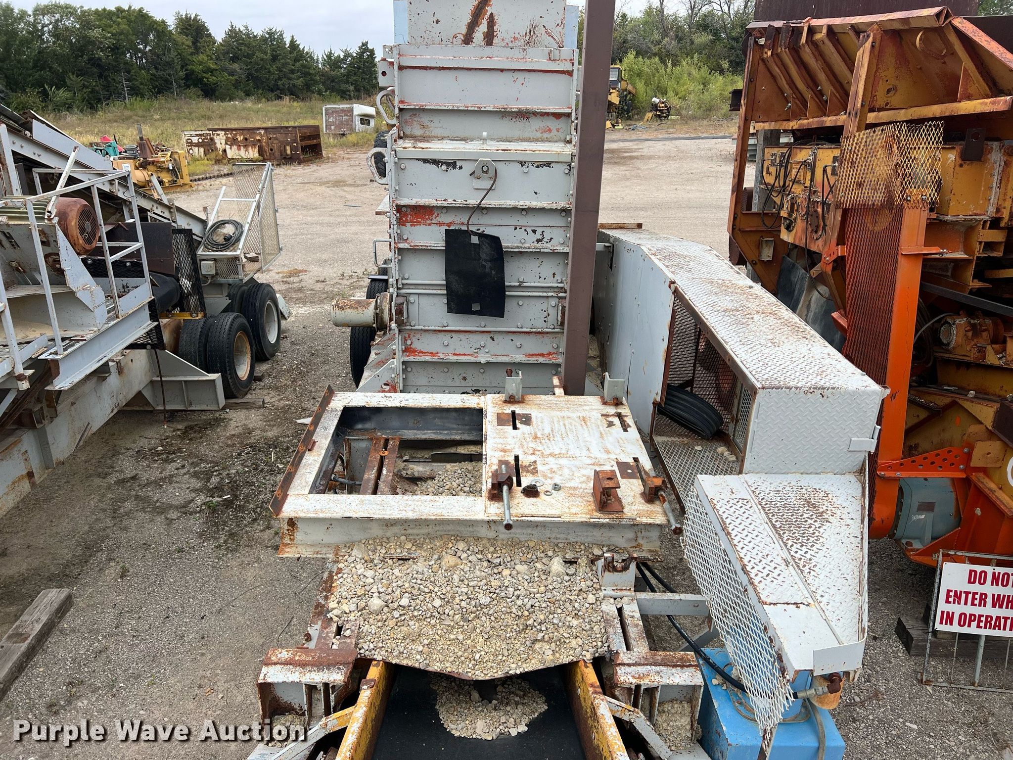 1975 Universal 4555 Impact Master crusher. Serial: 22743. Features Conveyor: 32' L x 36" W, Cross conveyor: 10' L x 24" W, Screen: 5' W x 14' L 3/4 holes. Tires Size: 10.00-20. Notes Possible parts missing, Possible flat tires. This is worksite support equipment and will not come with a title. Transfer of ownership documentation will be a bill of sale. Bayer Construction Company. 120 Deep Creek Rd. Manhattan, KS 66502