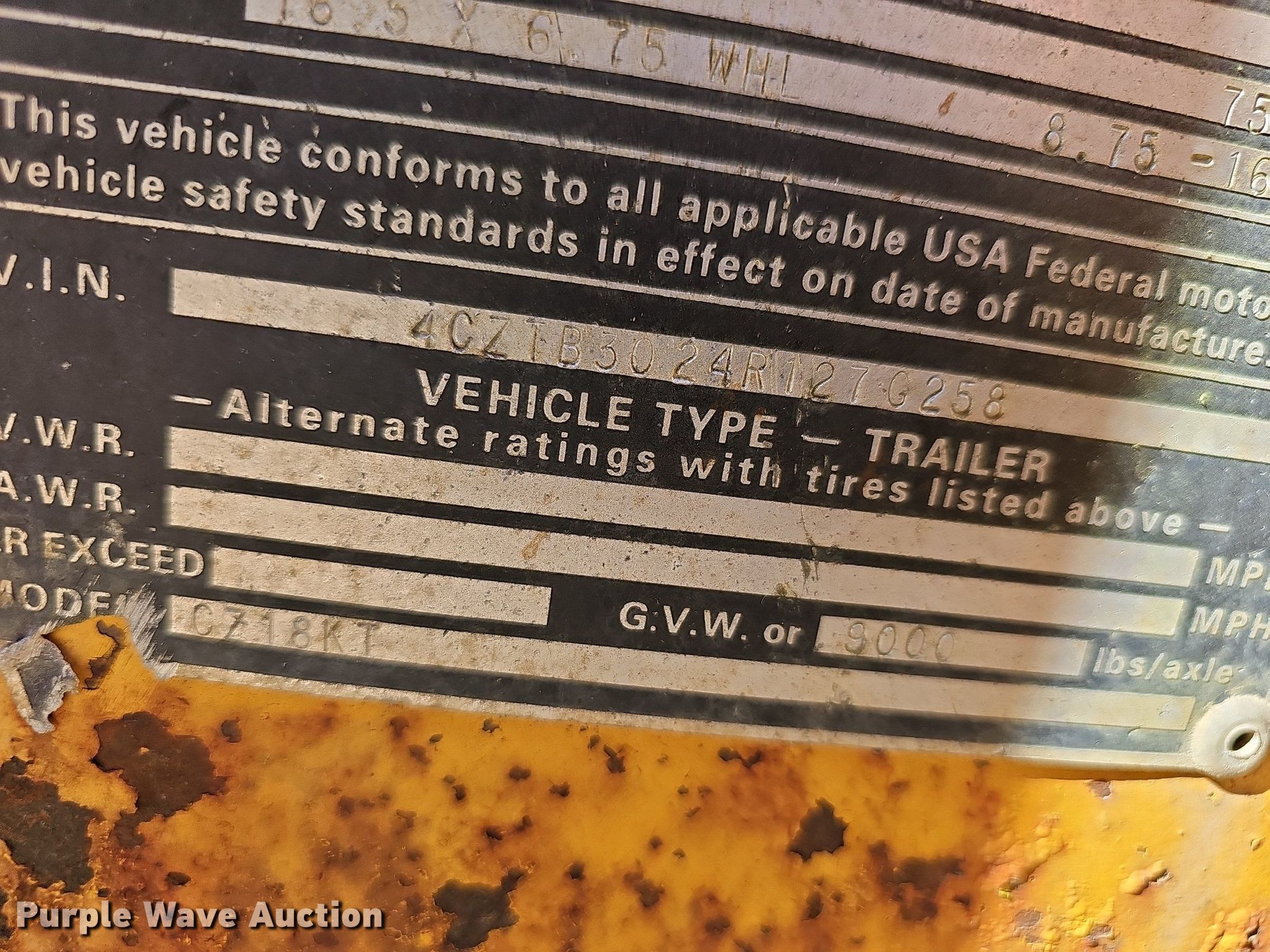 Purple Wave is selling a used Flat or Drop Deck Trailer in Missouri. This item is a 1994 CZ Engineering CZ18K flatbed trailer with the following: VIN: 4CZTB3024R127G258