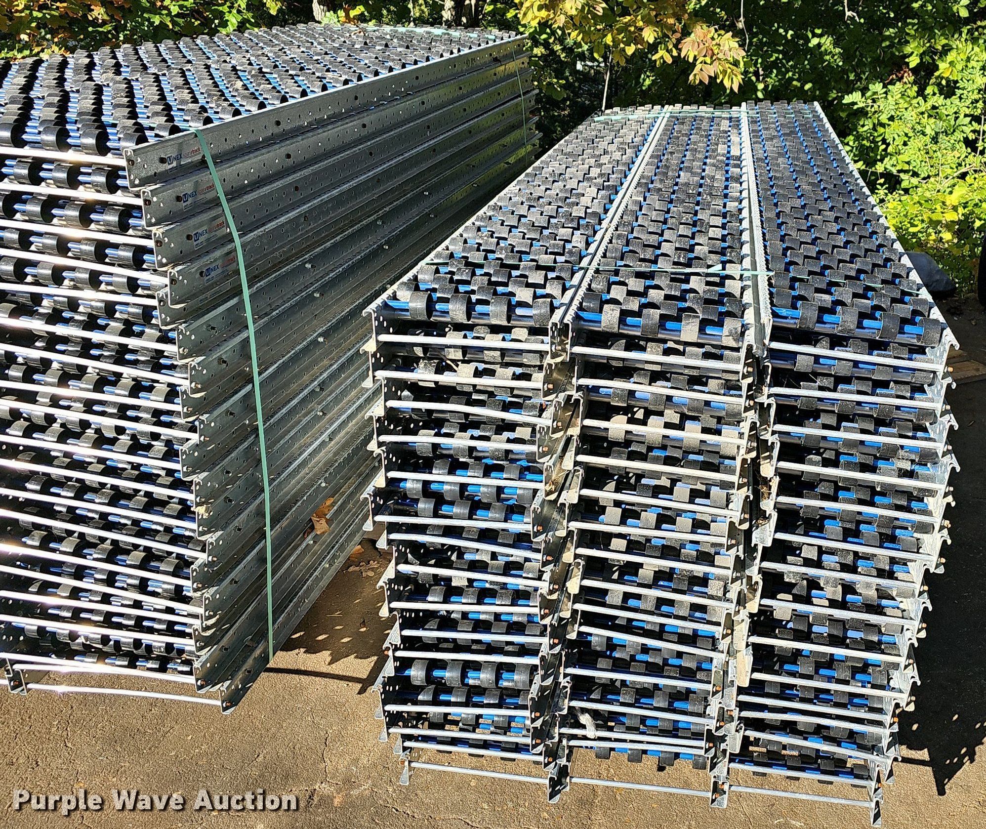 Purple Wave is selling a used Tools in Missouri. This item is a Unex Span Tracks roller conveyors with the following: (112) 8' 7" L x 17.25" W, (45) 8' 7" L x 11.5" W, Unused