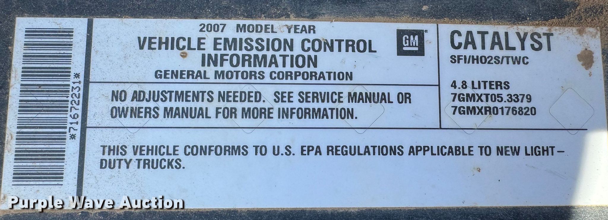 2007 Chevrolet Silverado 1500 Ext. Cab pickup truck. Miles: 154,365 on odometer, VIN: 2GCEC19C371672231. Engine Displacement: 4.8L V8 OHV, Cylinders: 8, Fuel type: Gas. Transmission Automatic. Interior AC, Heat, Cruise control. Tires Size: 245/70R17. Notes Dash warning indicator: TPMS. Texas title. Title distribution may be delayed up to 14 days from verification of funds. Swisher County, TX. 119 S Maxwell Ave. Tulia, TX 79088