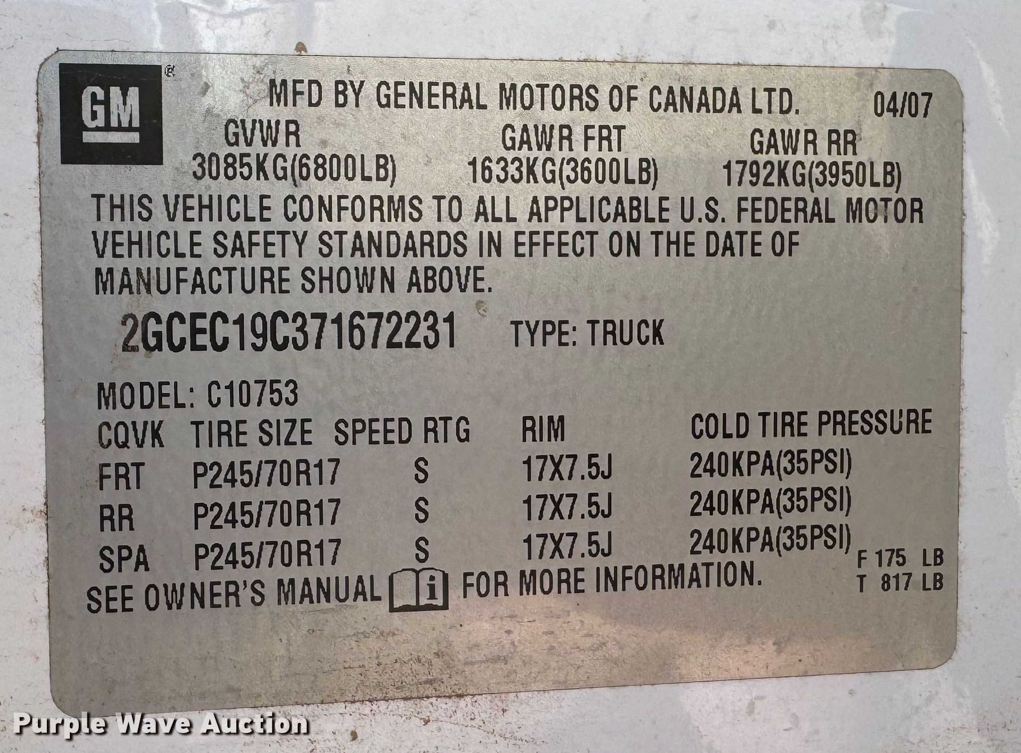 - VIN: 2GCEC19C371672231