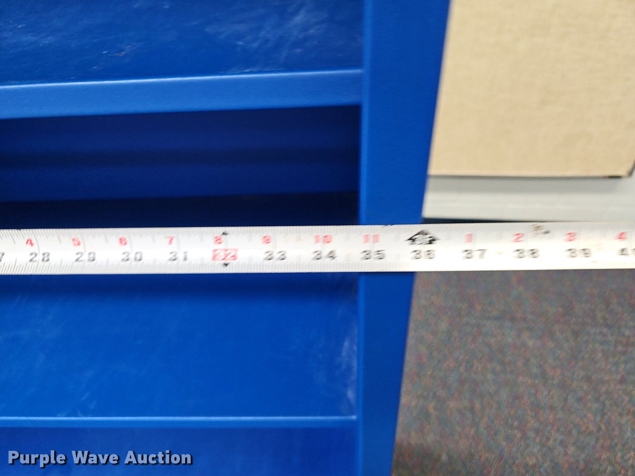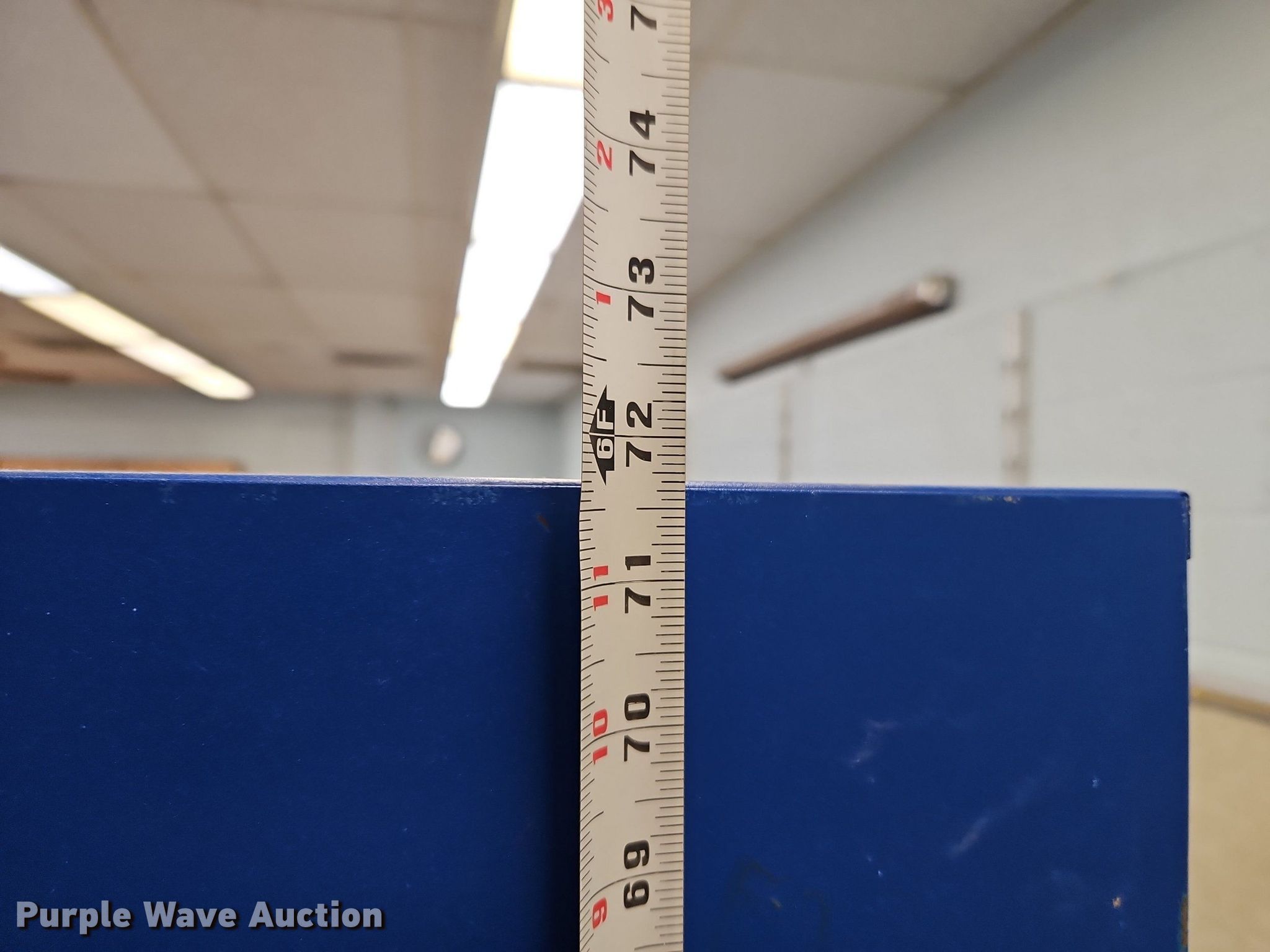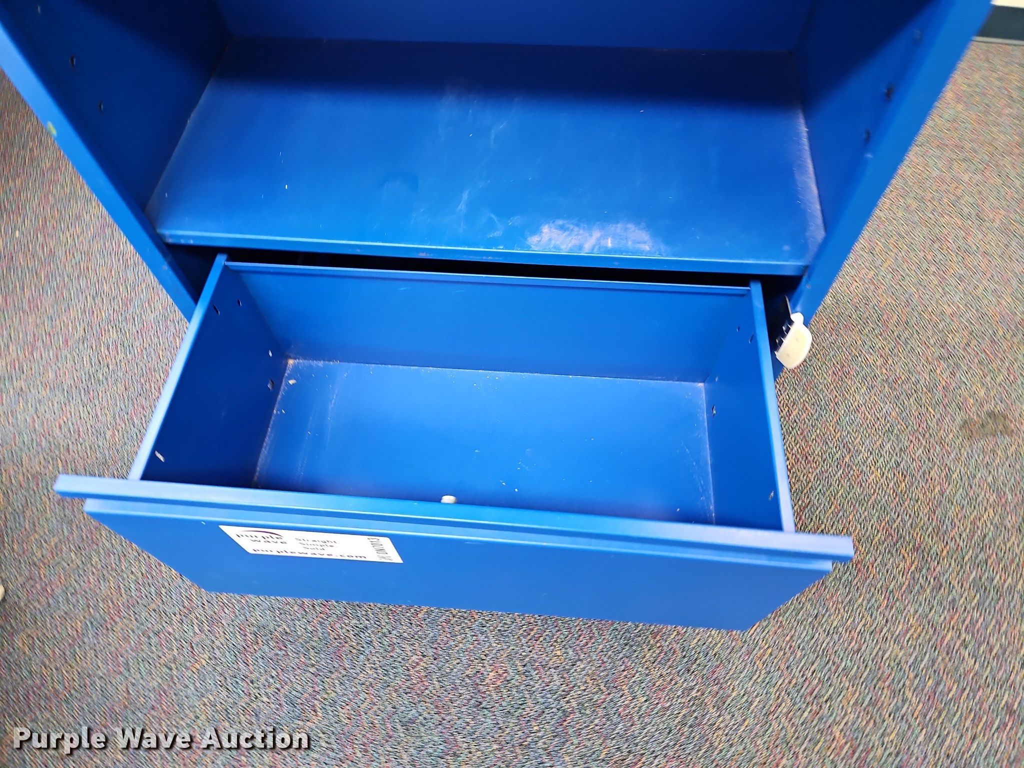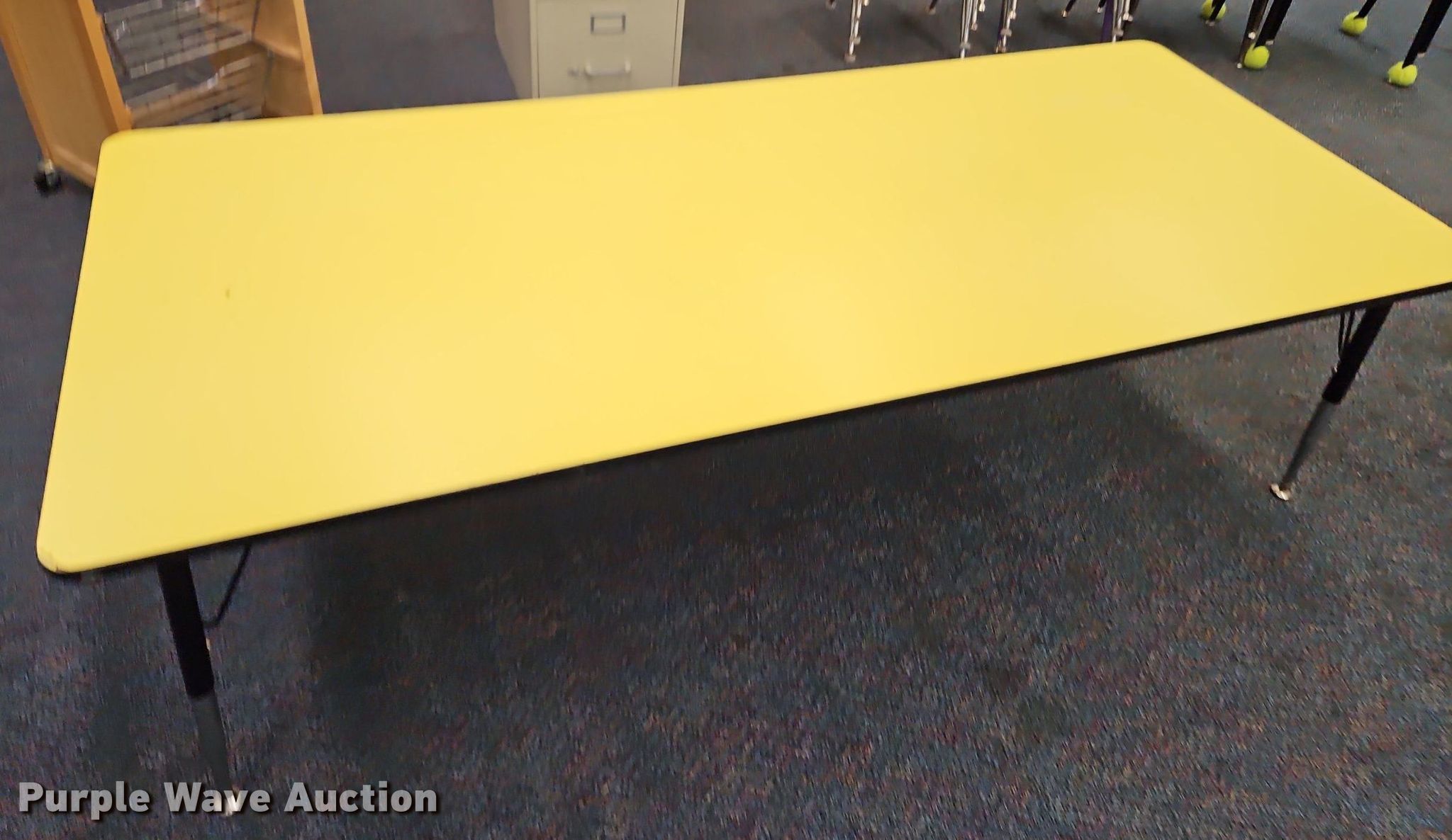 Purple Wave is selling a used Furniture in Kansas. This item is a Furniture with the following: (5) tables, (14) chairs, Metal cabinet, Metal filing cabinet