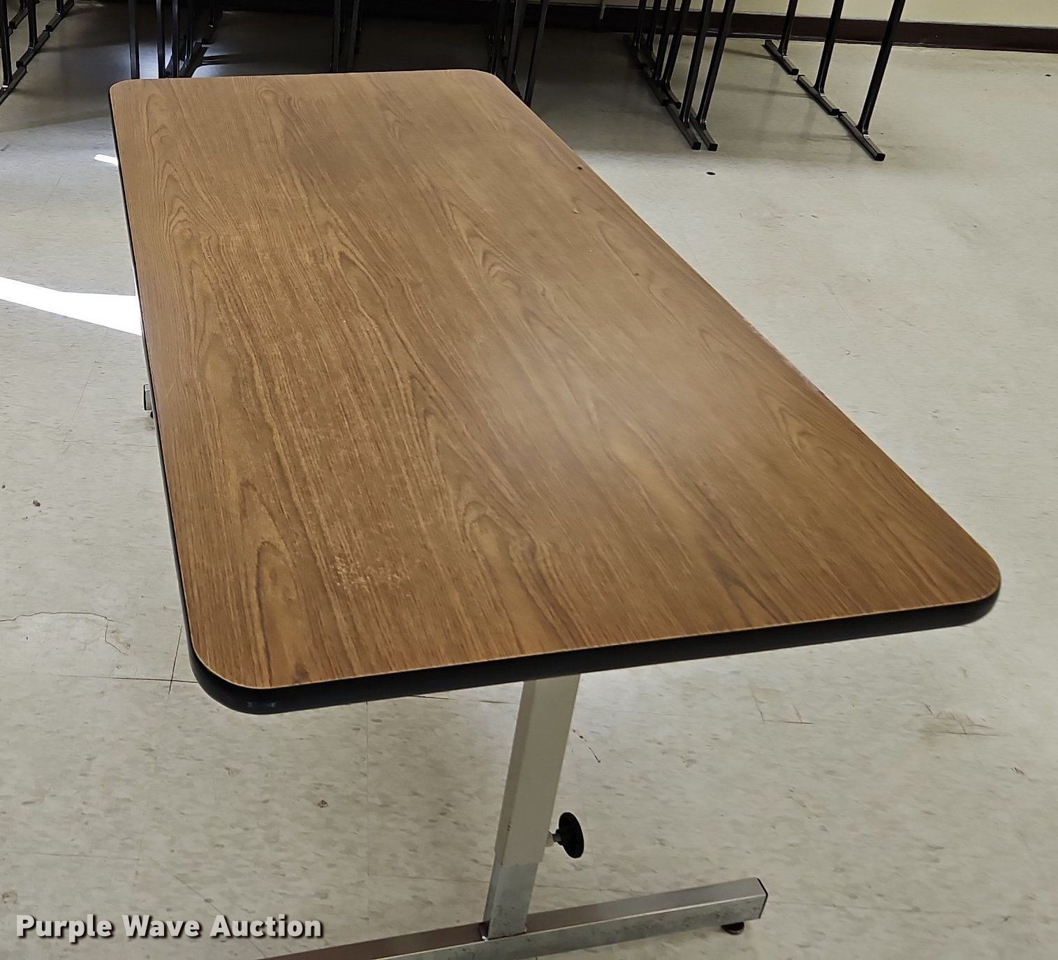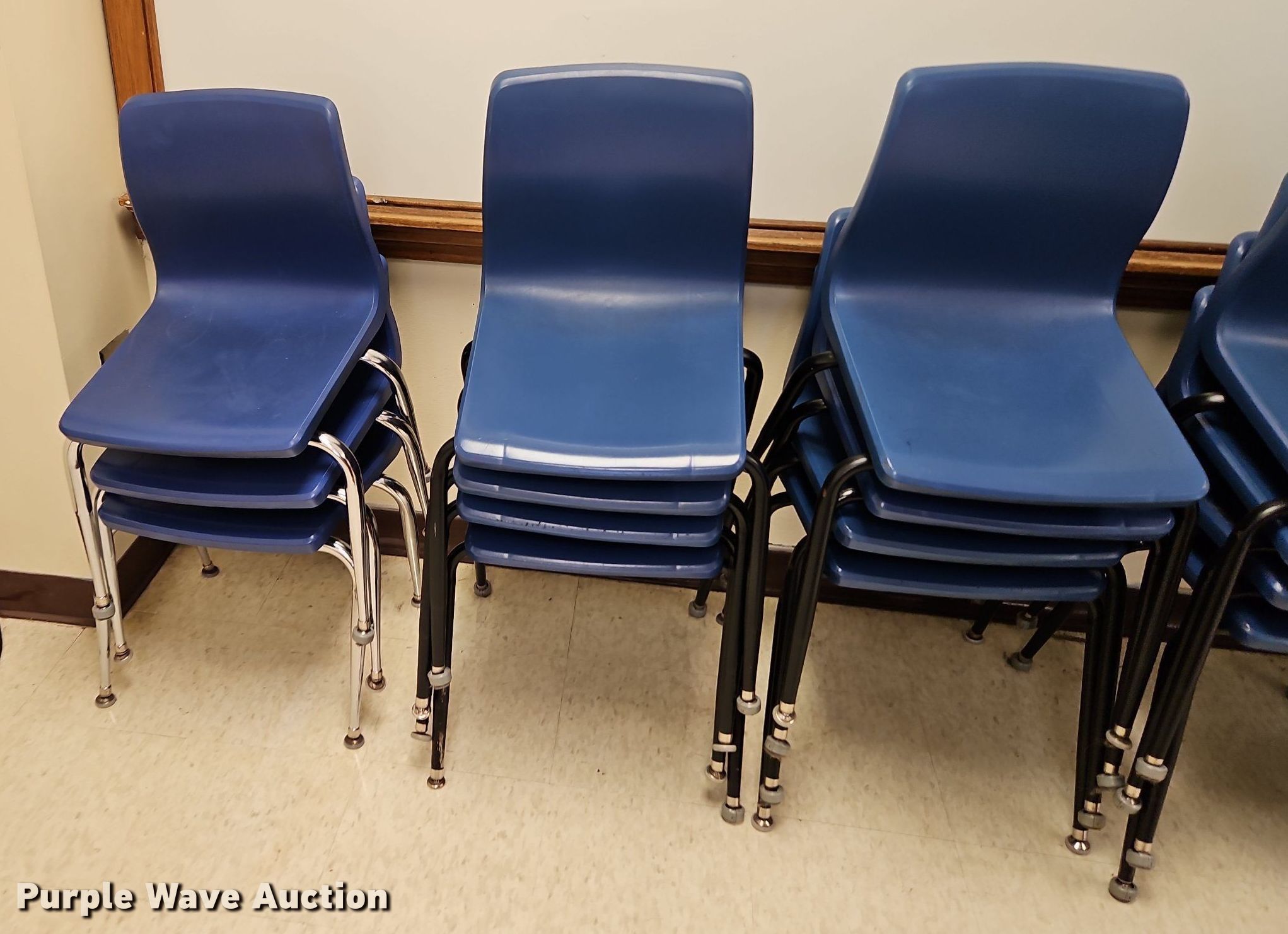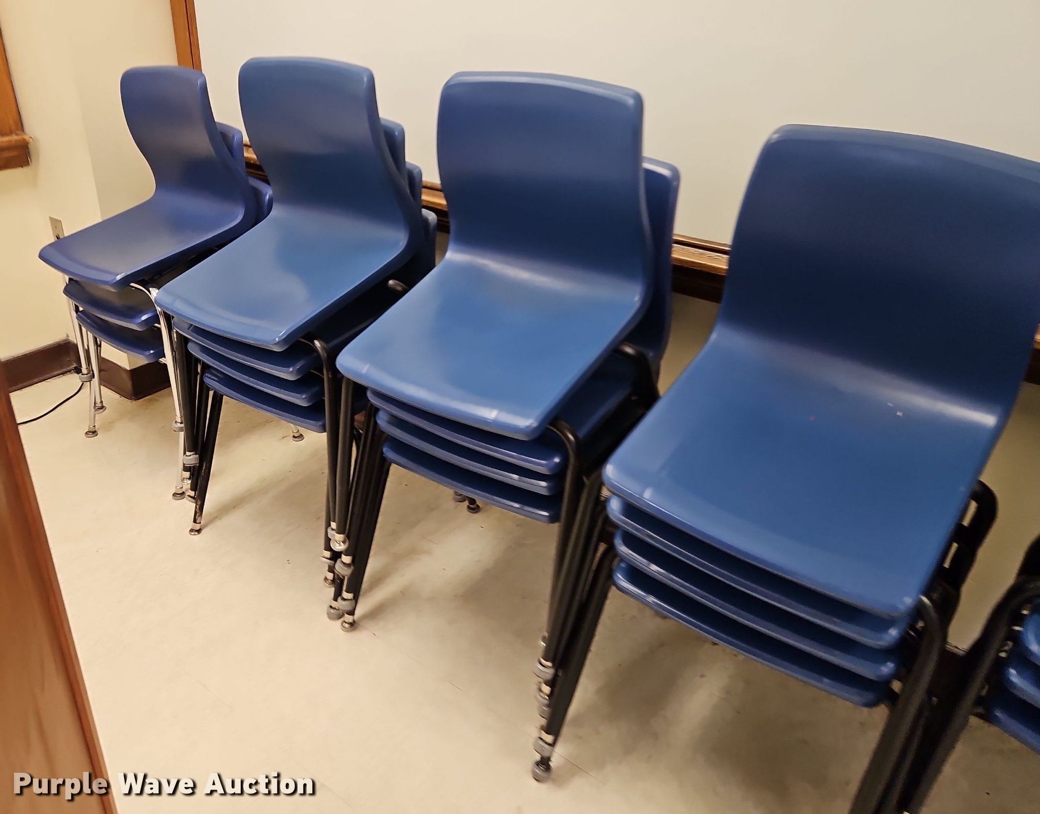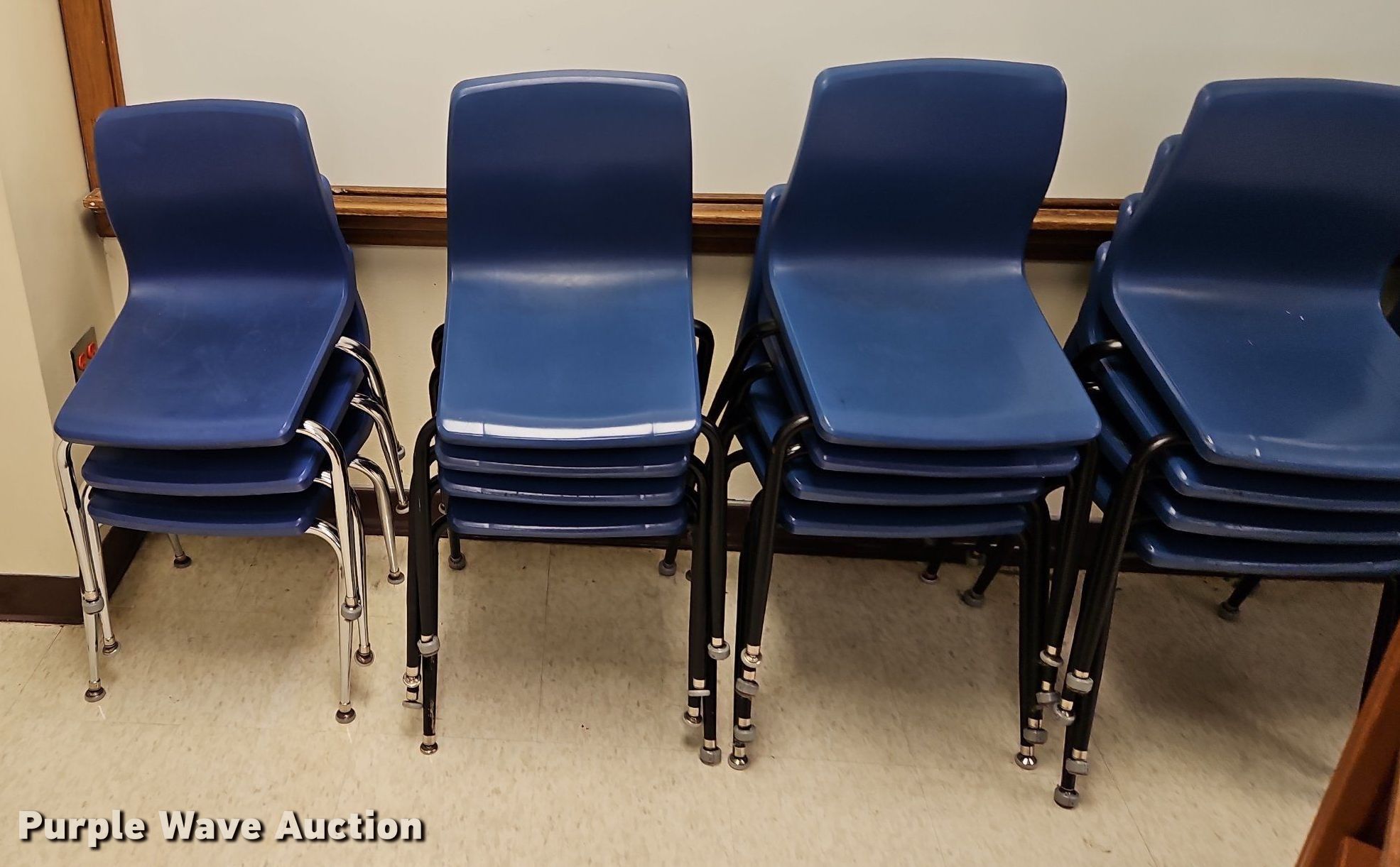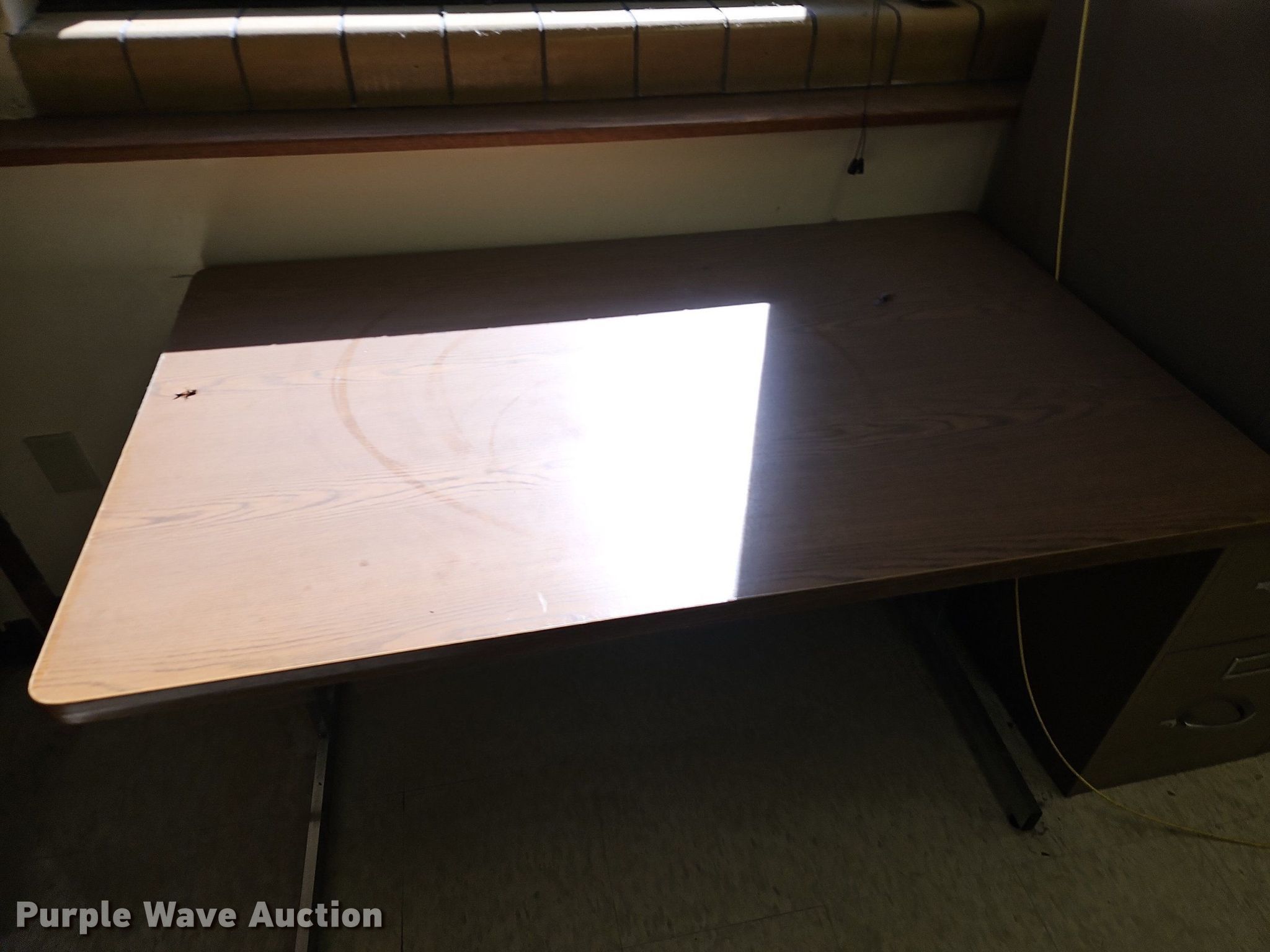 Purple Wave is selling a used Furniture in Kansas. This item is a Furniture with the following: (18) student desks, (23) chairs, (4) tables, (2) metal filing cabinets, Lectern, Desk, Bookshelf, VCR/DVD player and more