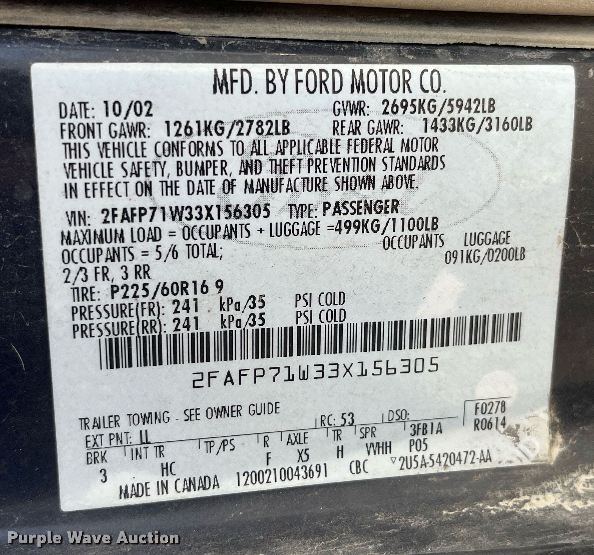 - VIN: 2FAFP71W33X156305