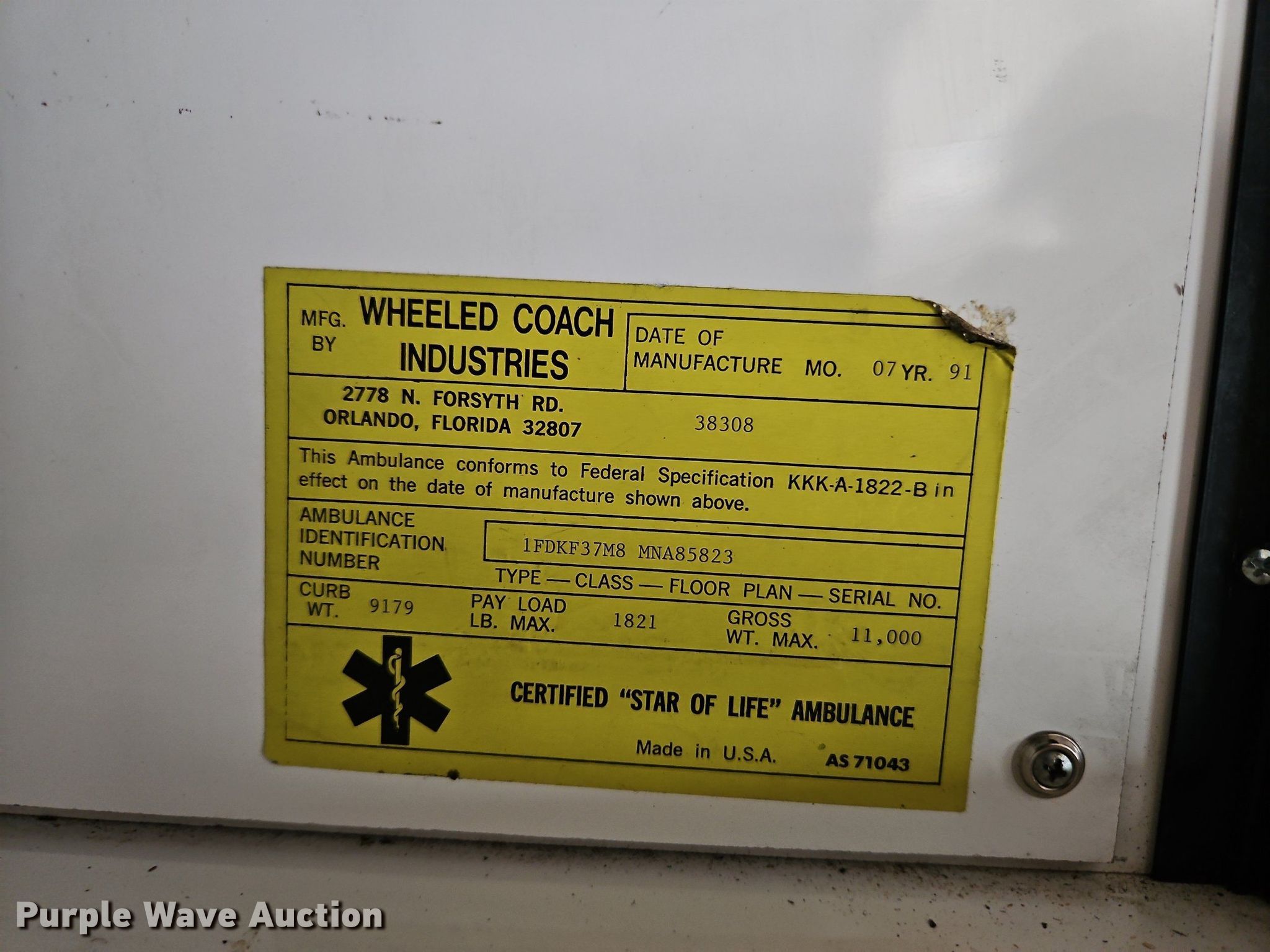 Purple Wave is selling a used Fire Truck or Emergency Vehicle in Kansas. This item is a 1991 Ford F350 XL ambulance with the following: Miles: 55,370 on odometer, VIN: 1FDKF37M8MNA85823