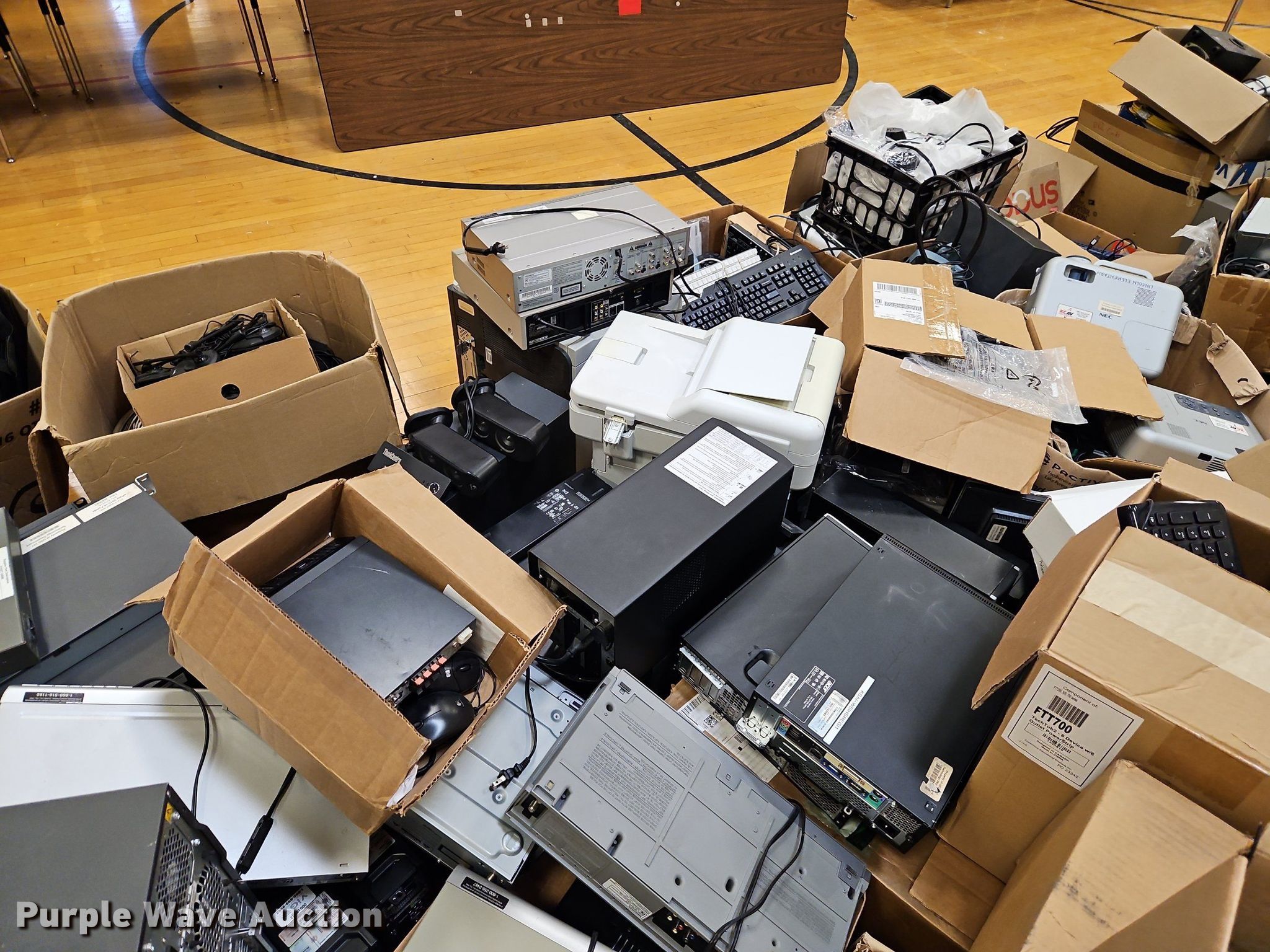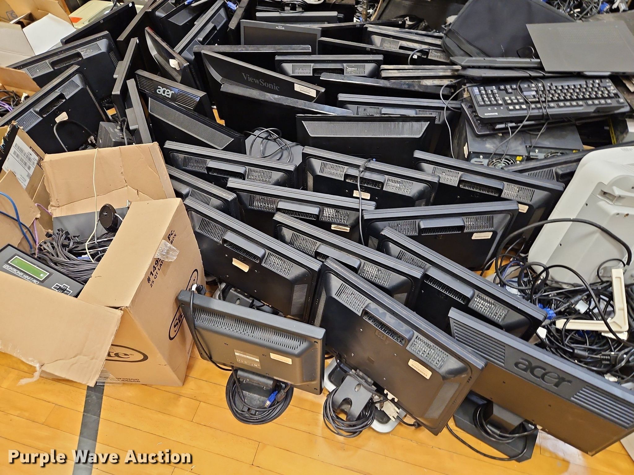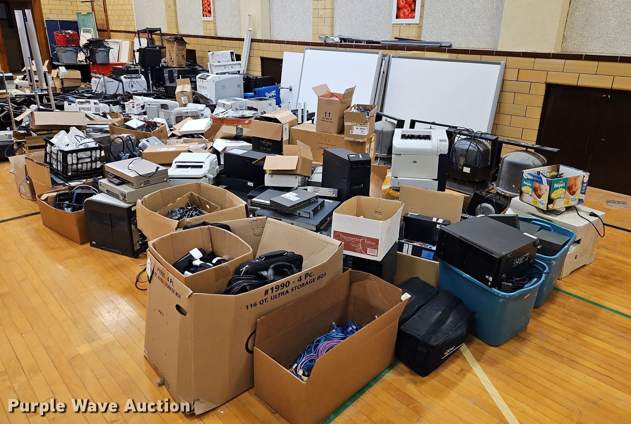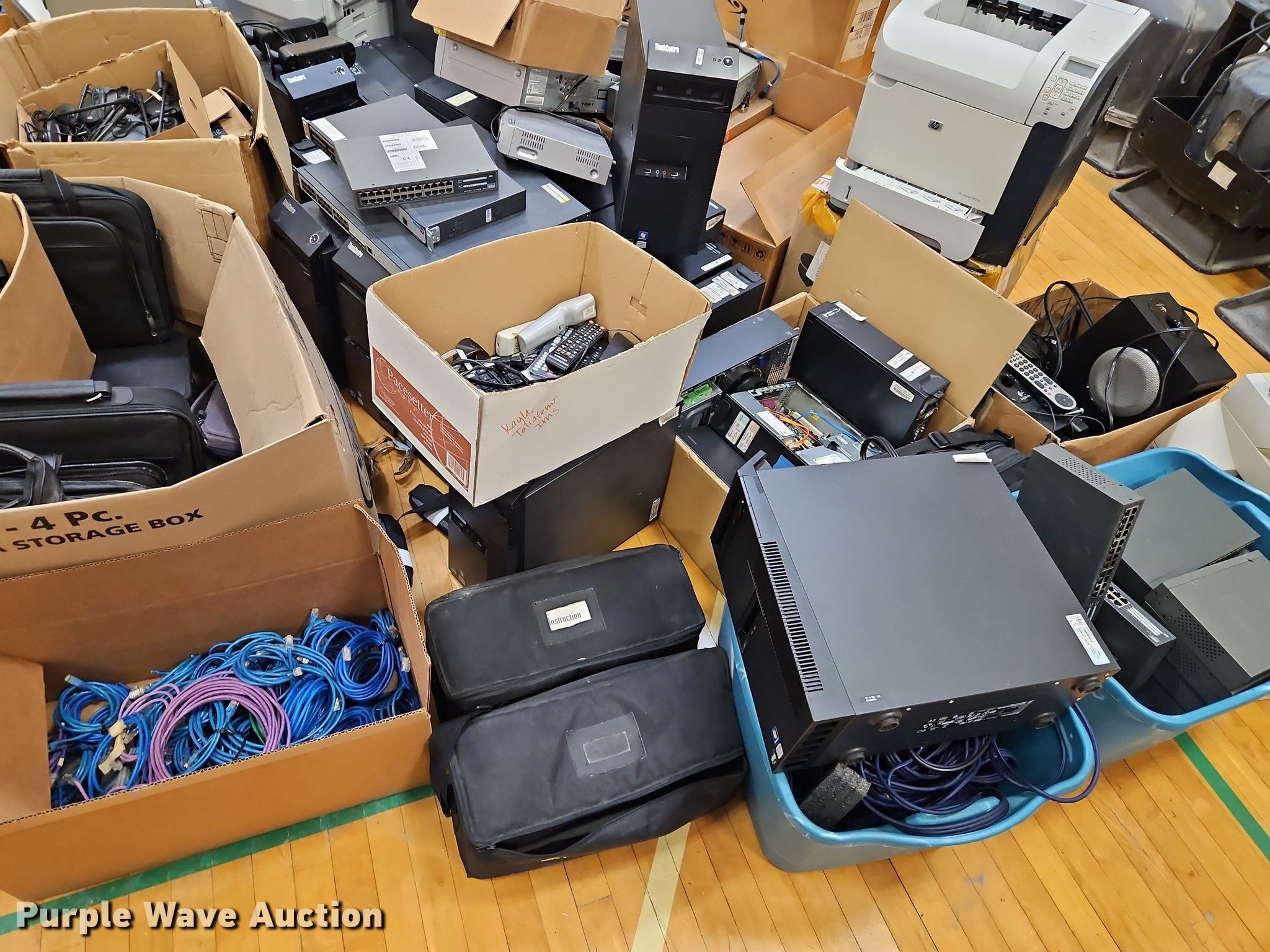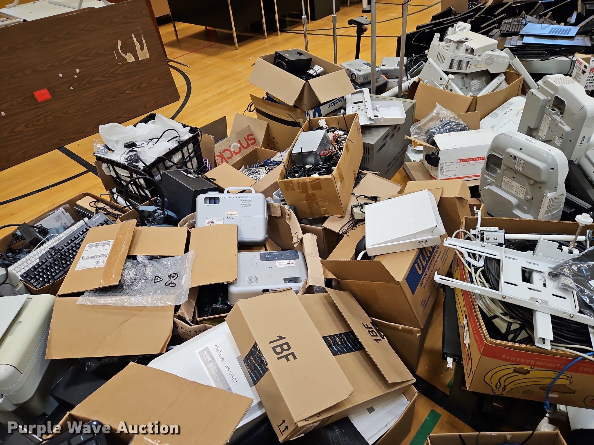Purple Wave is selling a used Electronics in Kansas. This item is a Electronics with the following: Approx. 100 computer monitors, Approx. 100 computer towers, Approx. 20 printers, Approx. 20 projectors, (5) smart boards