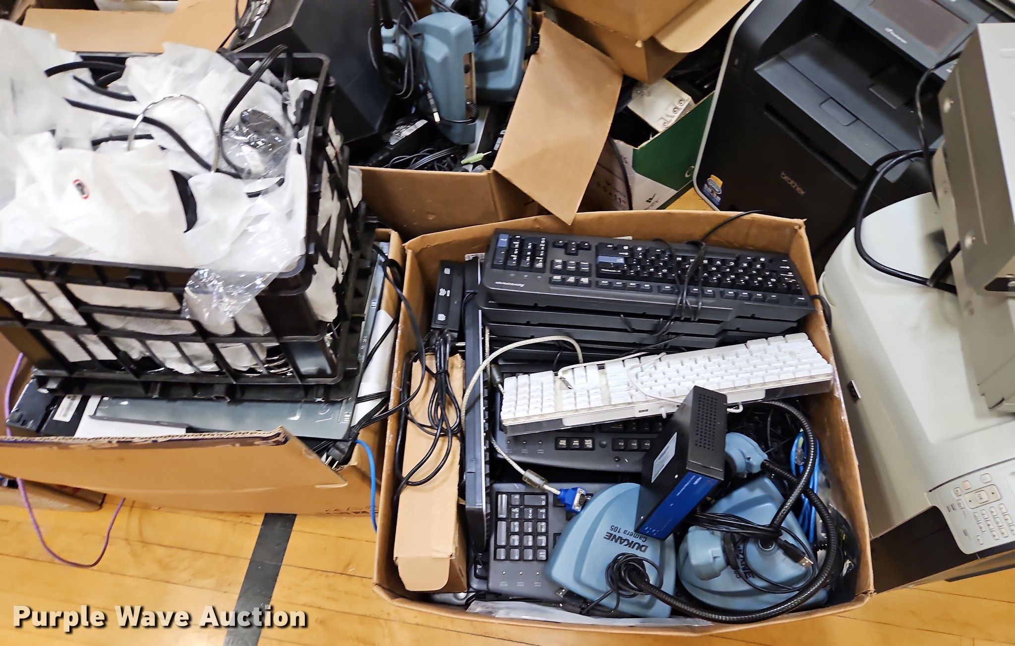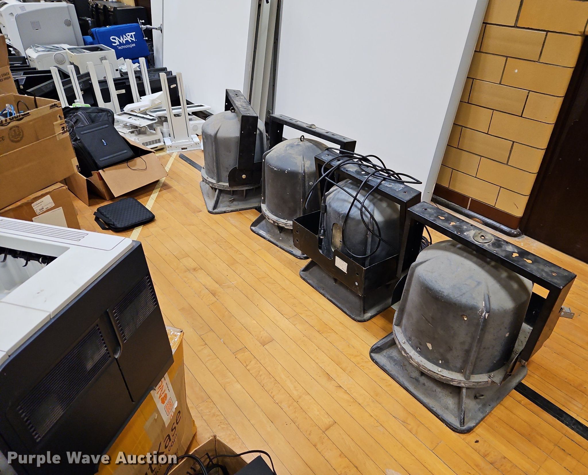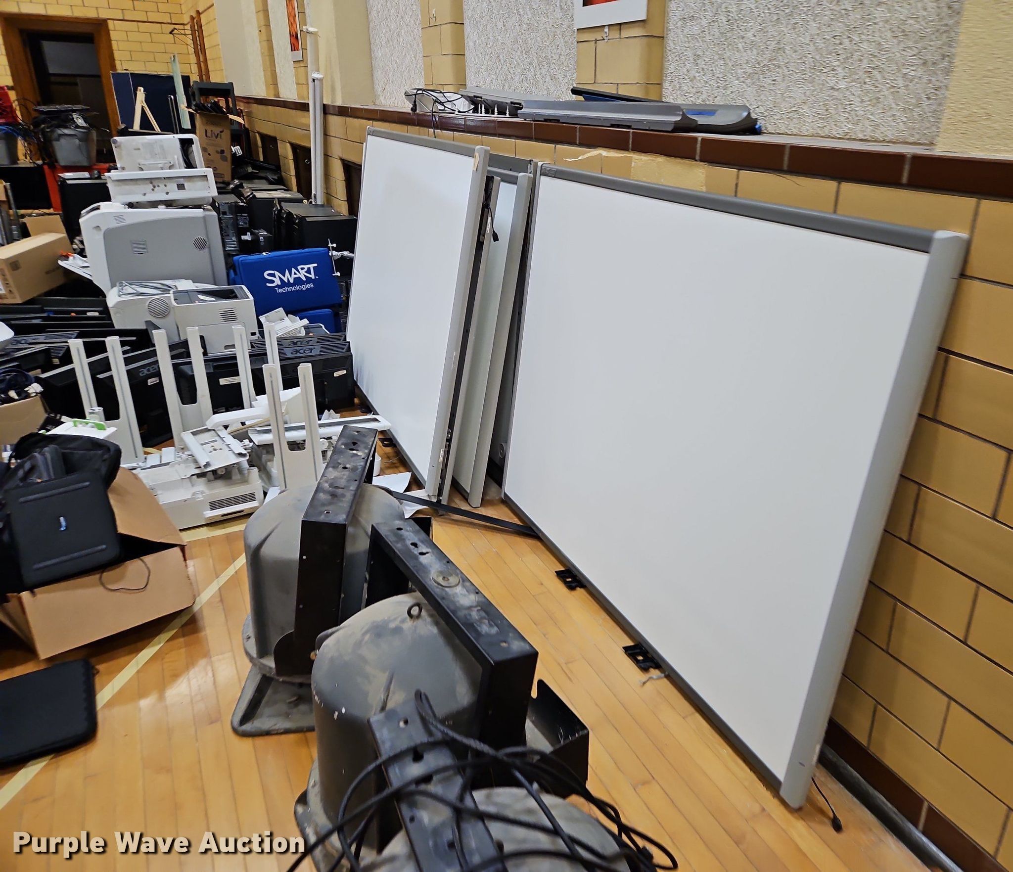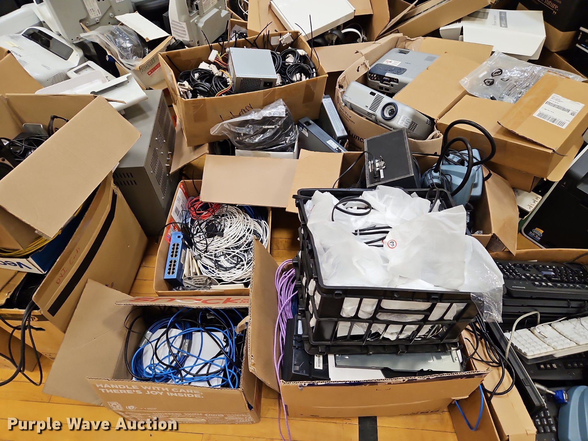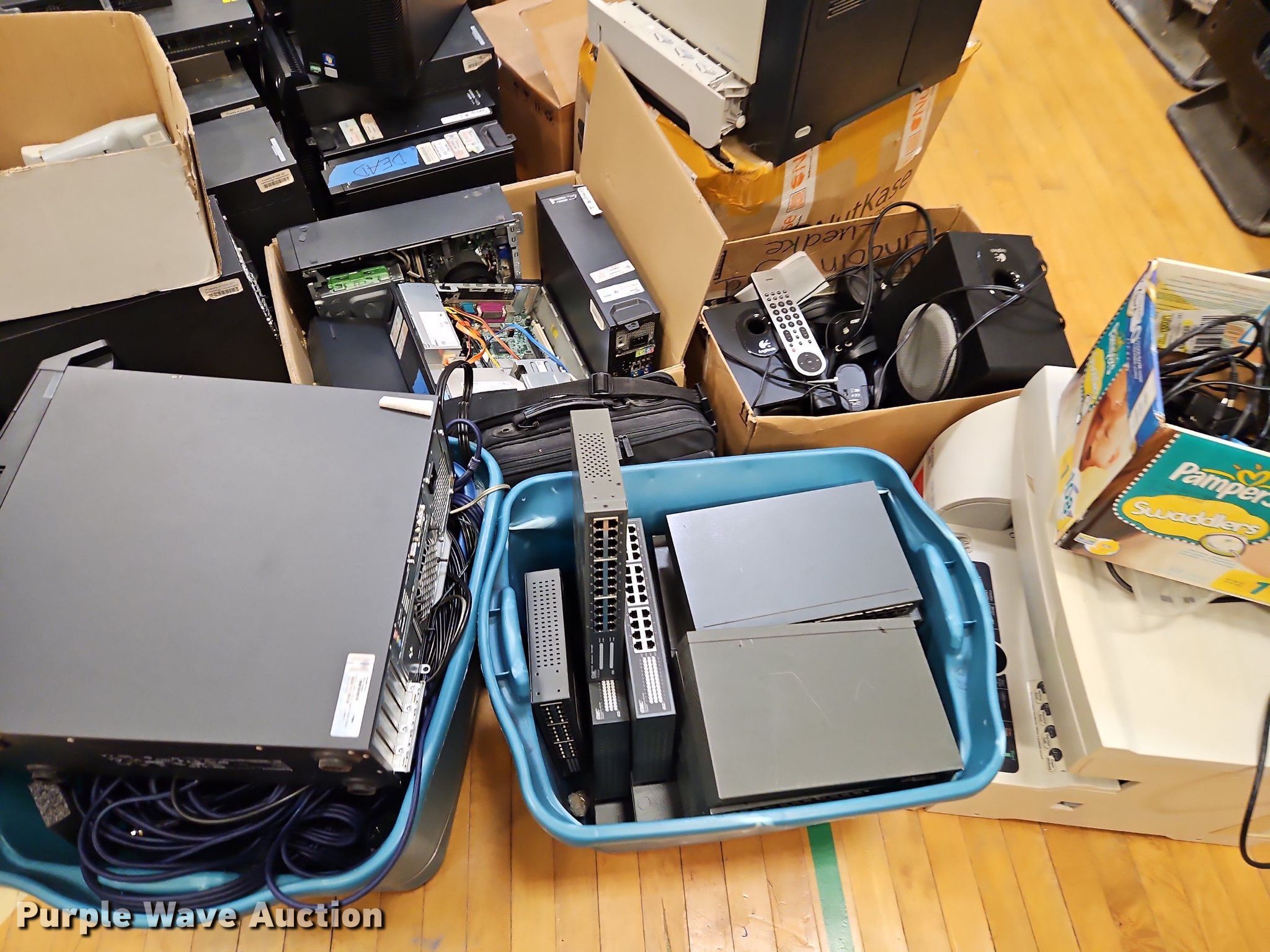 Purple Wave is selling a used Electronics in Kansas. This item is a Electronics with the following: Approx. 100 computer monitors, Approx. 100 computer towers, Approx. 20 printers, Approx. 20 projectors, (5) smart boards