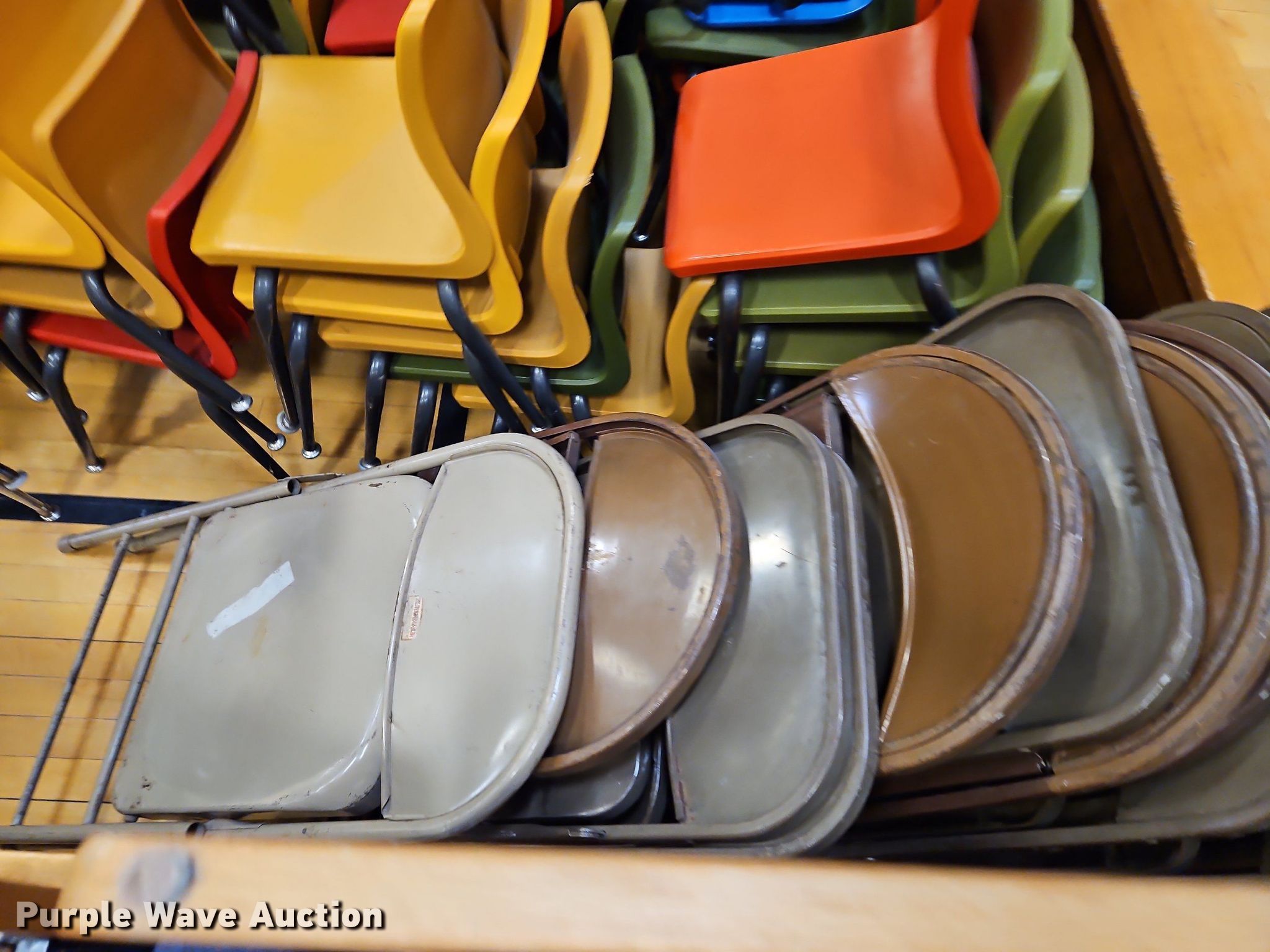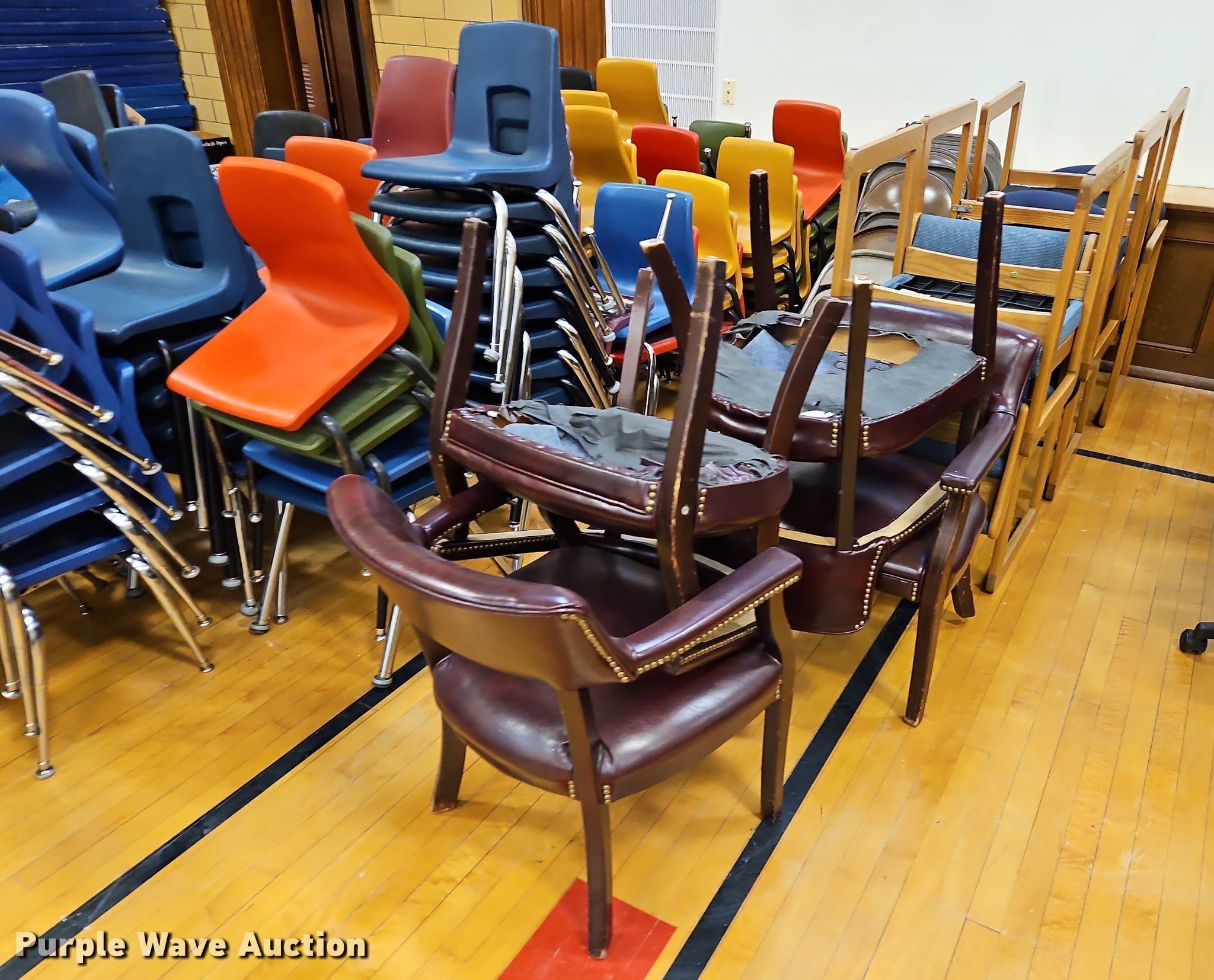 Purple Wave is selling a used Furniture in Kansas. This item is a Chairs with the following: Approx. 100 plastic chairs, (10) armchairs, (12) metal folding chairs