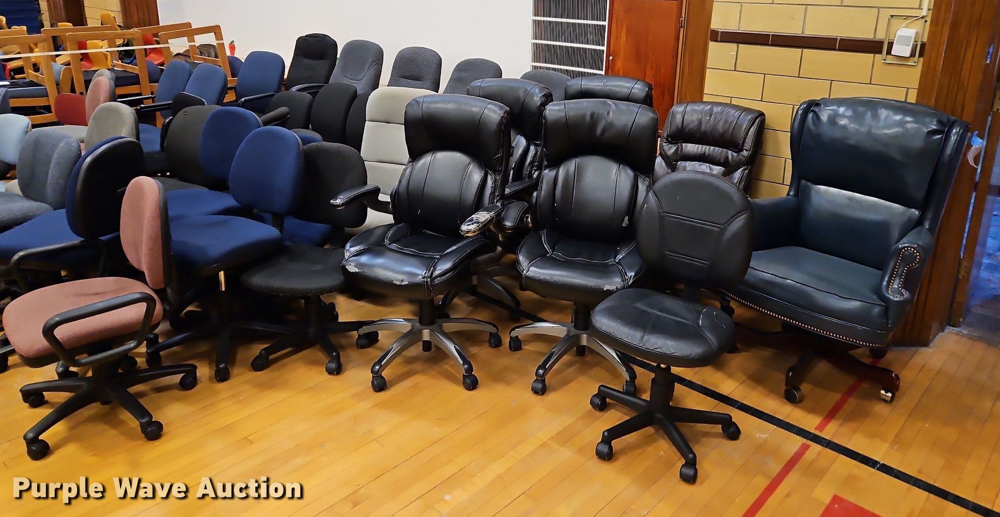 Purple Wave is selling a used Furniture in Kansas. This item is a Approximately 38 office chairs with the following: Approximately 38 office chairs. USD 257 Iola School District. Iola, KS 66749