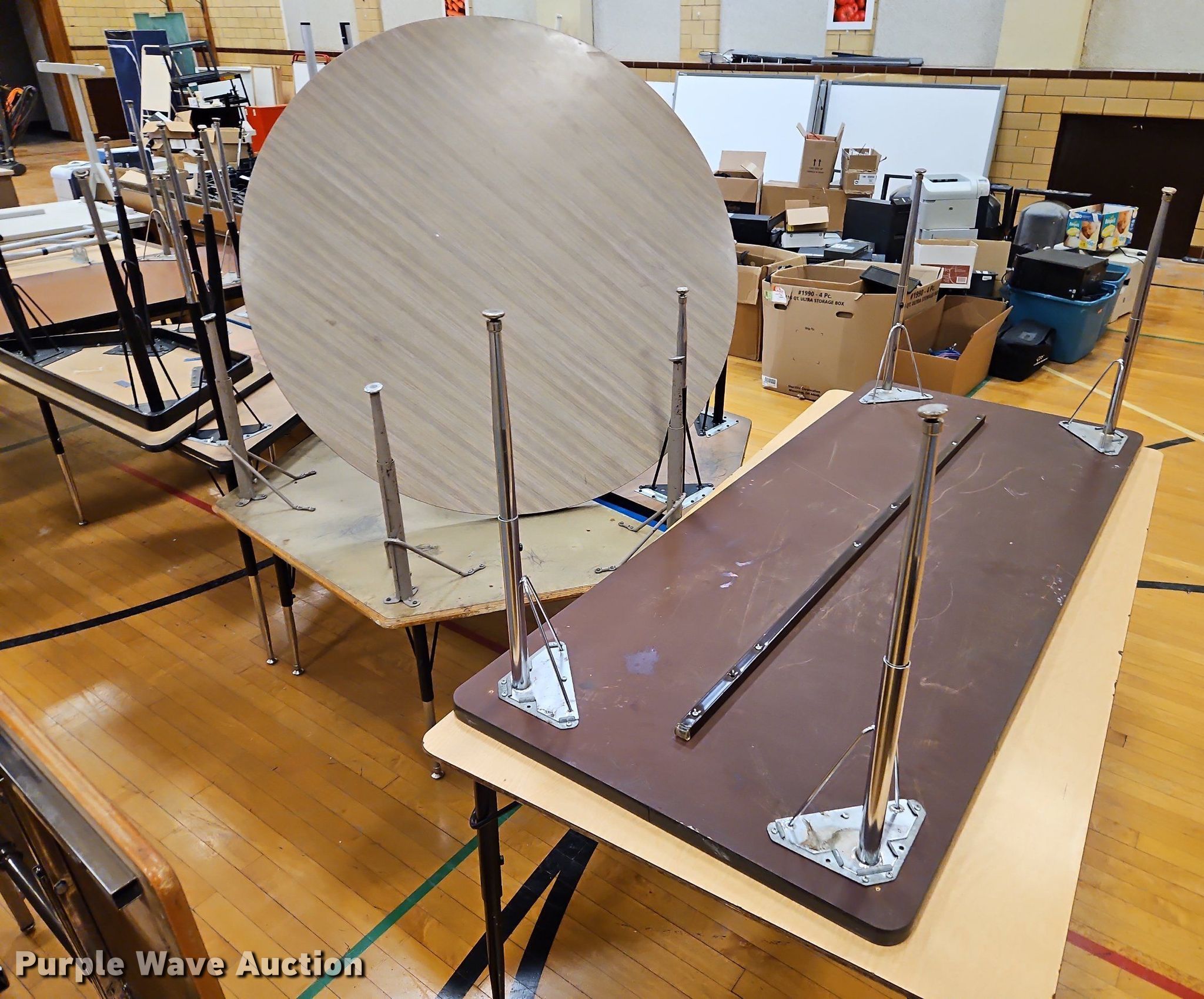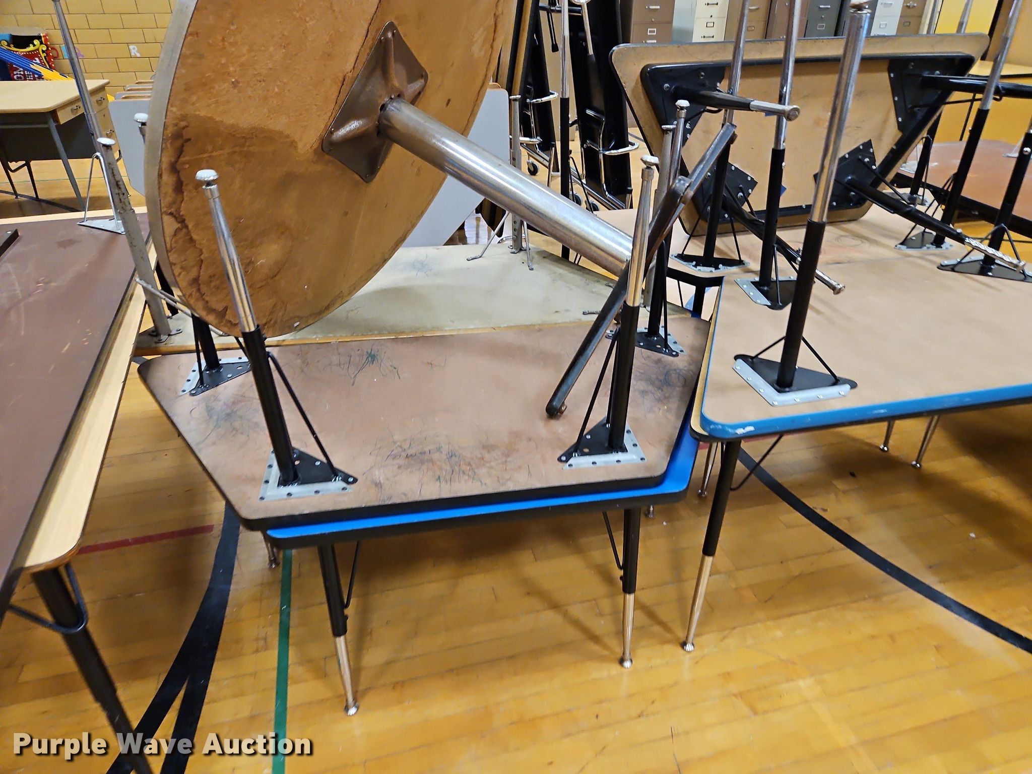 Purple Wave is selling a used Furniture in Kansas. This item is a Approximately 20 tables with the following: Approximately 20 tables. USD 257 Iola School District. Iola, KS 66749