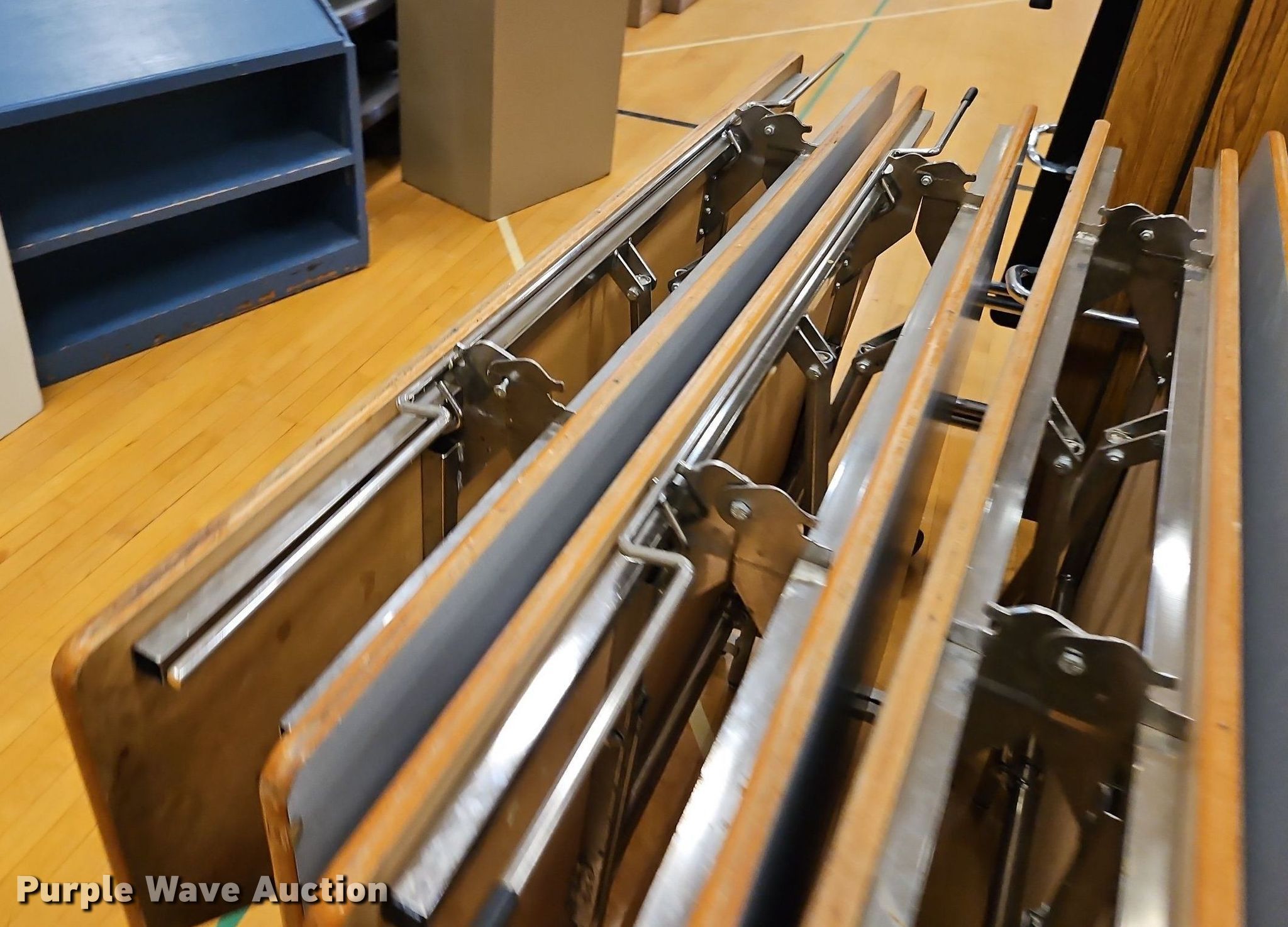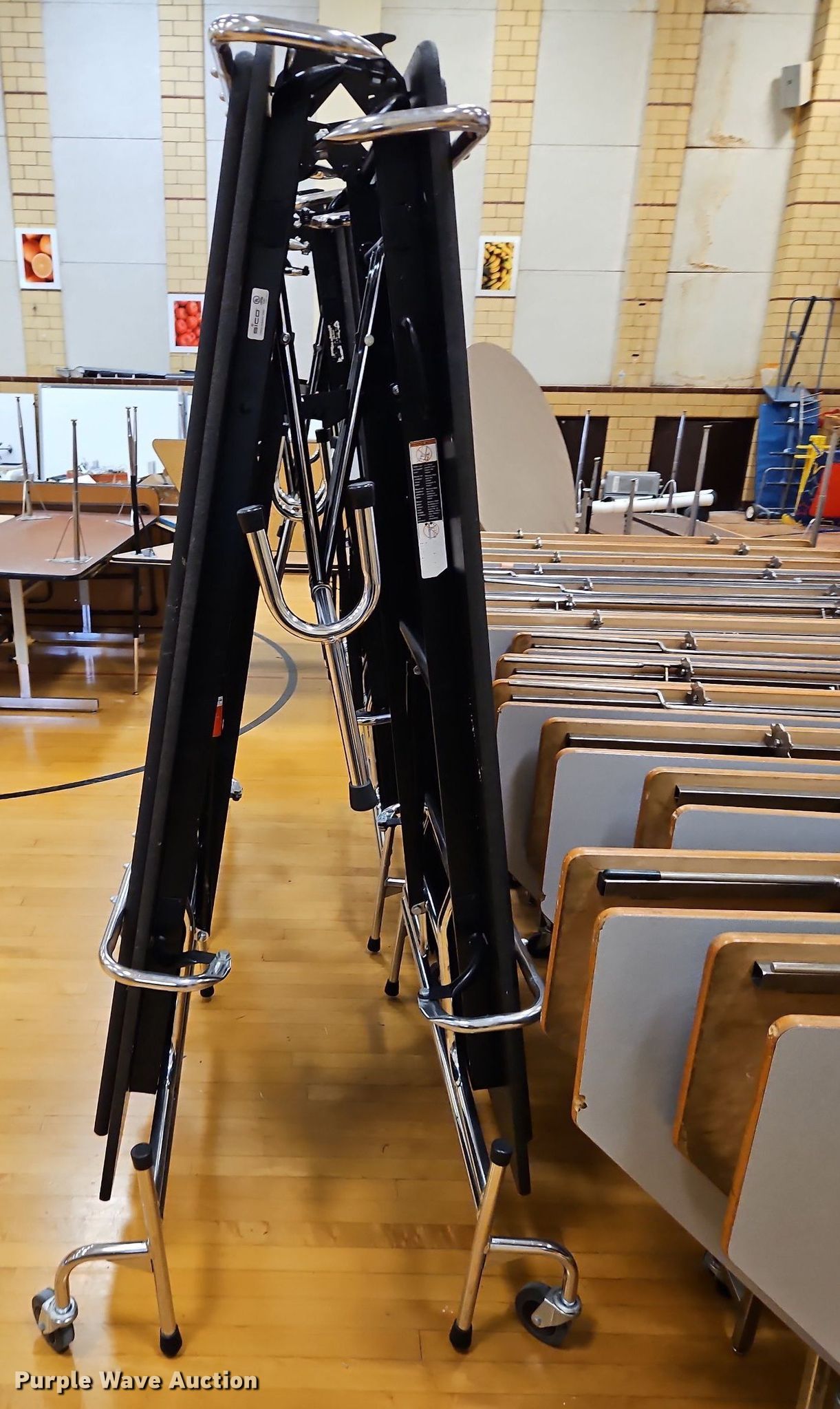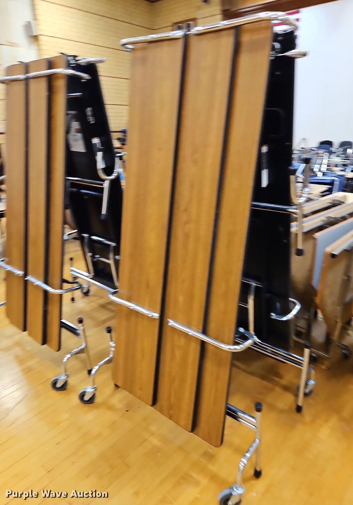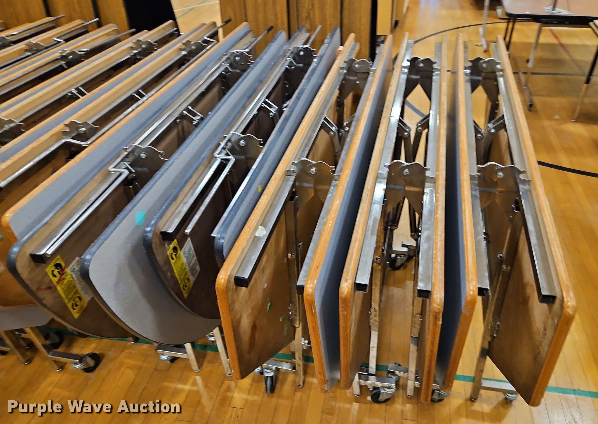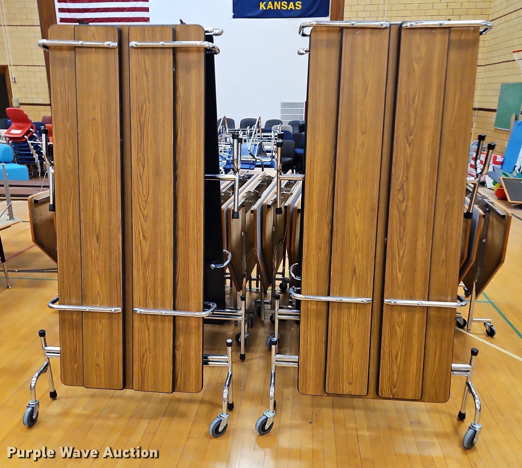 Purple Wave is selling a used Furniture in Kansas. This item is a Tables with the following: (14) octagon folding tables, (2) rectangle folding tables with benches