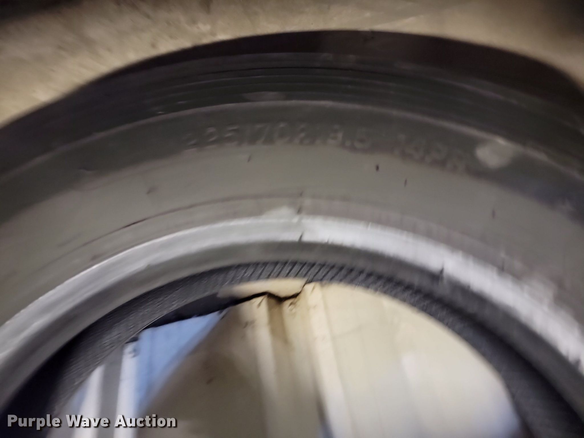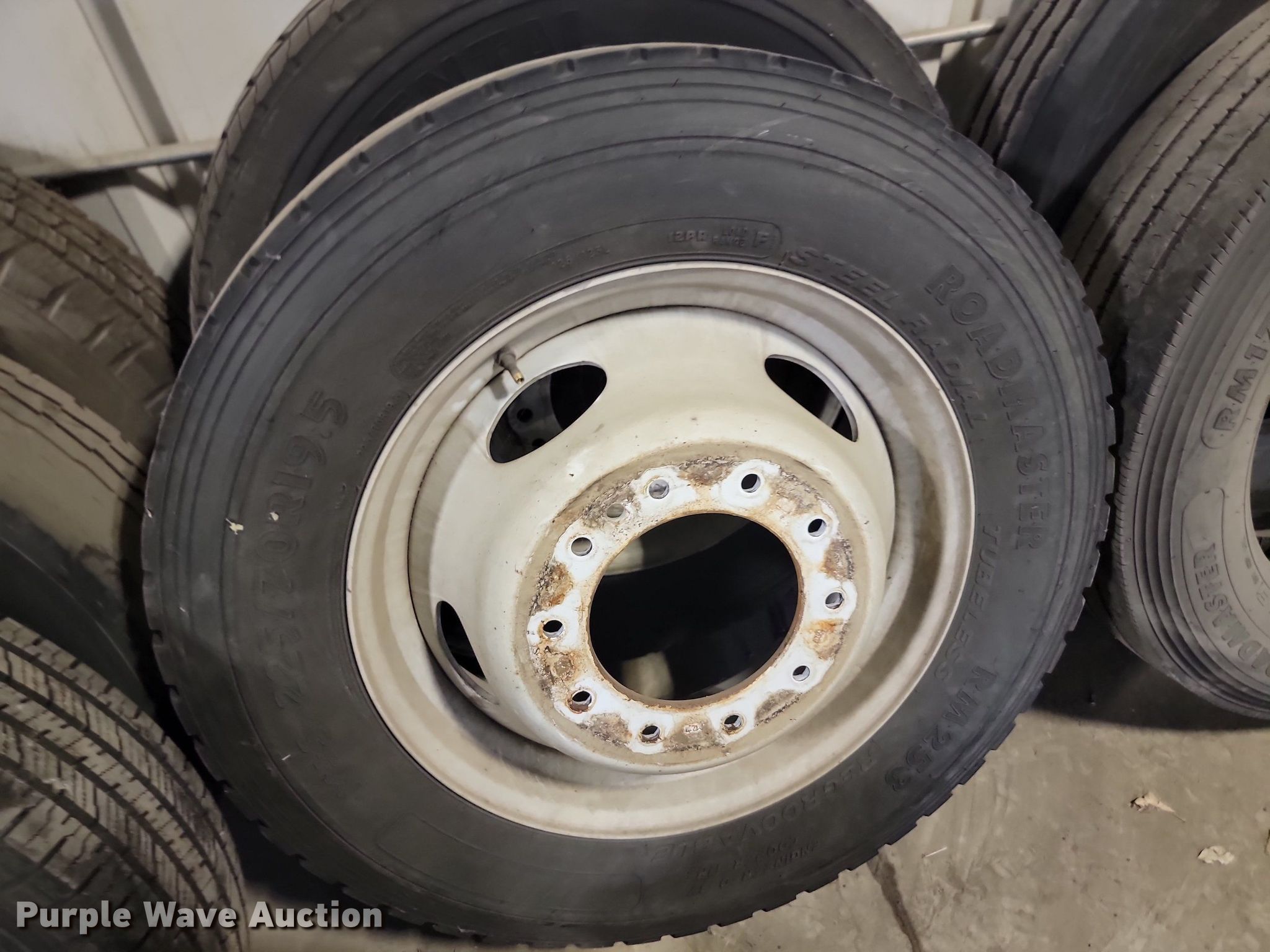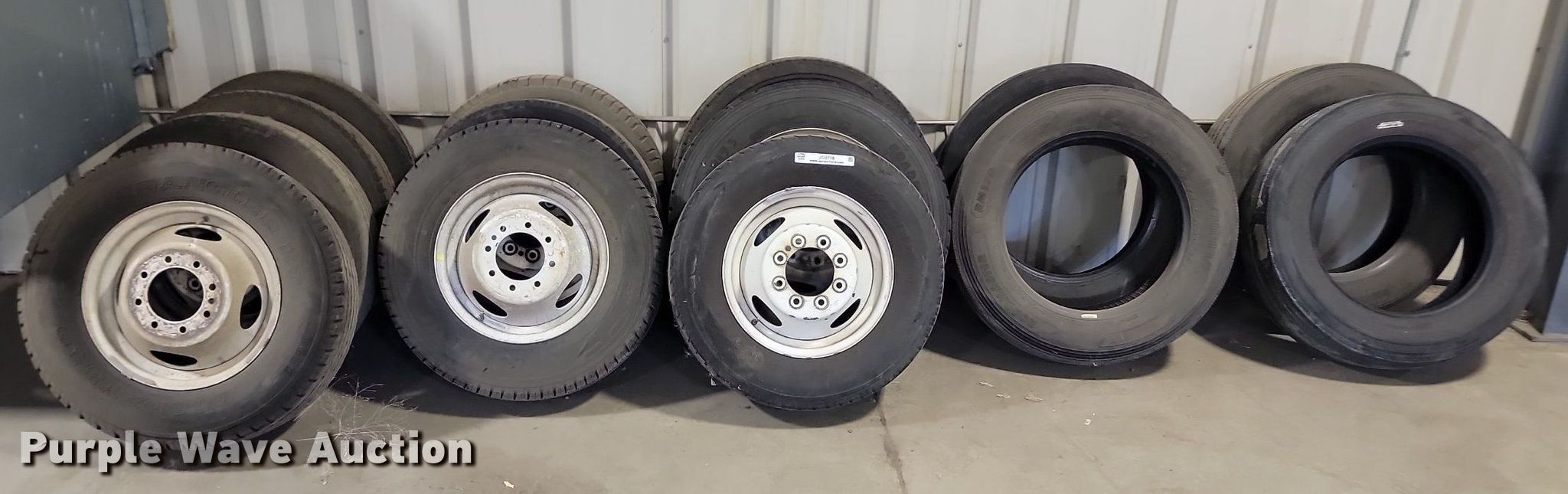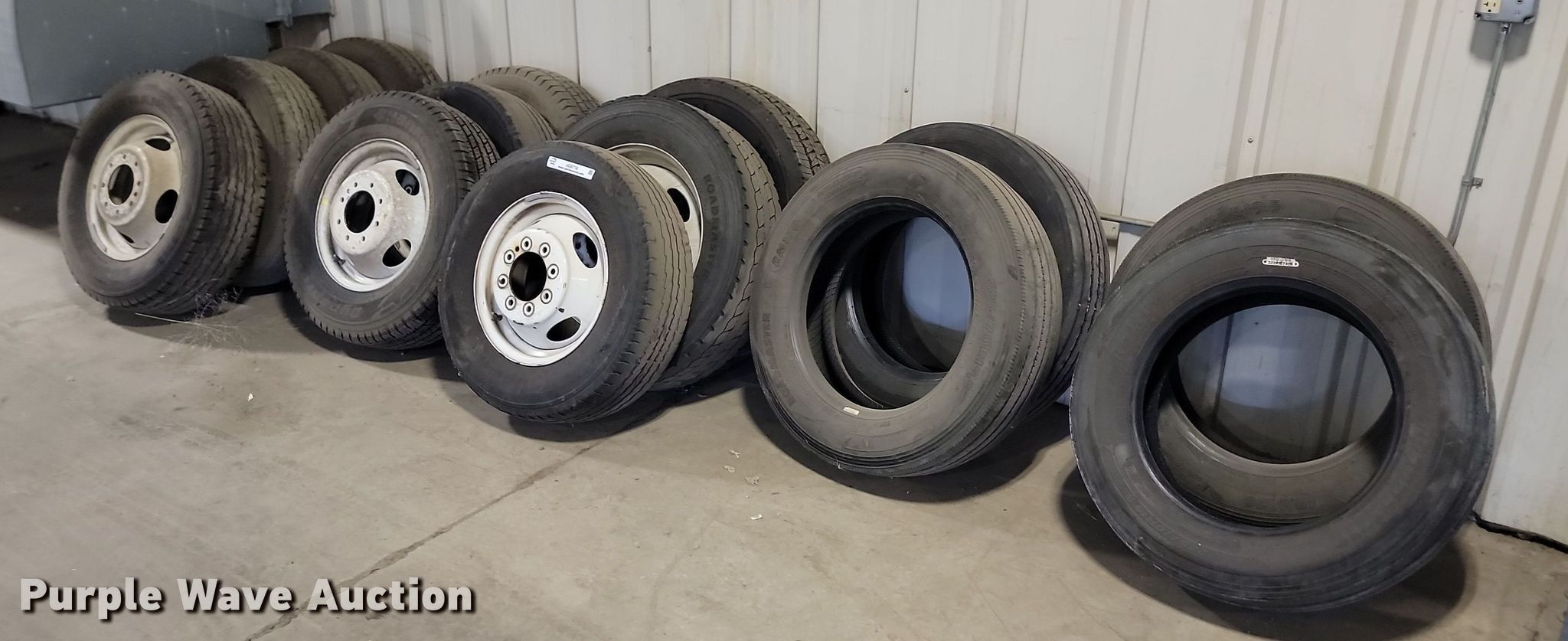 Purple Wave is selling a used Industrial Tires or Tracks in South Dakota. This item is a (15) tires and wheels with the following: (9) LT225/75R16 tires and wheels, (2) 225/70R19.5 tires and wheels, (4) 225/70R19.5 tires, (9) wheels