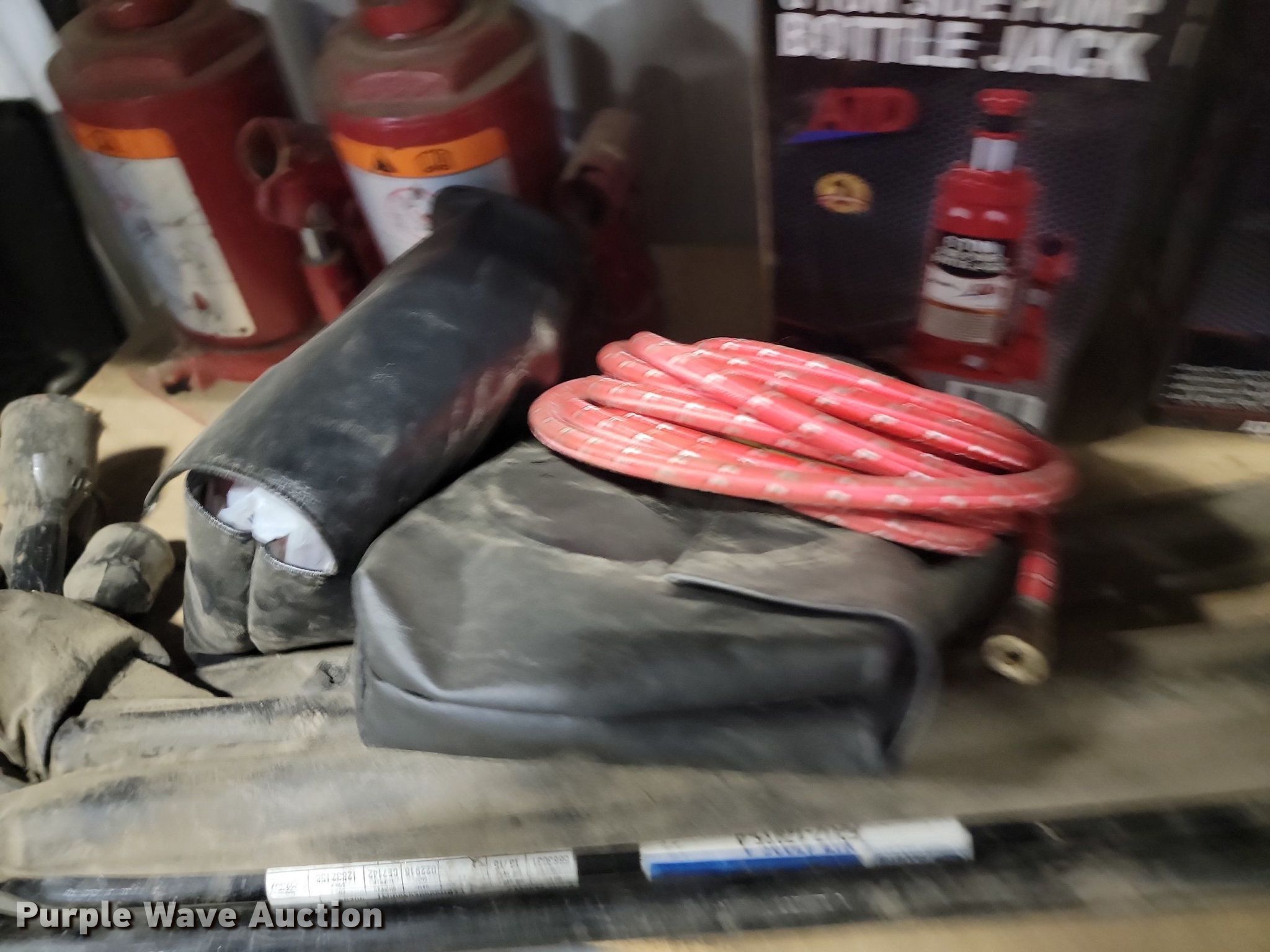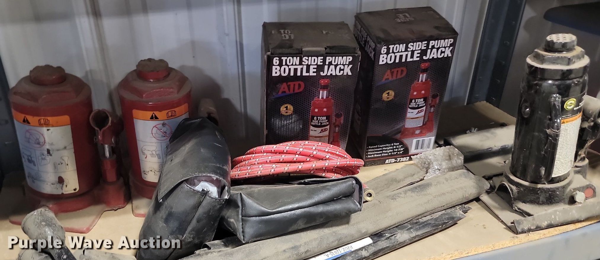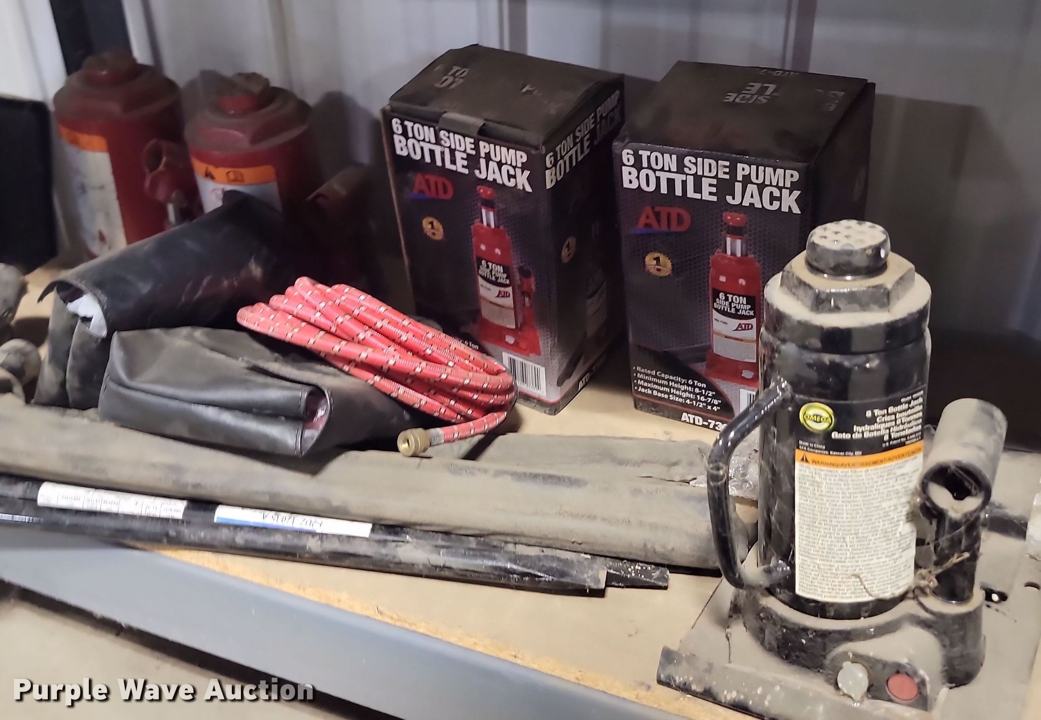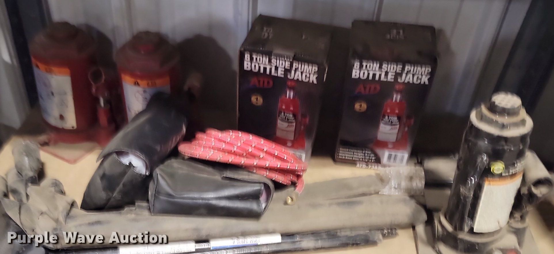 Purple Wave is selling a used Tools in South Dakota. This item is a Tools with the following: (5) bottle jacks, (4) tire irons, Air hose