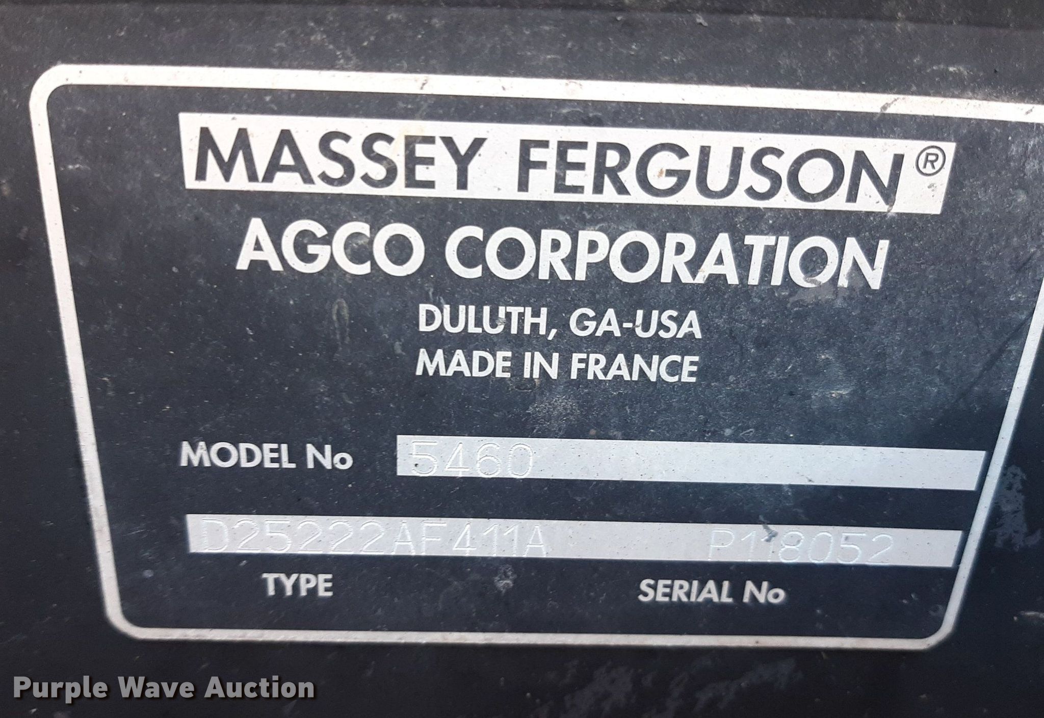 Purple Wave is selling a used Tractor in Kansas. This item is a 2005 Massey Ferguson 5460 MFWD tractor with the following: Hours: 3,942 on meter, Serial: P118052