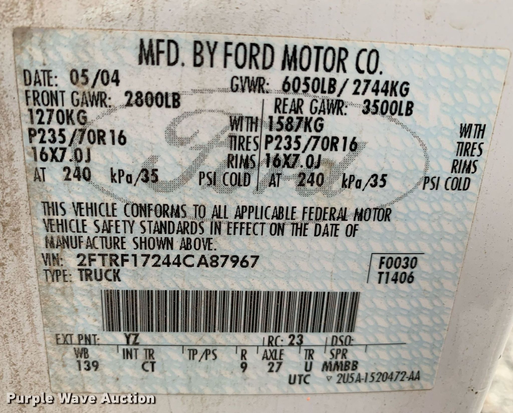 - VIN: 2FTRF17244CA87967