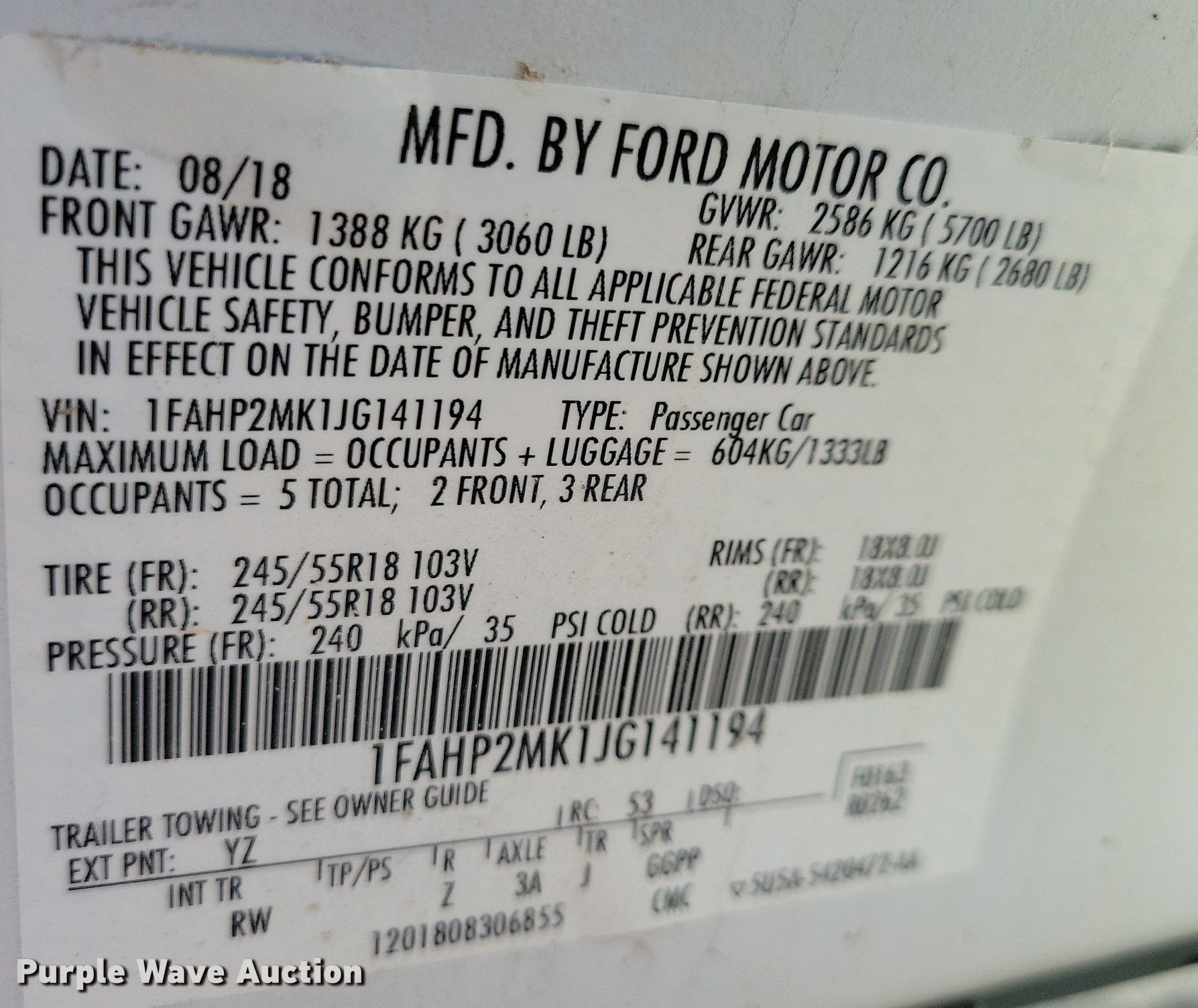2018 Ford Taurus Police Interceptor. Miles: 123,218 on odometer, VIN: 1FAHP2MK1JG141194. Engine Displacement: 3.7L V6 DOHC, Cylinders: 6, Fuel type: Gas. Transmission Automatic, All wheel drive. Interior AC, Heat, Seat: Power driver, Heated mirrors, Power windows, Power locks, Cruise control, Backup camera. Tires Size: 245/55R18. Notes Dead battery. Iowa title. Seller is a government entity who will be assigning and distributing the title. Please contact the seller for distribution questions. Marion County Sheriff's Office. 211 North Godfrey Lane. Knoxville, IA 50138