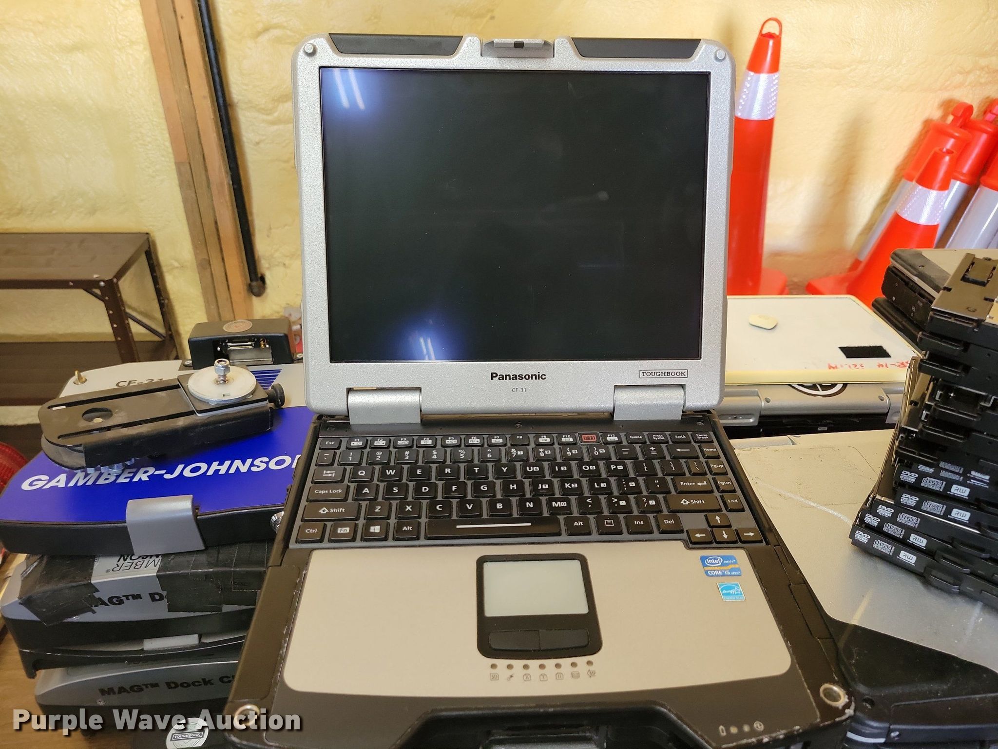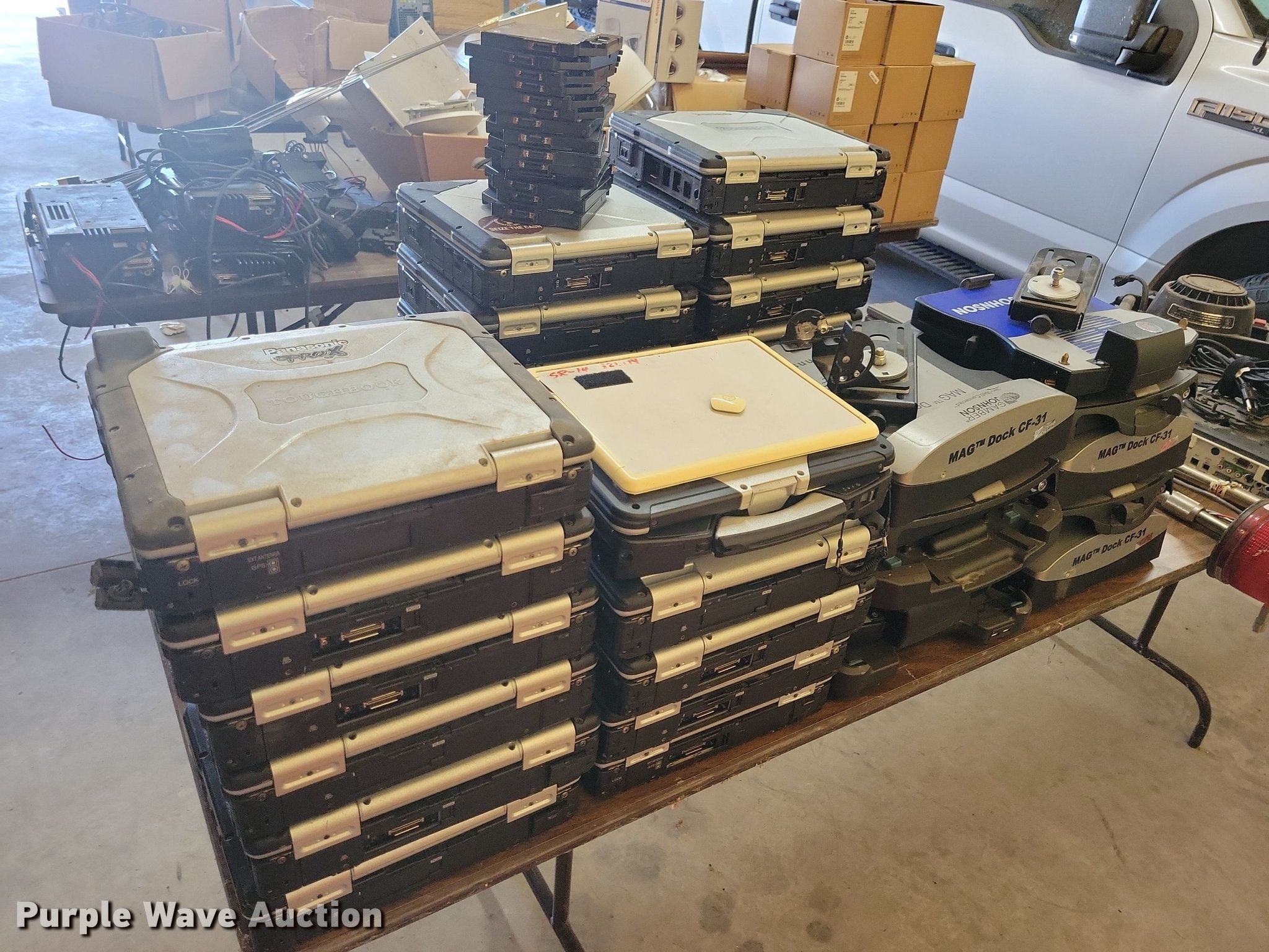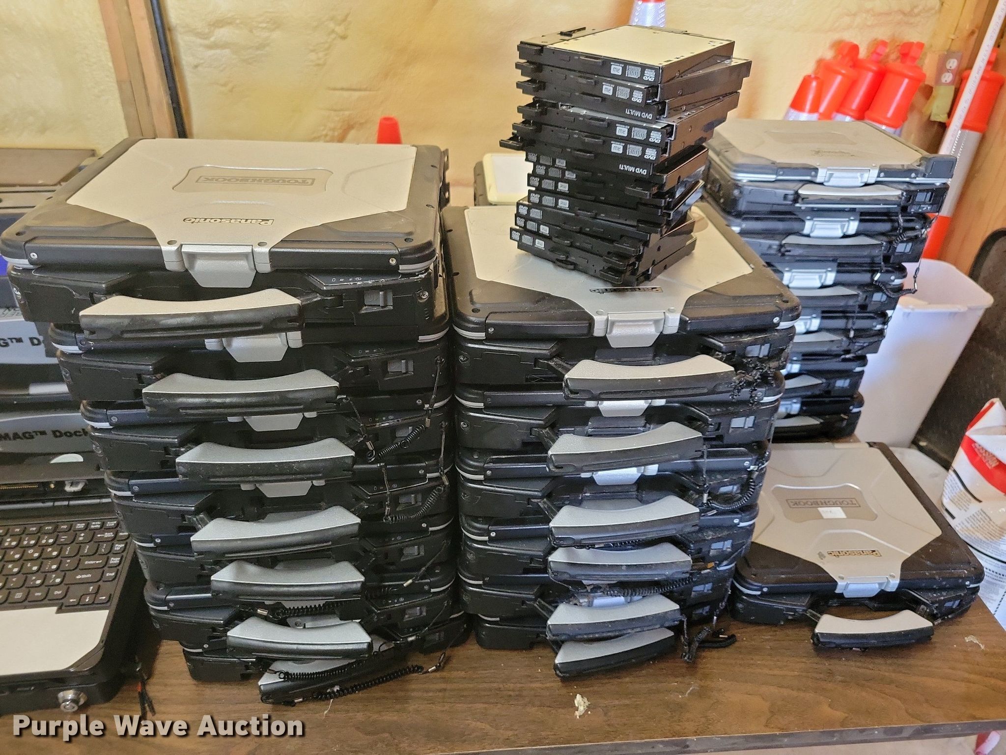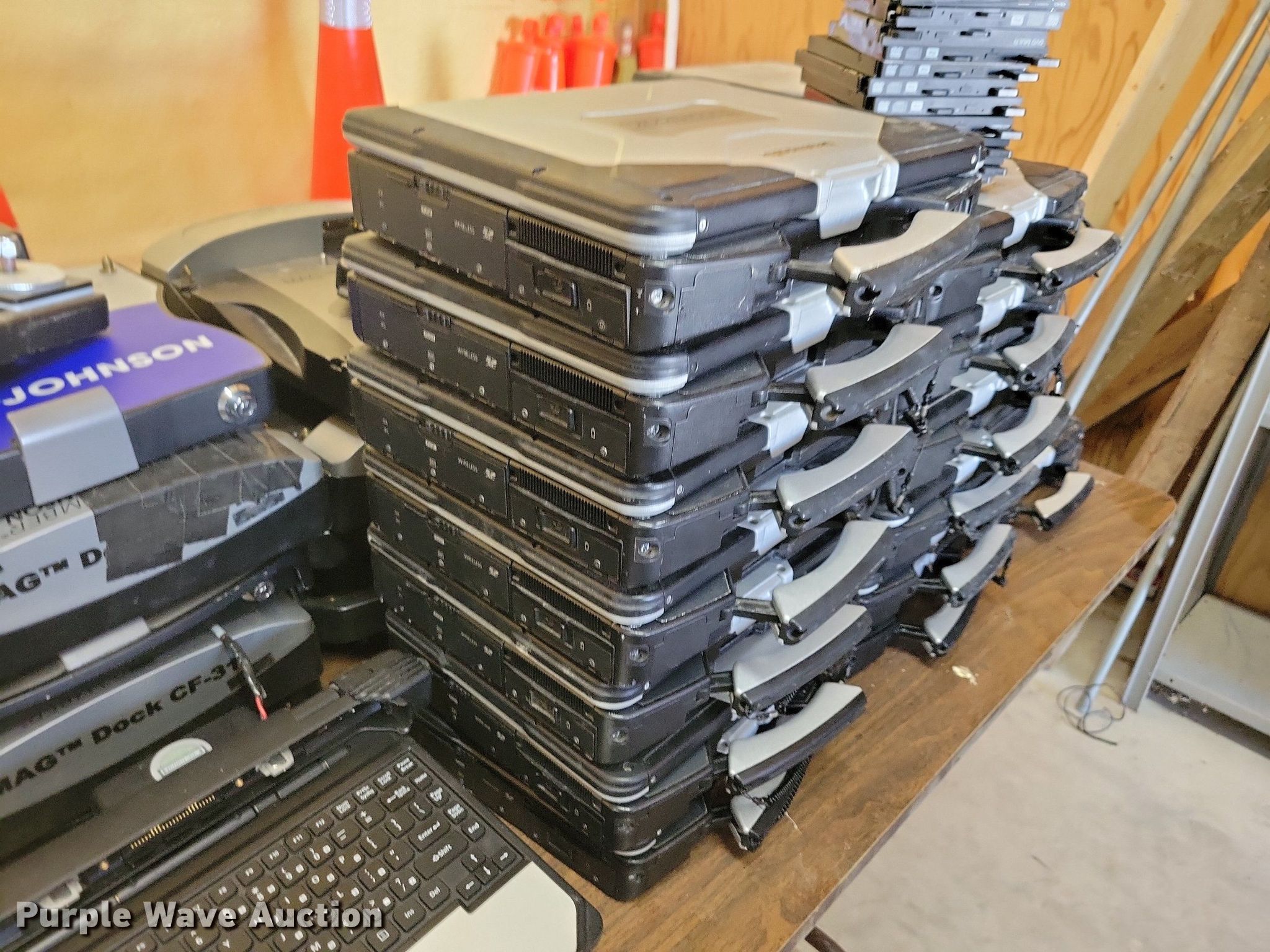 Purple Wave is selling a used Electronics in Iowa. This item is a Electronics with the following: Dell monitors, Keyboard, Projector, Projector screen, Buffer, (2) lights, (8) MAG docks cf-31, (24) Toughbooks