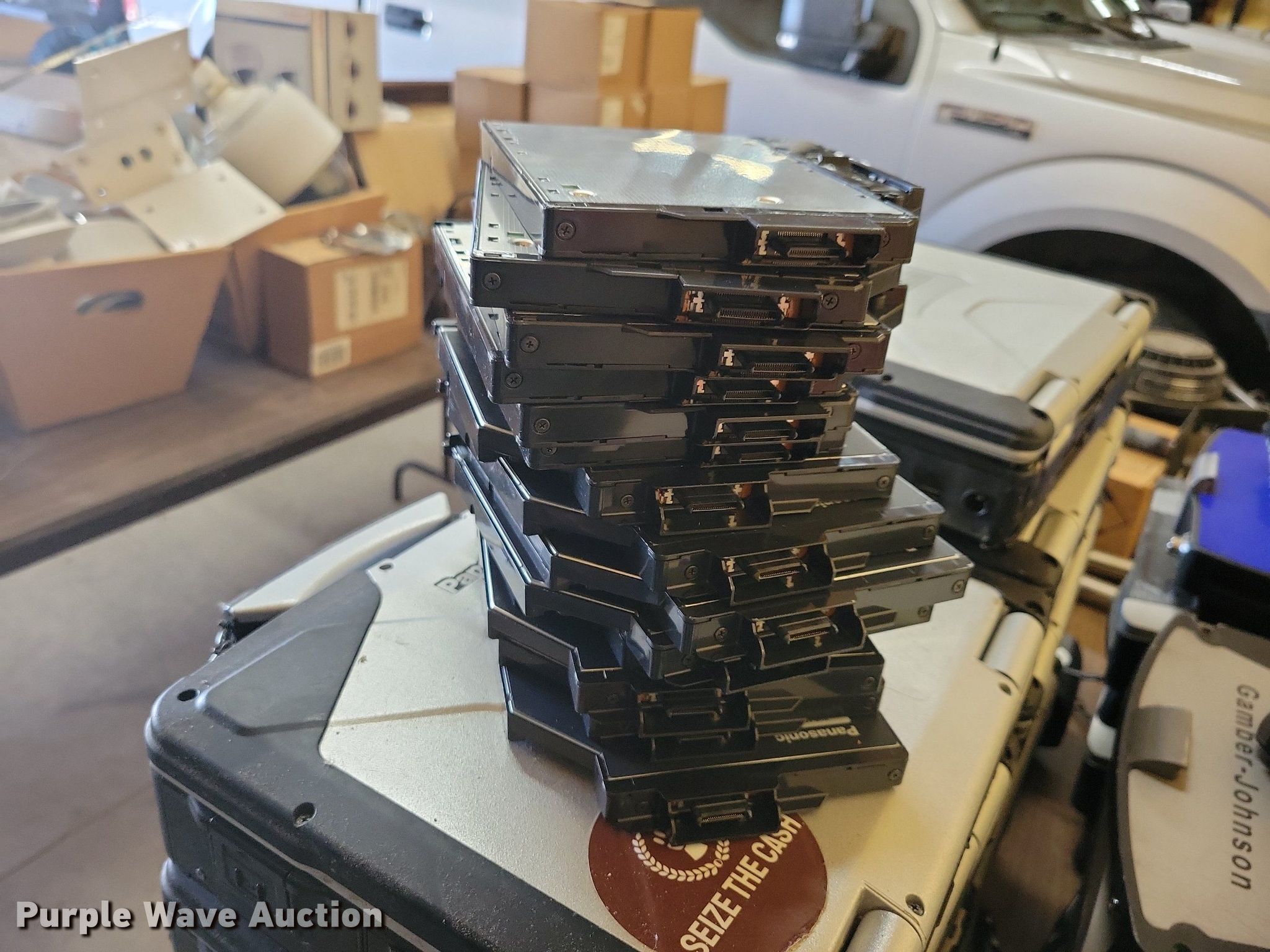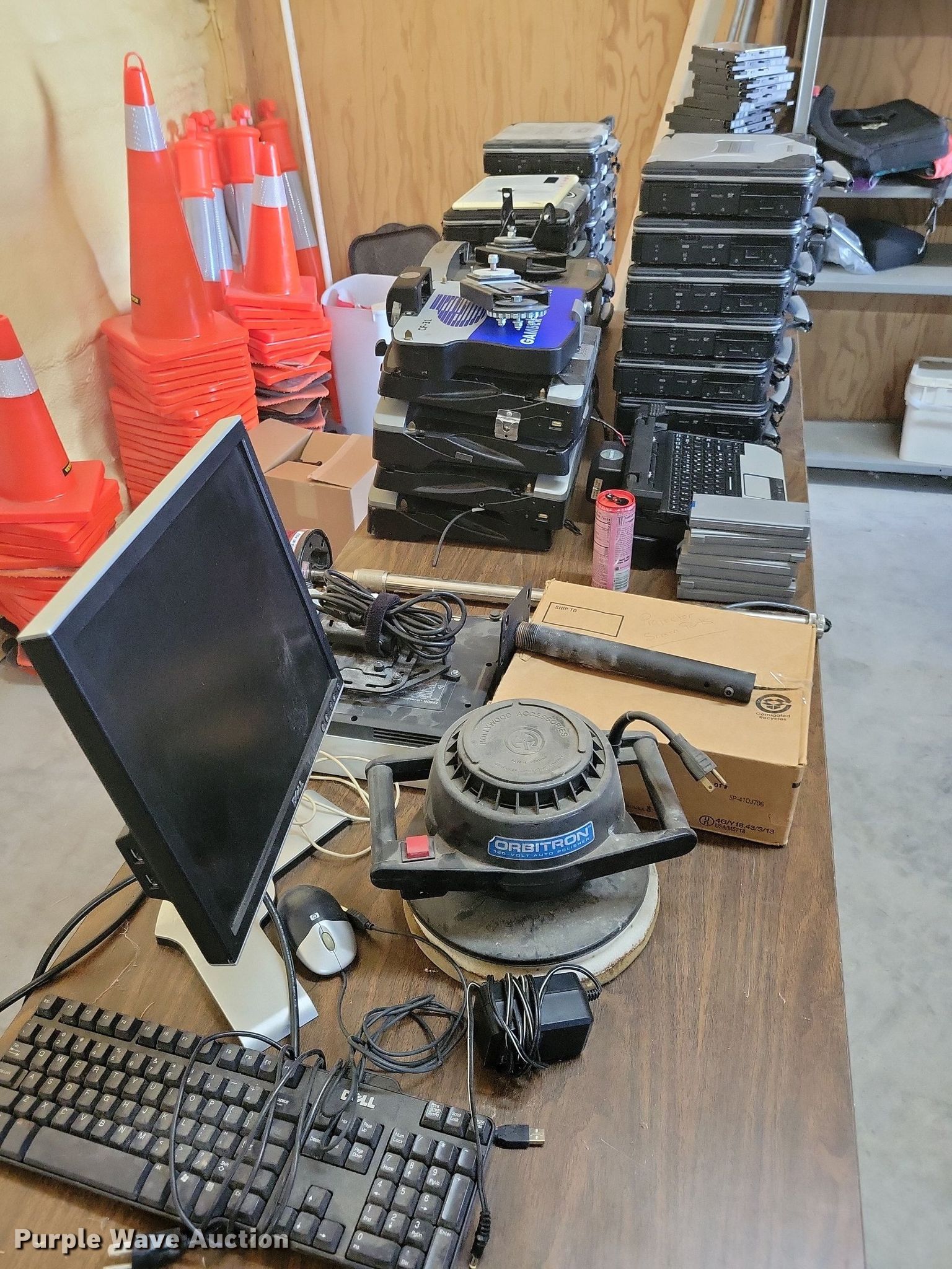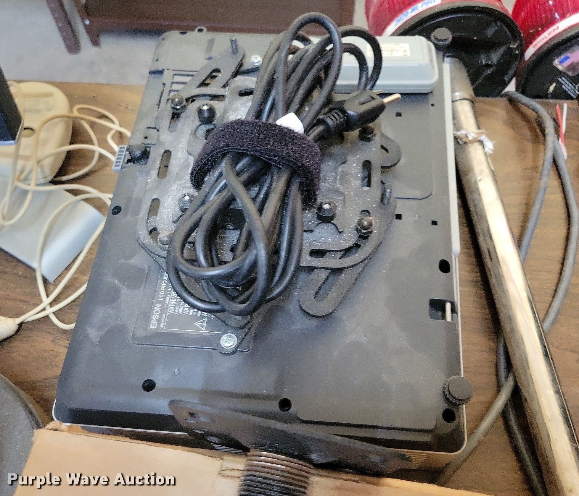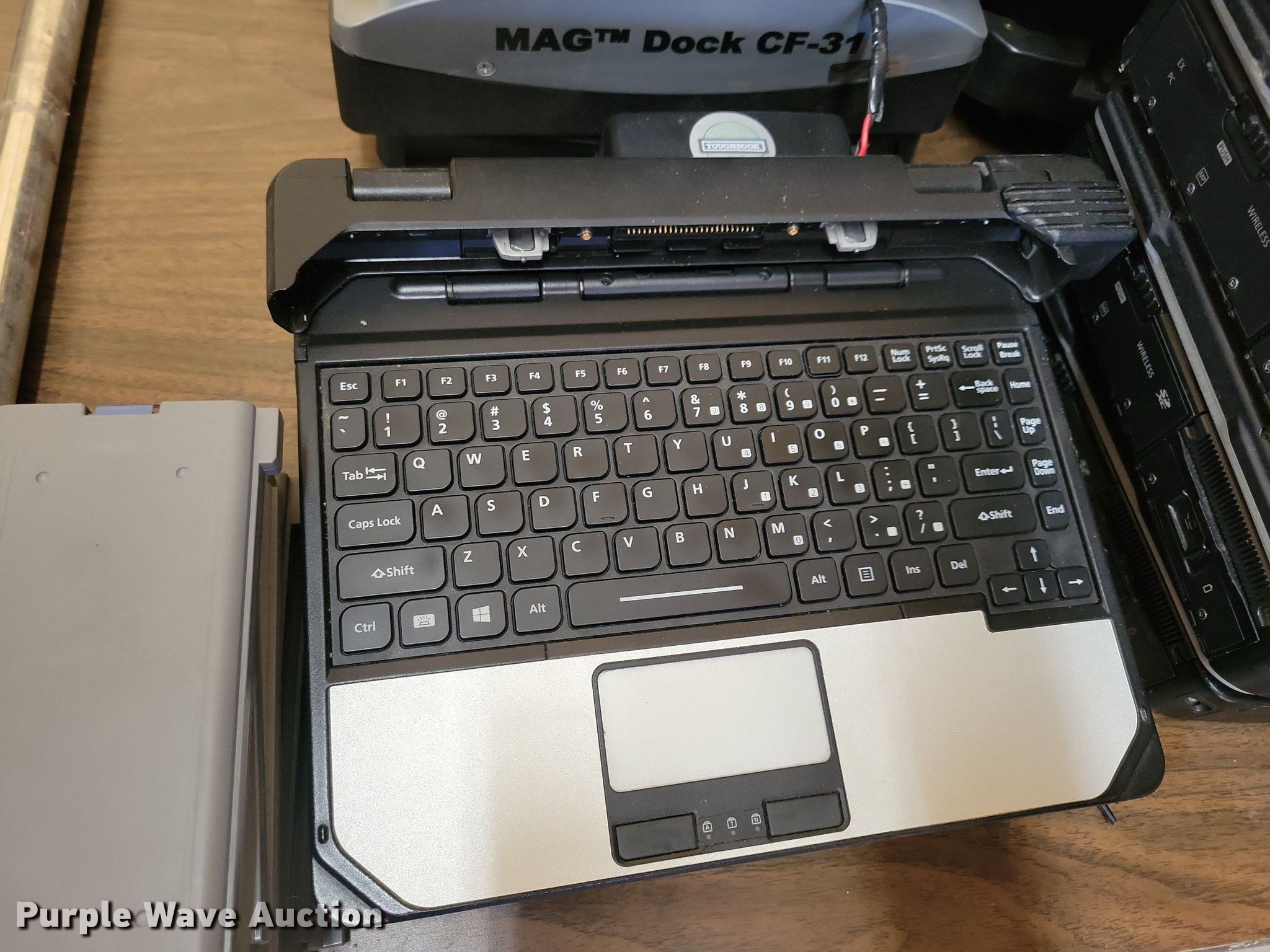 Purple Wave is selling a used Electronics in Iowa. This item is a Electronics with the following: Dell monitors, Keyboard, Projector, Projector screen, Buffer, (2) lights, (8) MAG docks cf-31, (24) Toughbooks