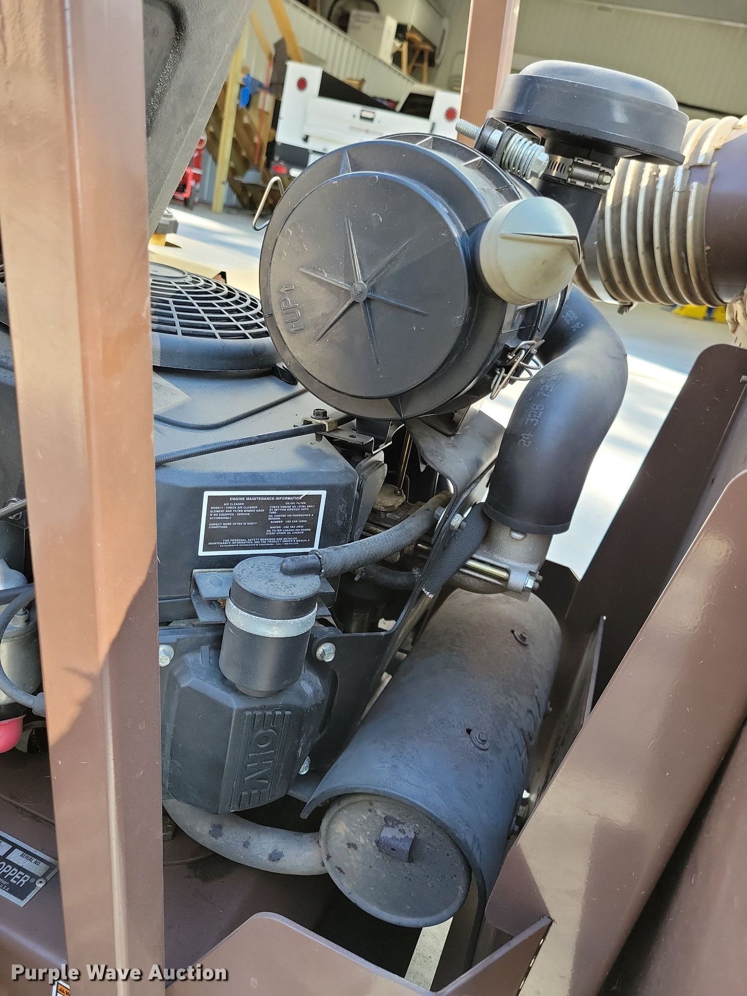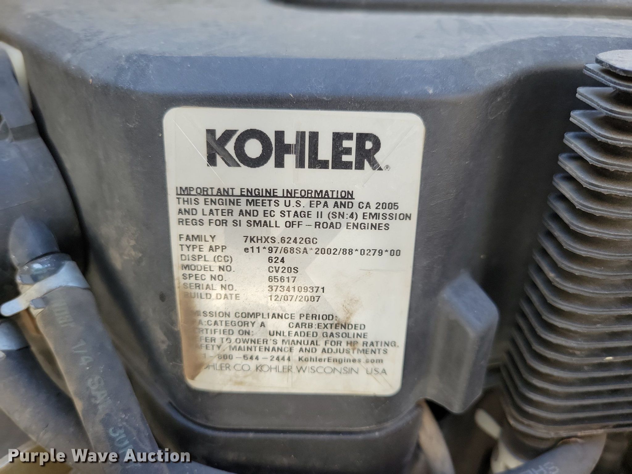 Grasshopper 120K ZTR lawn mower. Hours: 227 on meter, Cutting width: 48", Serial: 6064918. Engine Kohler CV20S, Serial: 3734109371, Displacement: 624 cc, Cylinders: 2, Fuel type: Gas. Transmission Hydrostatic. Features Grass bagger. Tires Front: 11x4-5, Rear: 18x8.5-8NHS. Marion County Maintenance. 3014 East Main Street. Knoxville, IA 50138