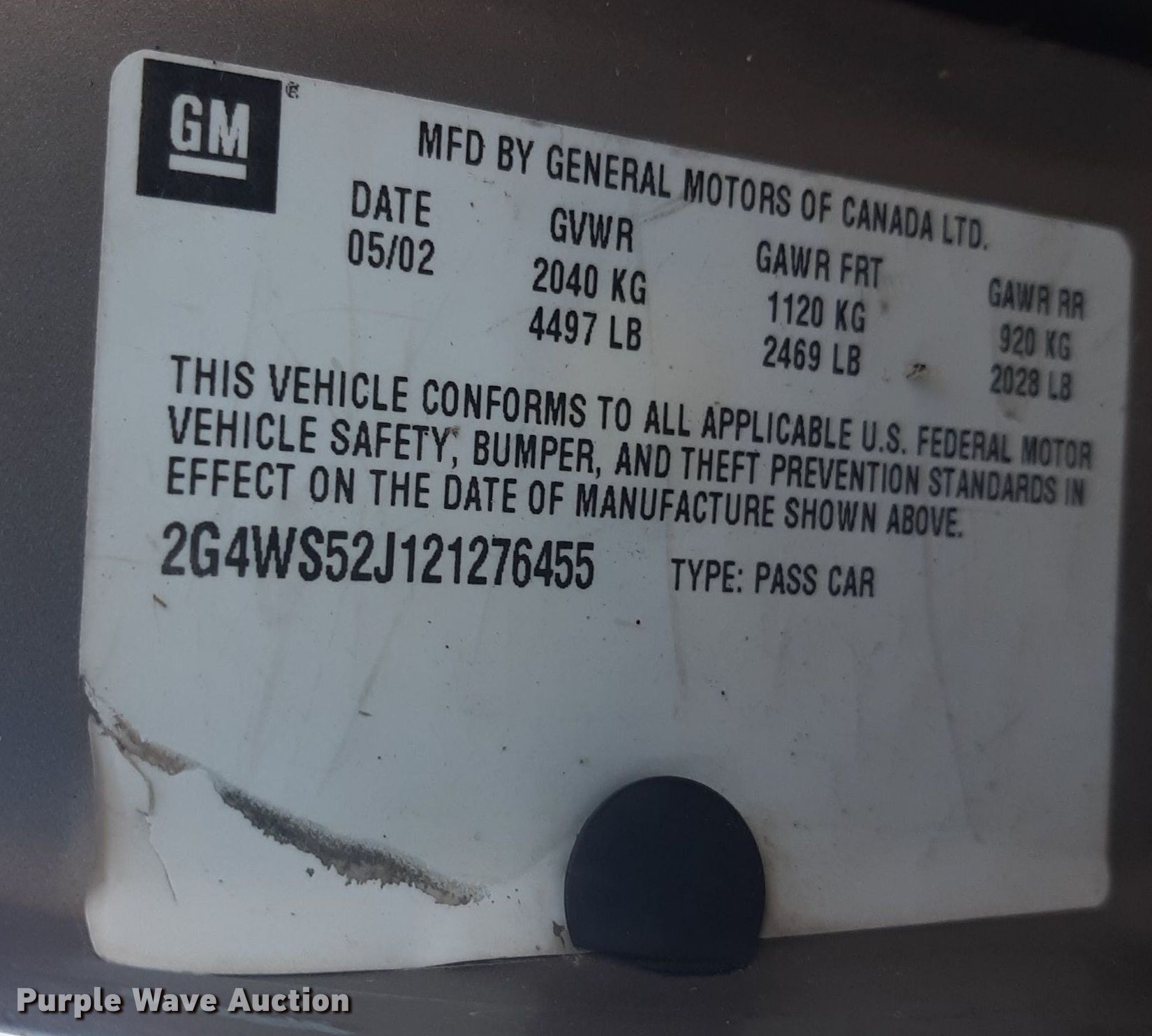 Purple Wave is selling a used Passenger Vehicle in Oklahoma. This item is a 2002 Buick Century with the following: Miles: Unknown, VIN: 2G4WS52J121276455