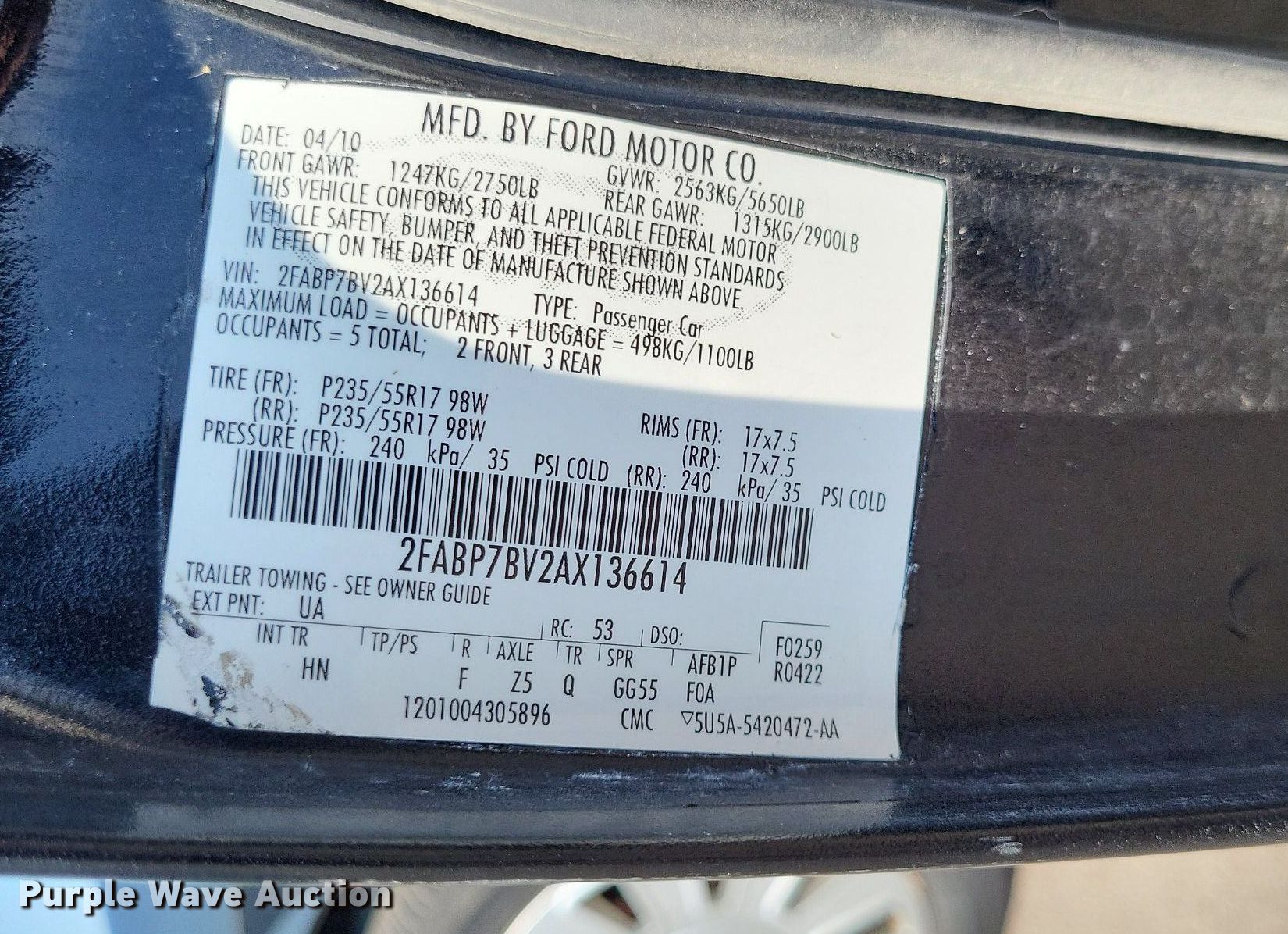 - VIN: 2FABP7BV2AX136614