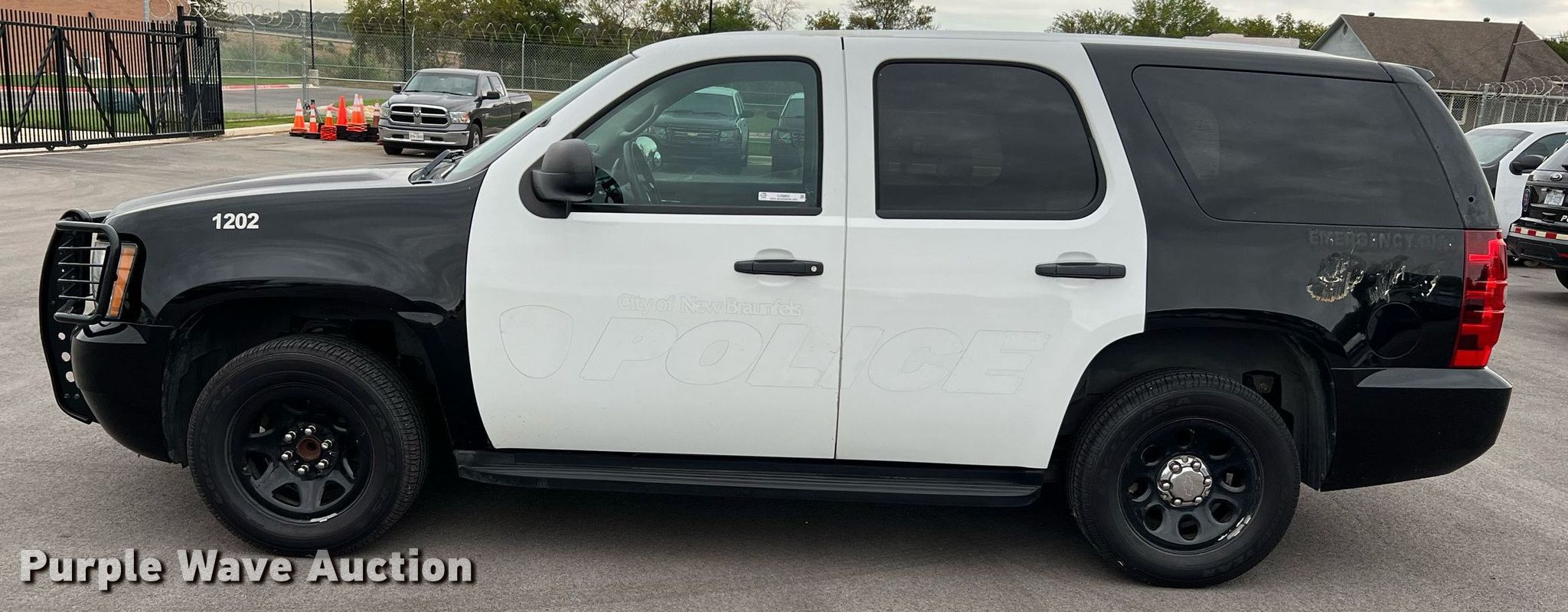 2012 Chevrolet Tahoe Police SUV. Miles: 96,768 on odometer, VIN: 1GNLC2E09CR280646, Unit #: 1302. Engine Displacement: 5.3L V8 OHV, Cylinders: 8, Fuel type: Gas. Transmission Automatic. Interior AC, Heat, Seat: Power driver, Power passenger, Power windows, Power locks, Cruise control. Tires Size: 265/60R17. Notes Dash warning indicator: Airbag, Dead battery, No center console. Texas title. Title distribution may be delayed up to 14 days from verification of funds. City of New Braunfels. 155 South Water Lane. New Braunfels, TX 78130