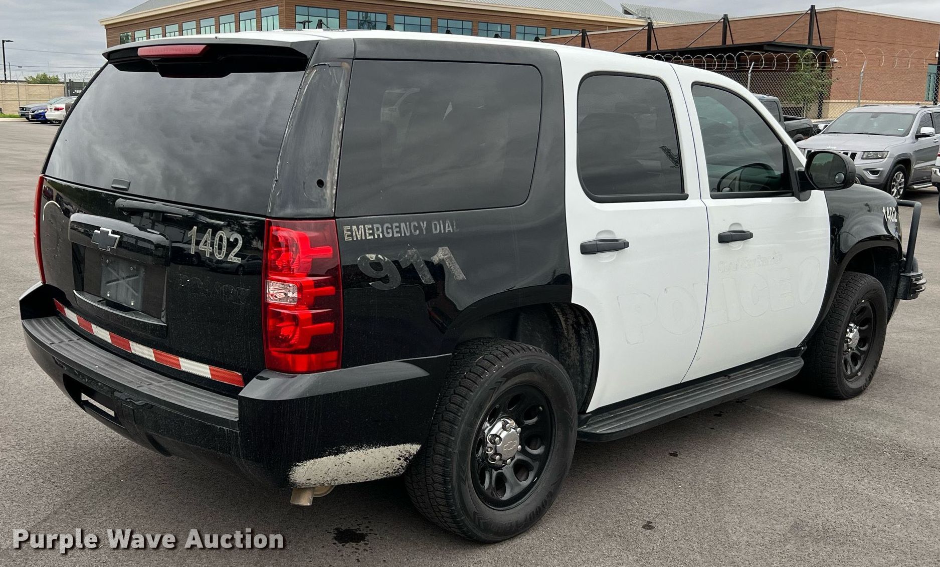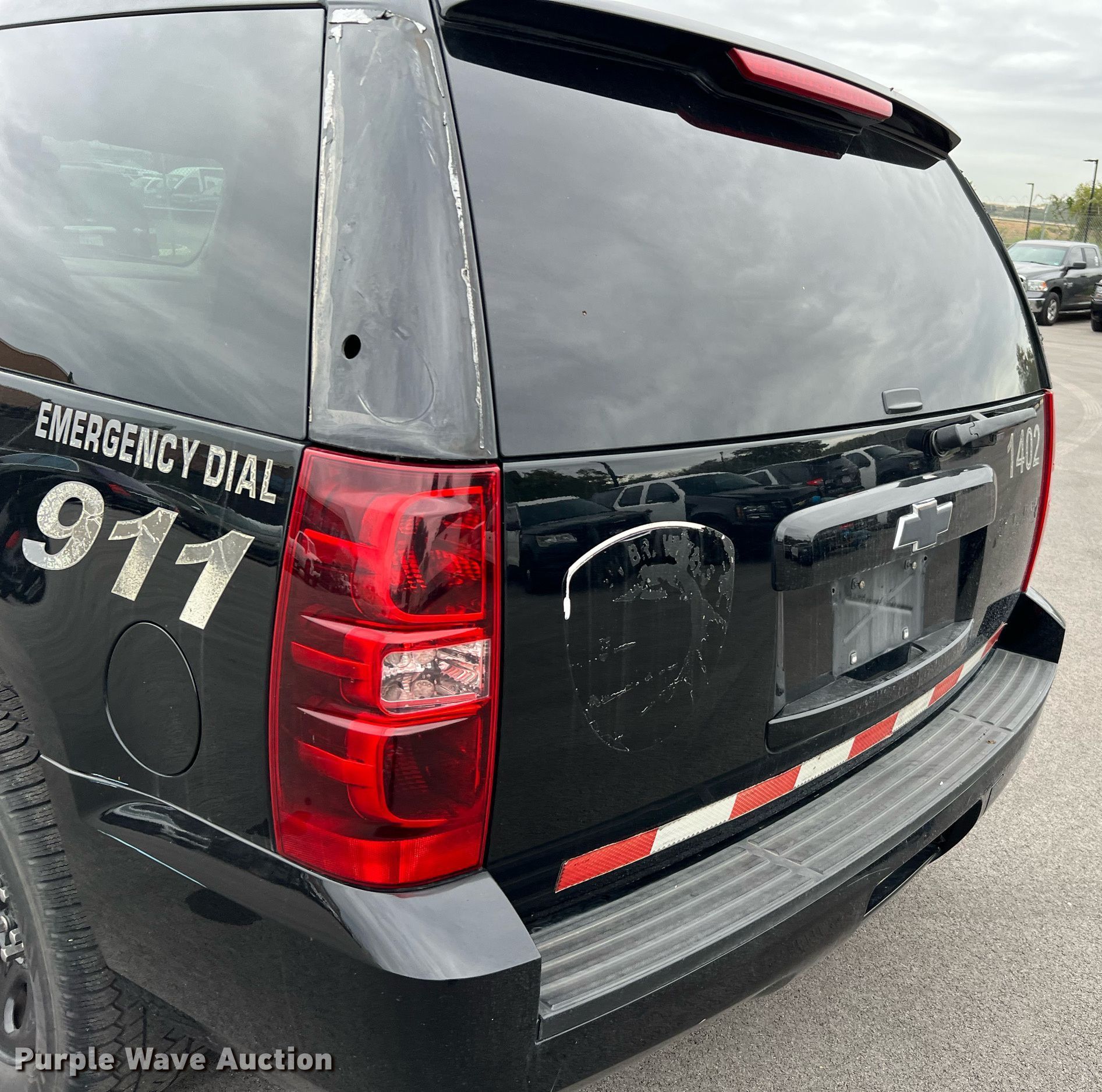 Purple Wave is selling a used Passenger Vehicle in Texas. This item is a 2014 Chevrolet Tahoe Police SUV with the following: Miles: 98,456 on odometer, VIN: 1GNLC2E06ER186291, Unit #: 1402